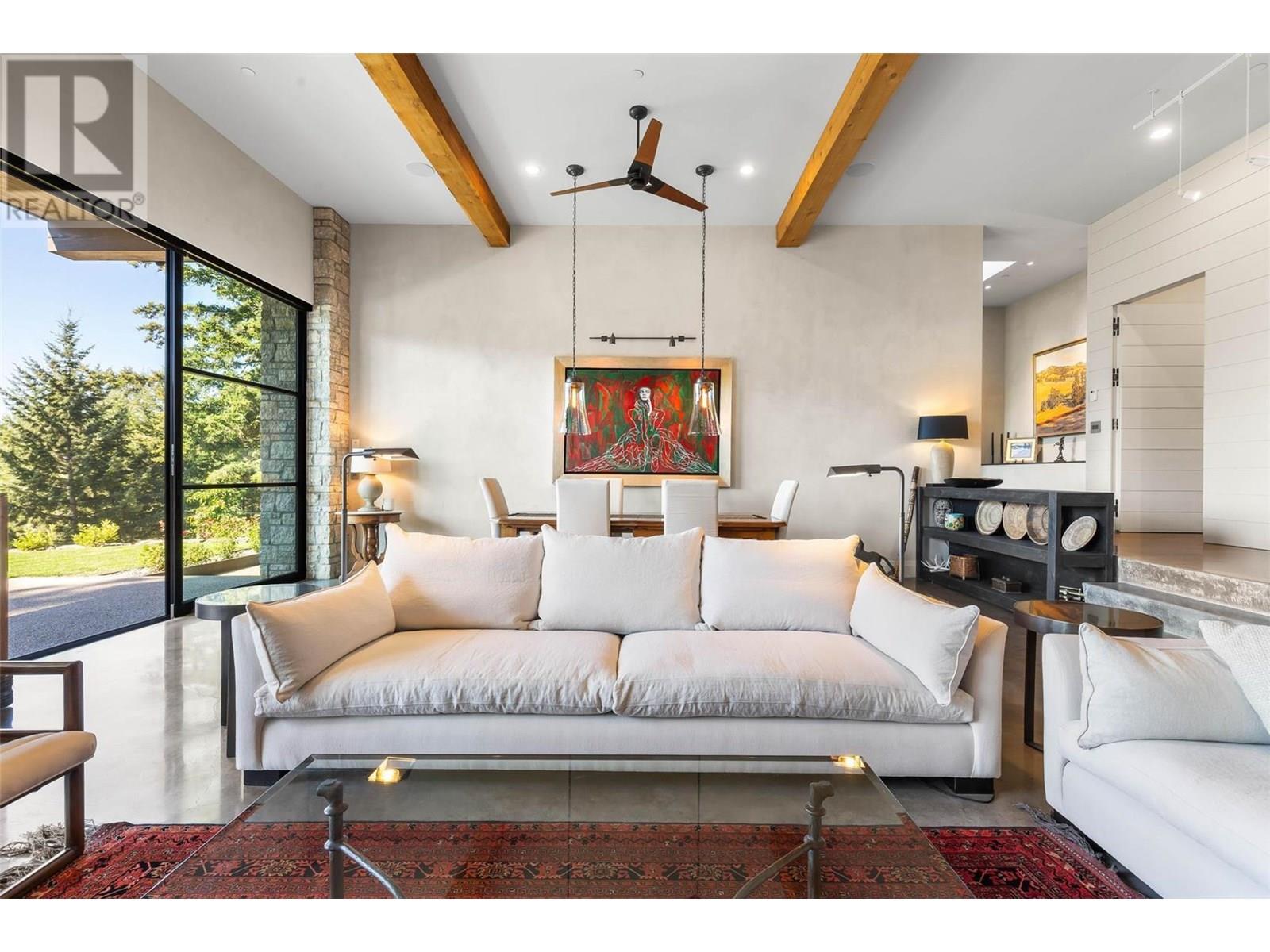 144.92 acre estate in Vernon city limits, with only +/- 9.6 acres within the ALR. 5200 plus square foot modern residence, completed in 2016, with five bedrooms and three bathrooms, a stunning pool, and top-of-the-line cosmetics and mechanical systems. Current AGRL zoning permits 12 hectare (30 acre) lots, creating immediate subdivision potential and long-term development potential. The land has significant pasture/grazing land (+/- 21 acres) which has been used for an organic lamb farm, and cattle. There is a small pond, an aspen grove, and significant cross-fencing (electric). Water is via a four gallon per minute well with a cistern system. The home is accessed via a one kilometer private paved driveway. Finishings include polished heated concrete floors, cedar beams, wood burning fireplace plus stove, and grand windows and sliding doors that access the saltwater pool. Outdoor space also has a firepit and hot tub, looking south towards the expansive lake and valley views that span to see the Bennett Bridge in Kelowna. High-efficiency GARN mechanical uses wood, thermal solar, and an electric heat pump. The property is just a few minutes drive to Predator Ridge Golf, Sparkling Hills, the new O'Rourke Winery, and is close to both Lake Country and Vernon. Outbuildings include a barn, and a 60'x40' workshop, perfect for a potential tack room if a buyer wishes to convert the lands to equestrian use. This shop also has a caretaker's suite. The property is adjacent to Ellison Provincial Park, making for a private location. (id:6770)
