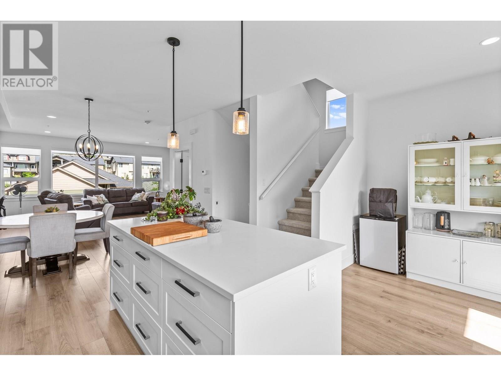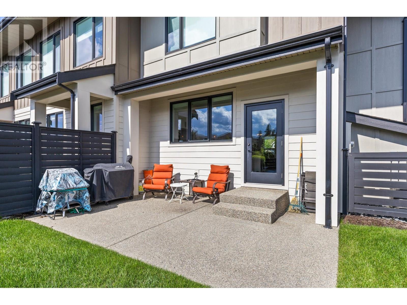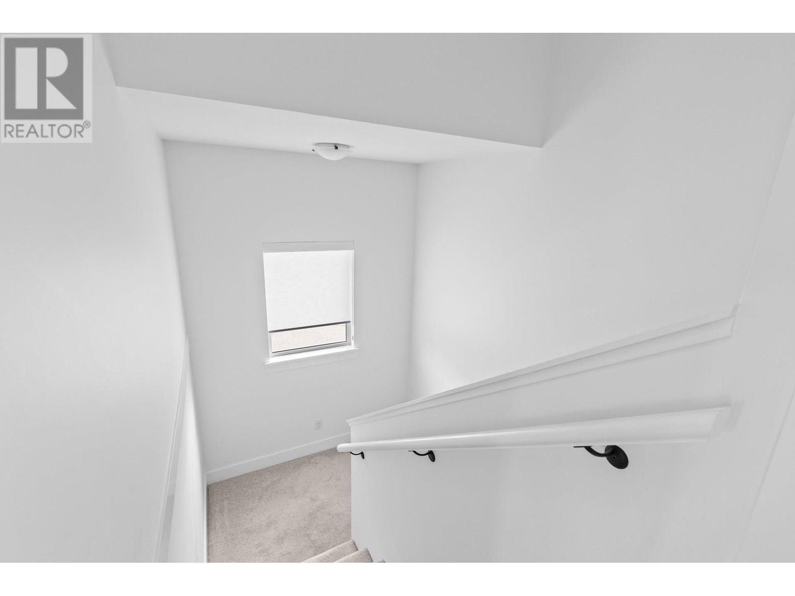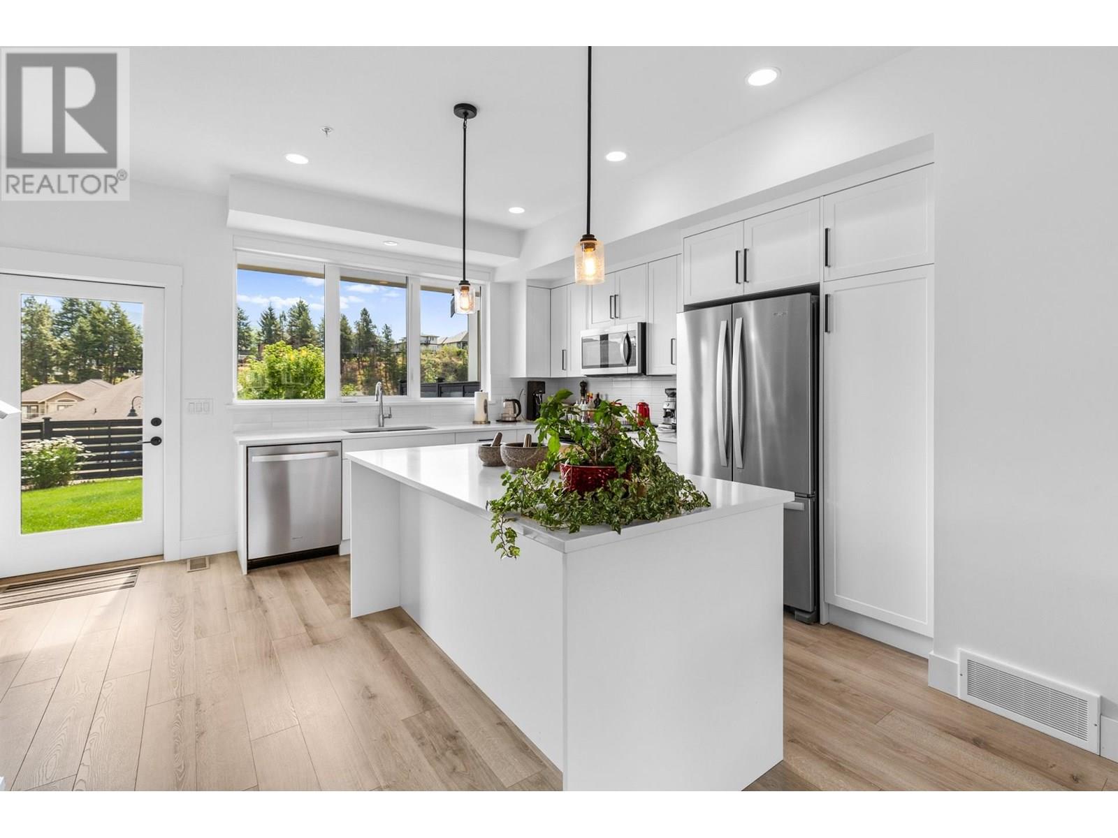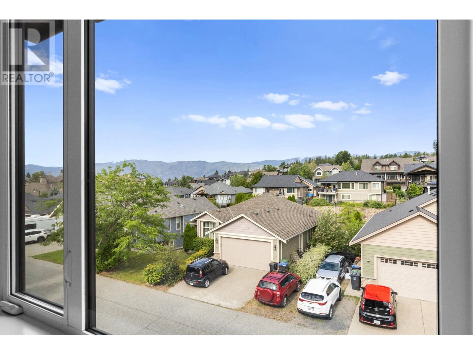 Bright & Modern End Unit in Rockridge at The Lakes. A vibrant and family/pet friendly townhome community in the heart of Lake Country. This stylish 3-bedroom + den/flex, 3-bathroom end unit offers the perfect blend of space, functionality, and comfort. Flooded with natural light, the main floor showcases a modern open-concept design with large windows throughout. The kitchen is a true highlight, featuring quartz countertops, a gas range, sit-up island, and cozy eating nook. The layout flows seamlessly into a spacious dining area and bright living room—perfect for everyday living and entertaining. Step out from the kitchen to your private, elevated backyard oasis with panoramic Eastern Mountain views. With no units directly behind, you’ll enjoy added privacy along with a gas hookup, power, and water connection. Upstairs you’ll find three well-appointed bedrooms, including a generous primary suite with a 4-piece ensuite. The laundry is conveniently located on this level as well. The lower level adds valuable flexibility with a den/flex room – perfect for a home office, gym, or guest space. Additional features include a double car garage, a full-length 26 ft driveway that easily accommodates most vehicles, and close proximity to visitor parking—making hosting friends and family a breeze. This home truly has it all—modern comfort, unbeatable functionality, and a fantastic location. (id:6770)