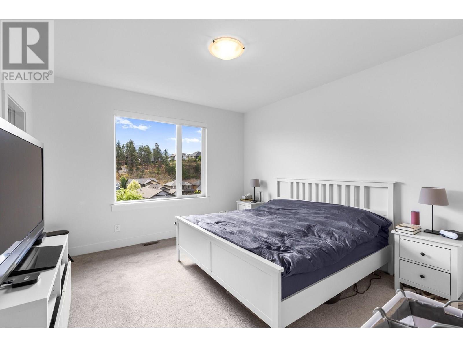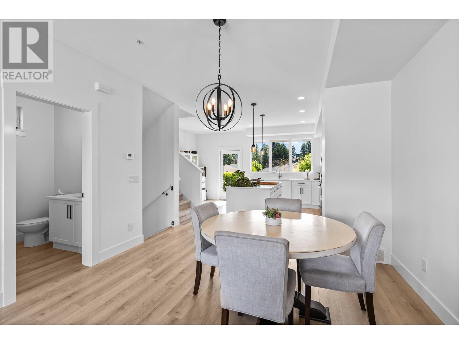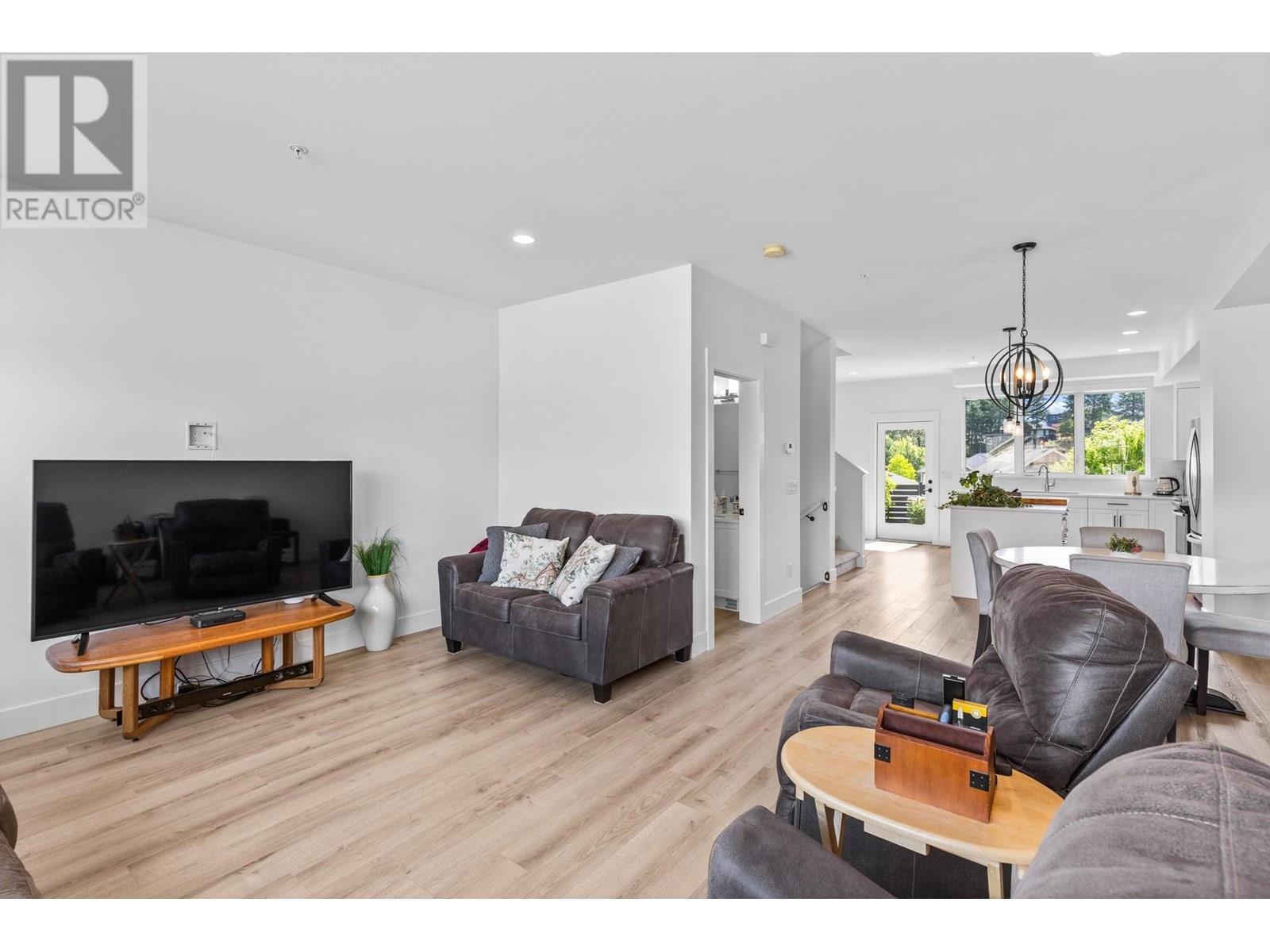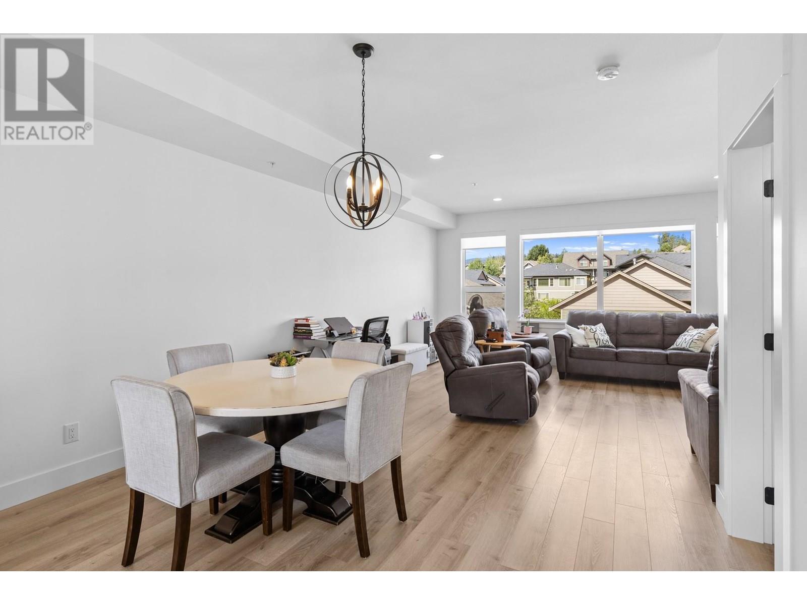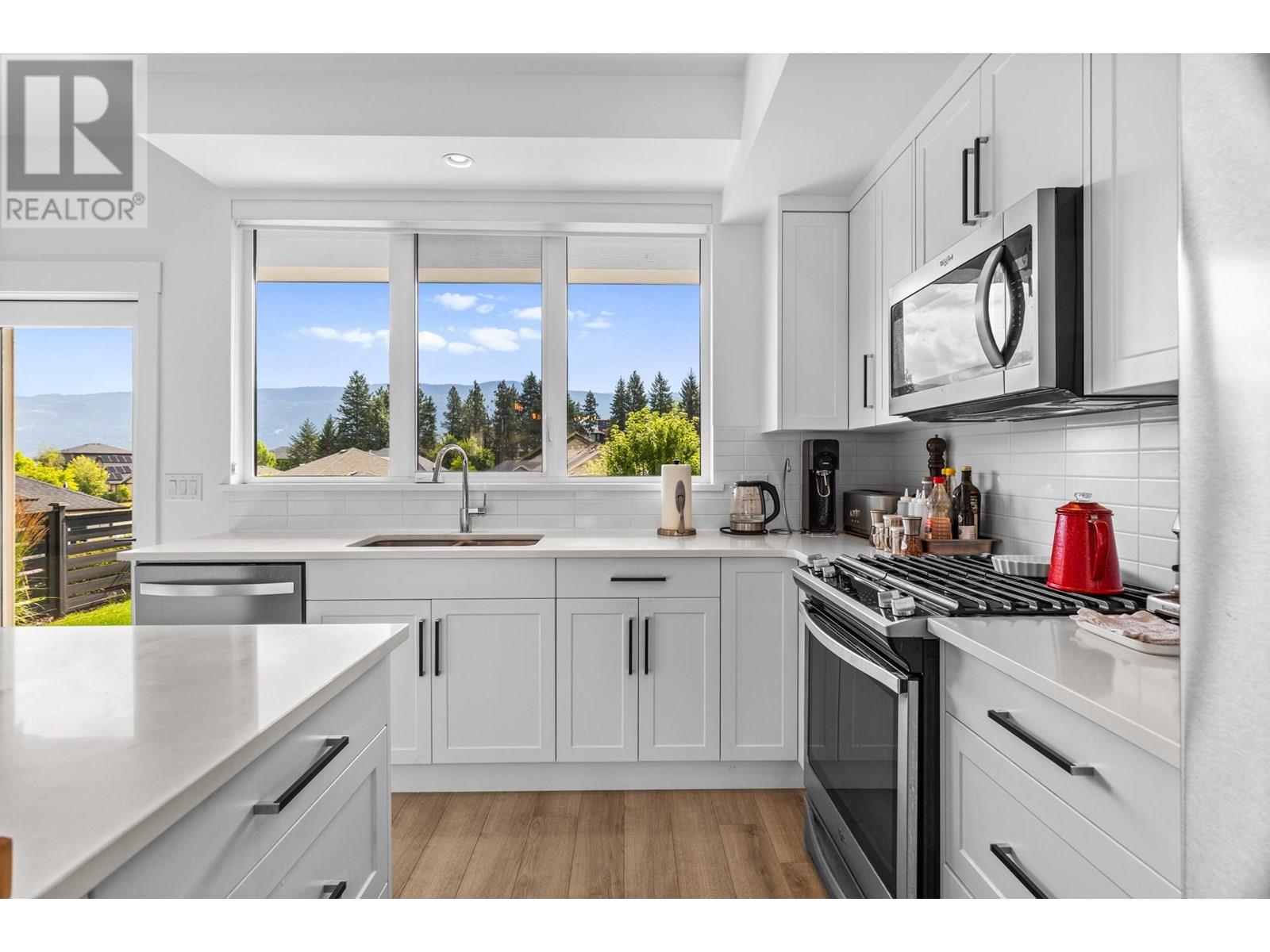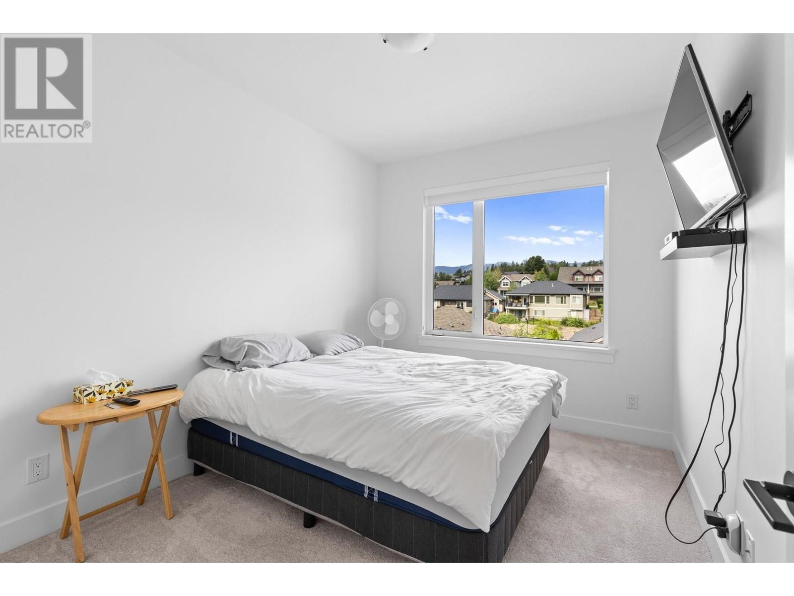 Bright & Modern End Unit in Rockridge at The Lakes. A vibrant and family/pet friendly townhome community in the heart of Lake Country. This stylish 3-bedroom + den/flex, 3-bathroom end unit offers the perfect blend of space, functionality, and comfort. Flooded with natural light, the main floor showcases a modern open-concept design with large windows throughout. The kitchen is a true highlight, featuring quartz countertops, a gas range, sit-up island, and cozy eating nook. The layout flows seamlessly into a spacious dining area and bright living room—perfect for everyday living and entertaining. Step out from the kitchen to your private, elevated backyard oasis with panoramic Eastern Mountain views. With no units directly behind, you’ll enjoy added privacy along with a gas hookup, power, and water connection. Upstairs you’ll find three well-appointed bedrooms, including a generous primary suite with a 4-piece ensuite. The laundry is conveniently located on this level as well. The lower level adds valuable flexibility with a den/flex room – perfect for a home office, gym, or guest space. Additional features include a double car garage, a full-length 26 ft driveway that easily accommodates most vehicles, and close proximity to visitor parking—making hosting friends and family a breeze. This home truly has it all—modern comfort, unbeatable functionality, and a fantastic location. (id:6770)