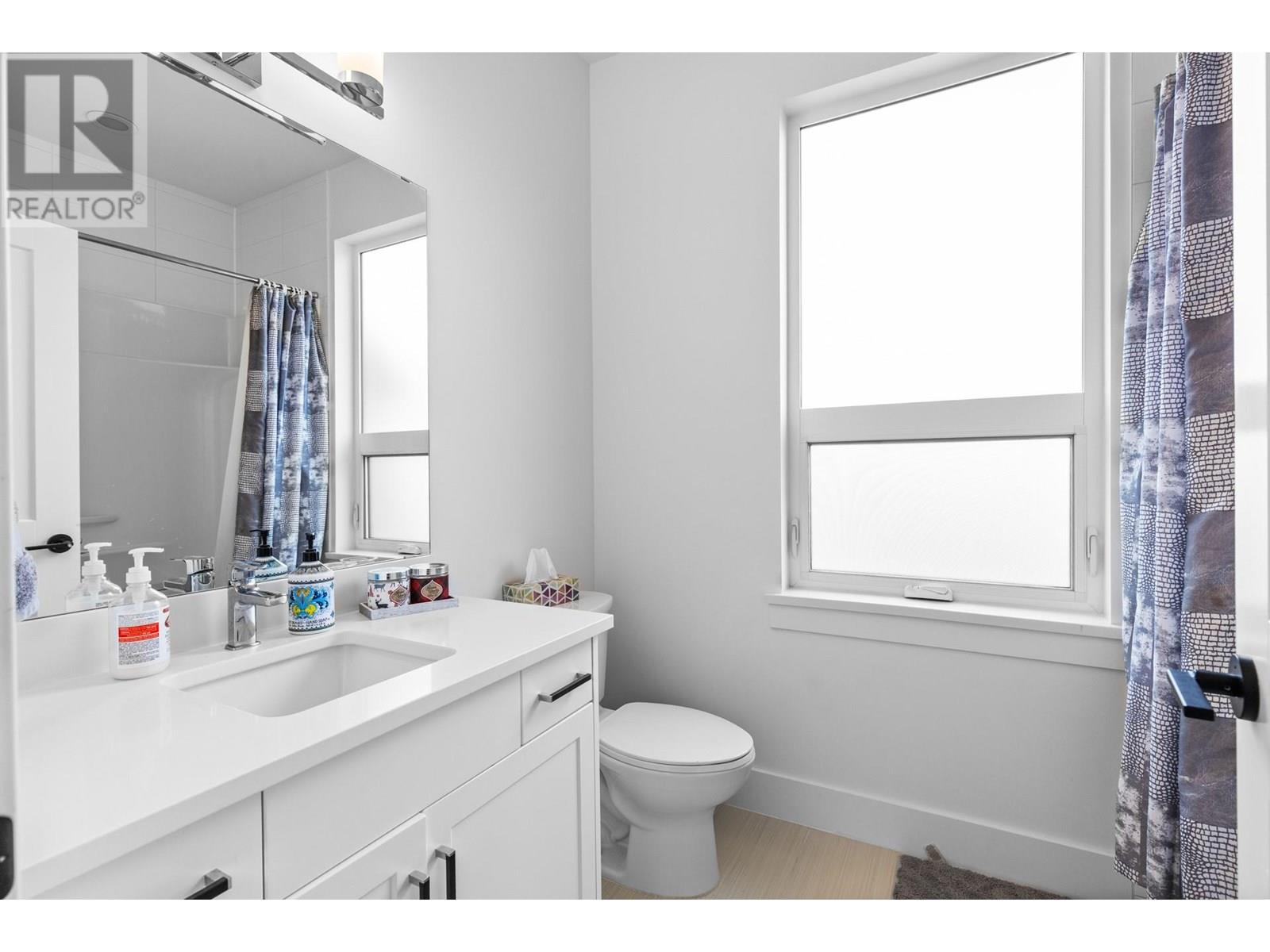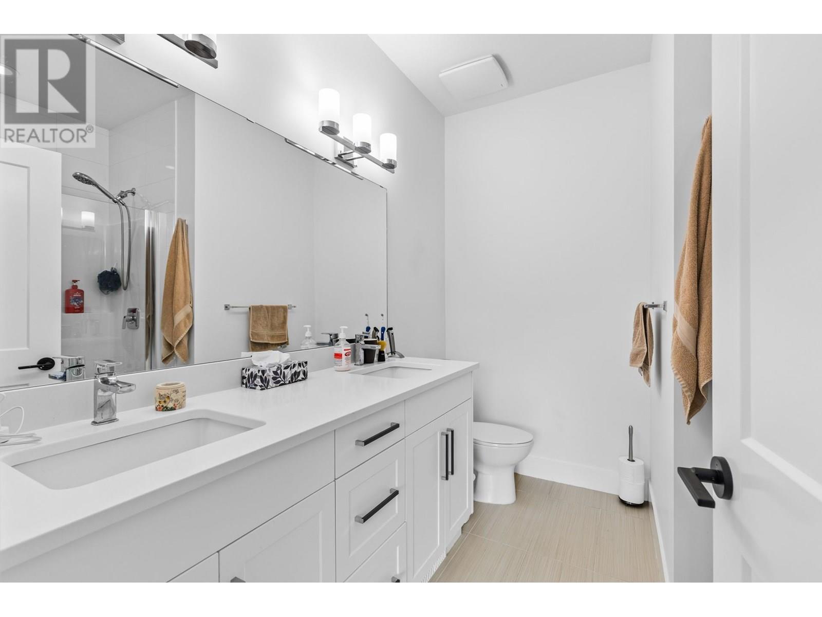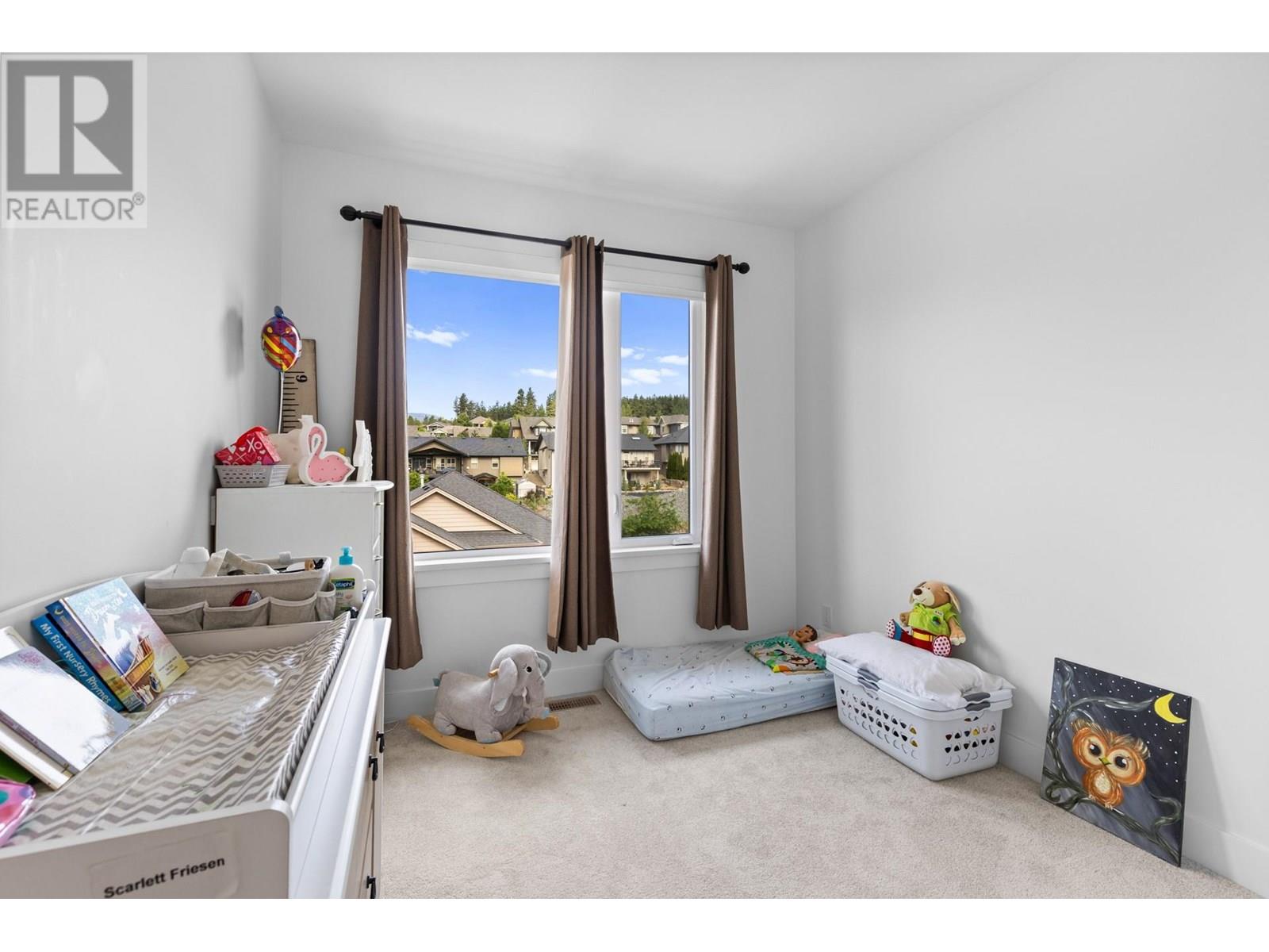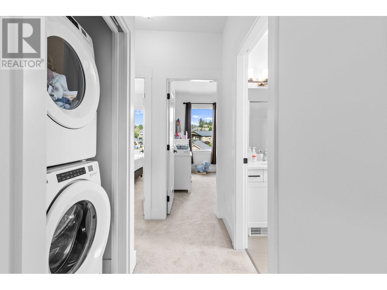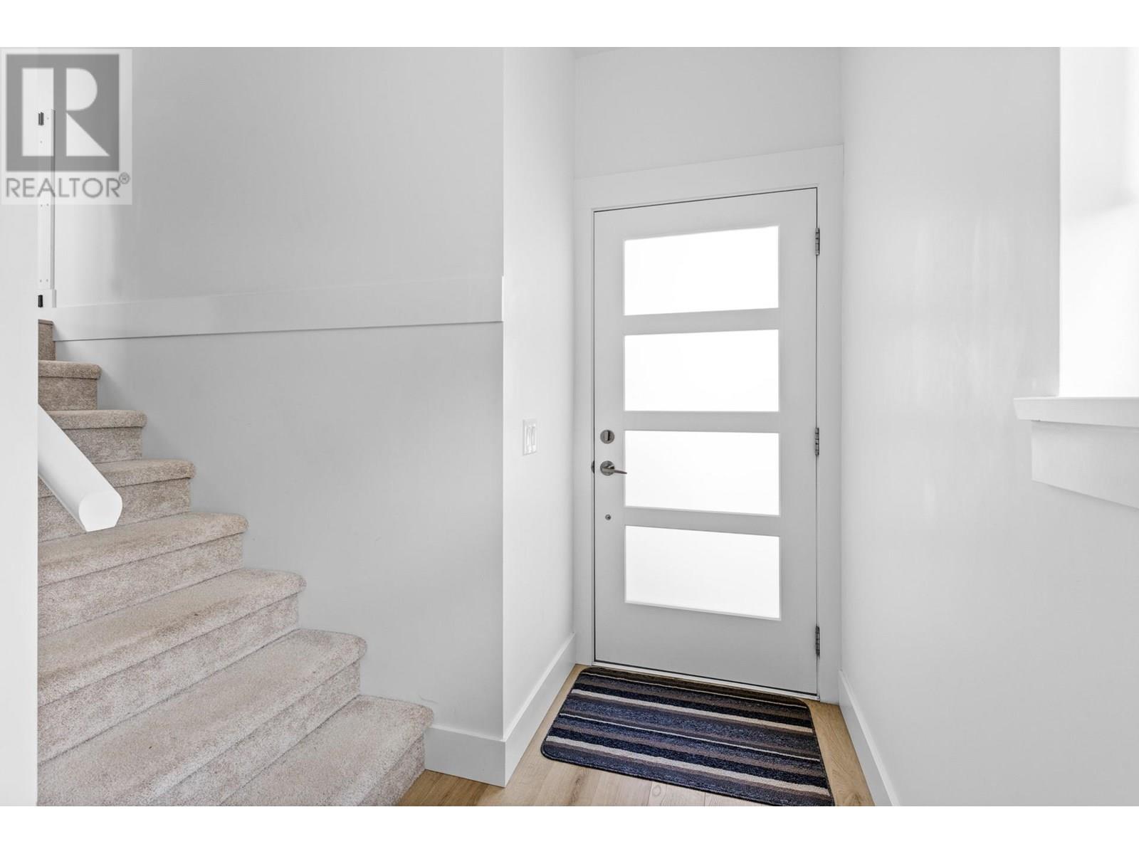 Bright & Modern End Unit in Rockridge at The Lakes. A vibrant and family/pet friendly townhome community in the heart of Lake Country. This stylish 3-bedroom + den/flex, 3-bathroom end unit offers the perfect blend of space, functionality, and comfort. Flooded with natural light, the main floor showcases a modern open-concept design with large windows throughout. The kitchen is a true highlight, featuring quartz countertops, a gas range, sit-up island, and cozy eating nook. The layout flows seamlessly into a spacious dining area and bright living room—perfect for everyday living and entertaining. Step out from the kitchen to your private, elevated backyard oasis with panoramic Eastern Mountain views. With no units directly behind, you’ll enjoy added privacy along with a gas hookup, power, and water connection. Upstairs you’ll find three well-appointed bedrooms, including a generous primary suite with a 4-piece ensuite. The laundry is conveniently located on this level as well. The lower level adds valuable flexibility with a den/flex room – perfect for a home office, gym, or guest space. Additional features include a double car garage, a full-length 26 ft driveway that easily accommodates most vehicles, and close proximity to visitor parking—making hosting friends and family a breeze. This home truly has it all—modern comfort, unbeatable functionality, and a fantastic location. (id:6770)