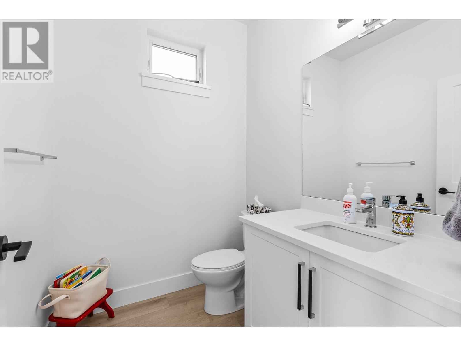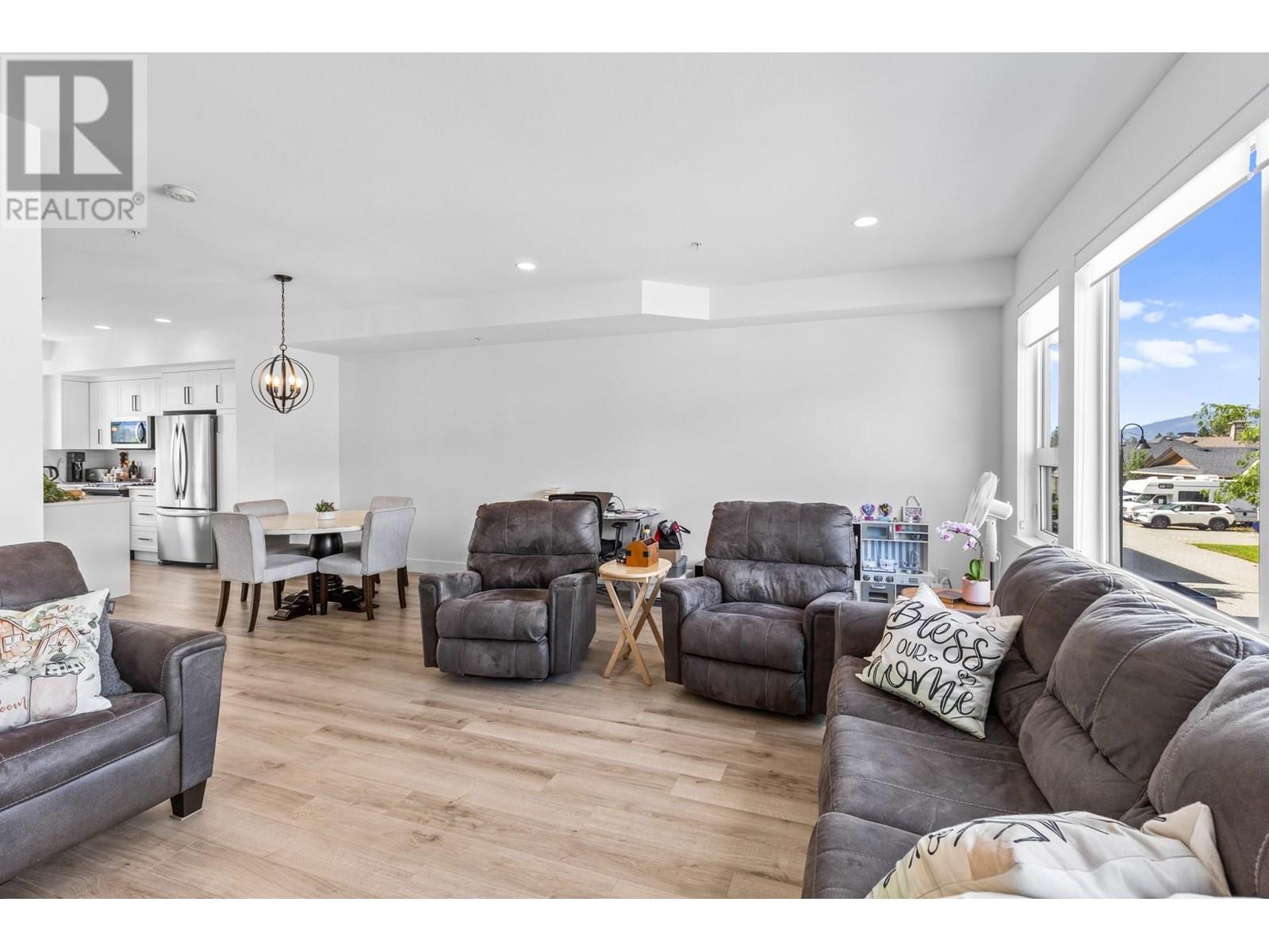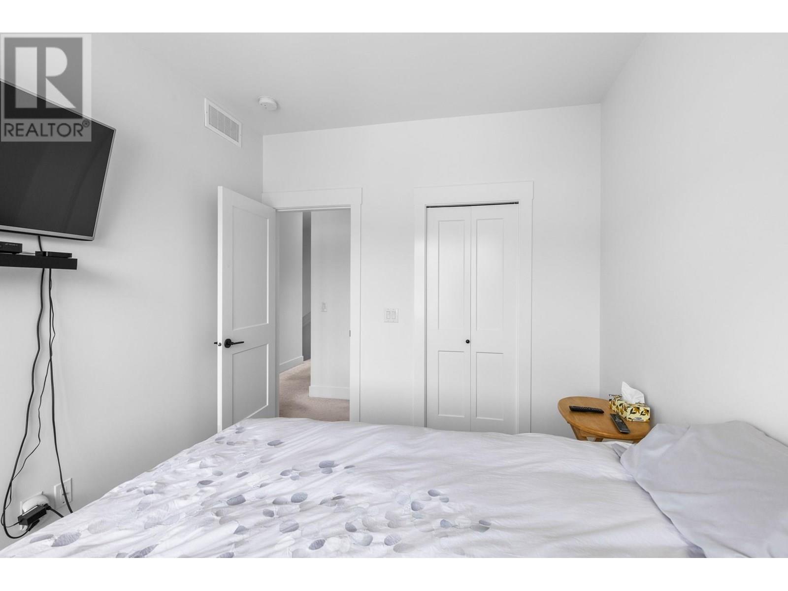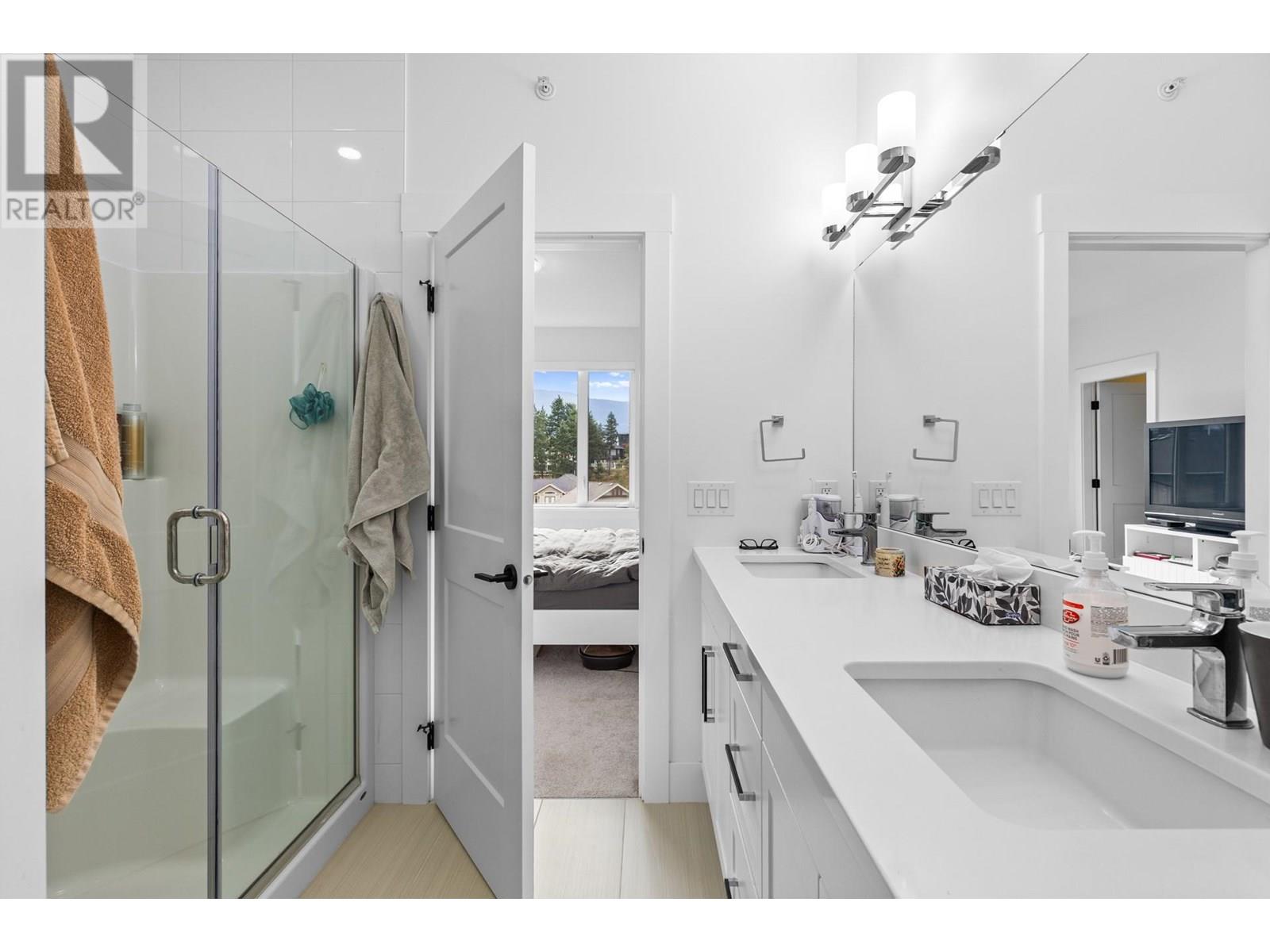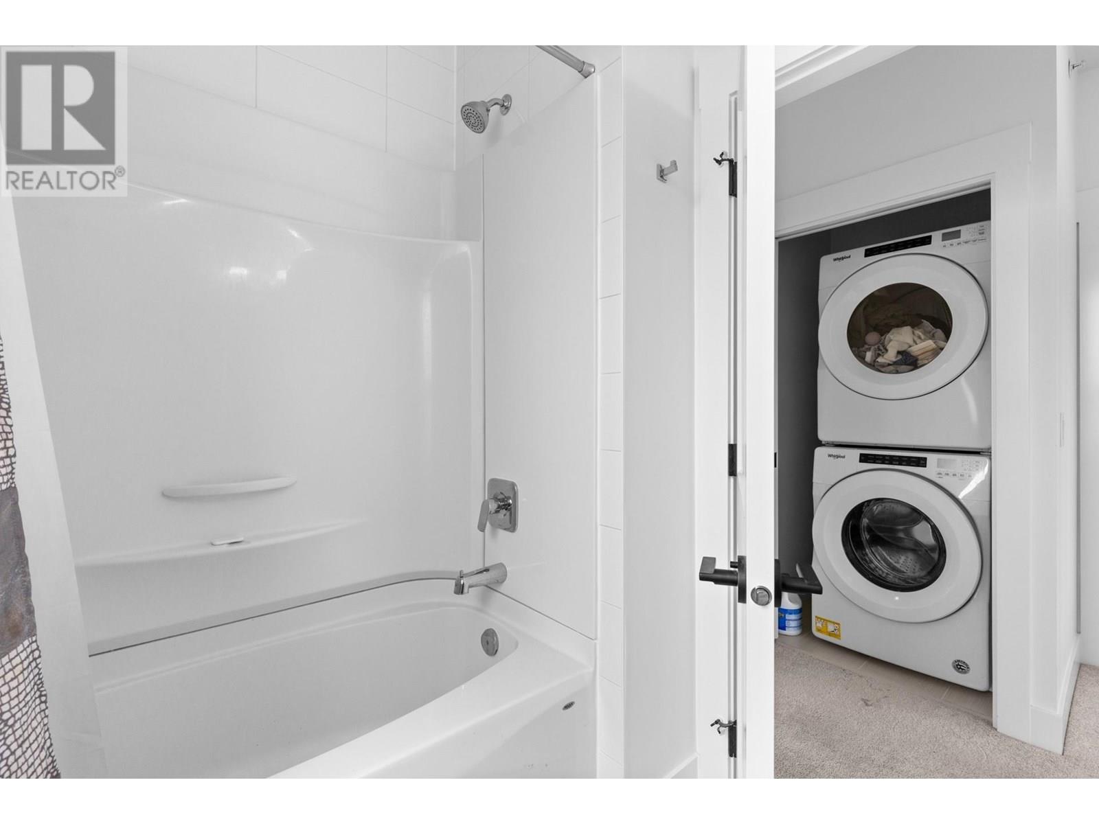 Bright & Modern End Unit in Rockridge at The Lakes. A vibrant and family/pet friendly townhome community in the heart of Lake Country. This stylish 3-bedroom + den/flex, 3-bathroom end unit offers the perfect blend of space, functionality, and comfort. Flooded with natural light, the main floor showcases a modern open-concept design with large windows throughout. The kitchen is a true highlight, featuring quartz countertops, a gas range, sit-up island, and cozy eating nook. The layout flows seamlessly into a spacious dining area and bright living room—perfect for everyday living and entertaining. Step out from the kitchen to your private, elevated backyard oasis with panoramic Eastern Mountain views. With no units directly behind, you’ll enjoy added privacy along with a gas hookup, power, and water connection. Upstairs you’ll find three well-appointed bedrooms, including a generous primary suite with a 4-piece ensuite. The laundry is conveniently located on this level as well. The lower level adds valuable flexibility with a den/flex room – perfect for a home office, gym, or guest space. Additional features include a double car garage, a full-length 26 ft driveway that easily accommodates most vehicles, and close proximity to visitor parking—making hosting friends and family a breeze. This home truly has it all—modern comfort, unbeatable functionality, and a fantastic location. (id:6770)