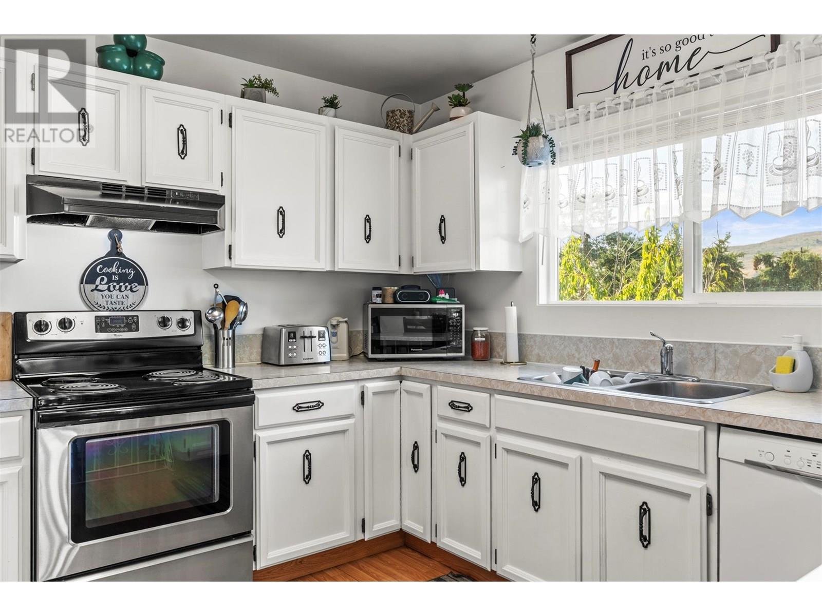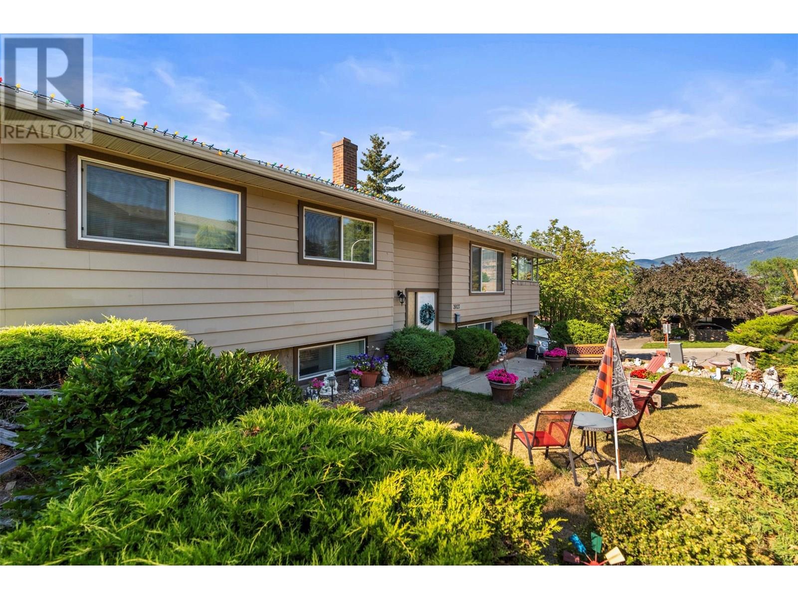 LOCATION, LOCATION! 4-bed, 3-bath Mission Hill home offers stunning city views & great location. The main level offers a nice sized kitchen with views of Bella Vista and a bright living space, including a primary suite with a full ensuite and stand-up shower, 2 more bedrooms and a second full bath complete this floor. Downstairs features a large fourth bedroom, a cozy family room, a combined laundry and bathroom, ample storage, and direct garage access. The spacious, covered semi-enclosed deck is perfect for BBQs, entertaining, or relaxing while enjoying panoramic views over Vernon. Parking is easy with a single-car garage and a generous driveway that can accommodate four vehicles, an RV, or a boat. Mature landscaping and a cedar hedge provide privacy in the front yard, creating a sunny outdoor retreat. Stone steps lead to the backyard, where you’ll find a plum tree, additional greenery, and plenty of space for garden beds, a fire pit, or a playhouse. A covered storage area at the back of the home is ideal for outdoor tools. Washer, dryer, and window air conditioner are included in the sale. Located within walking distance of Mission Hill Dog Park and playground, with schools nearby and downtown Vernon only minutes away, this home offers incredible value! This property is an excellent choice for a family home or an investment opportunity. Learn more about this fantastic Vernon property on our website. Ready to take a closer look? Schedule your private showing today! (id:6770)