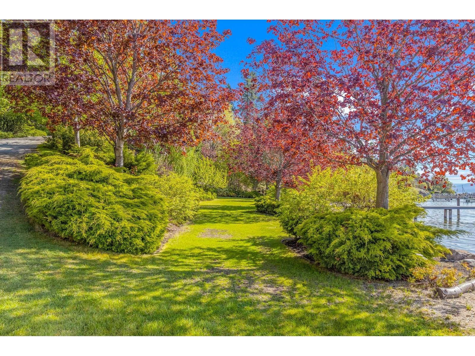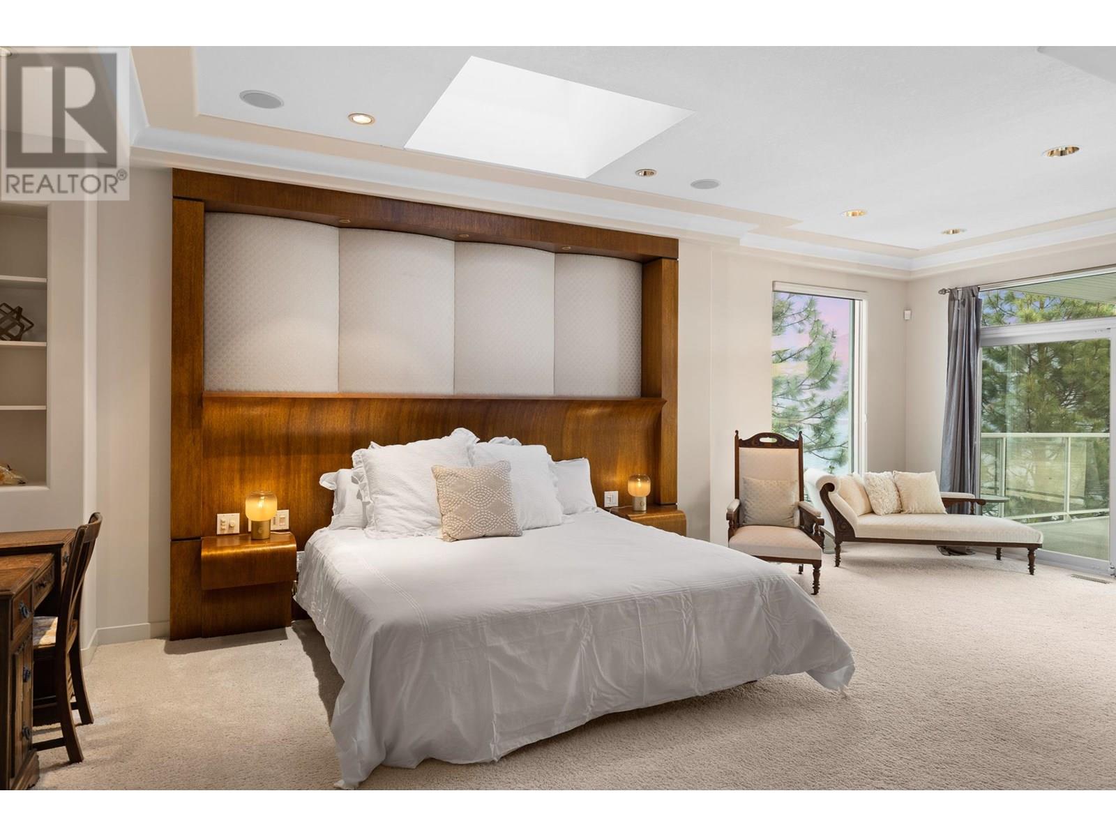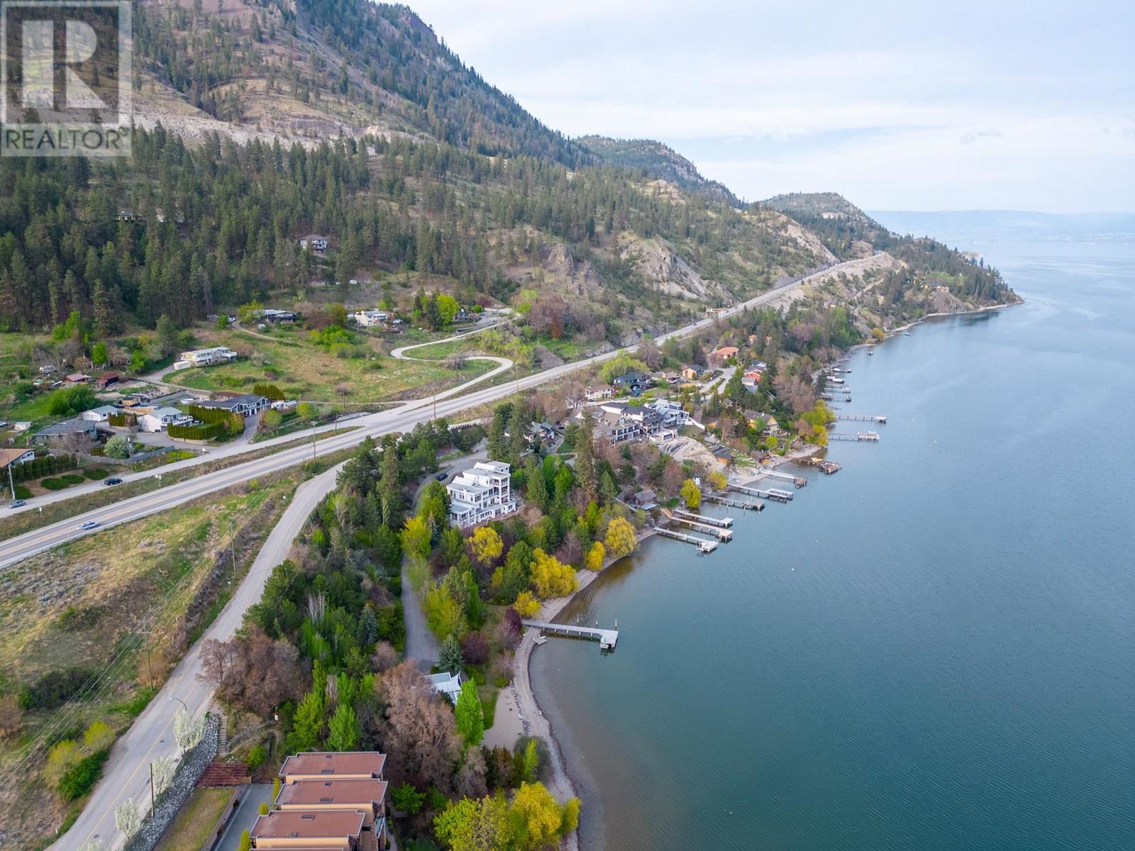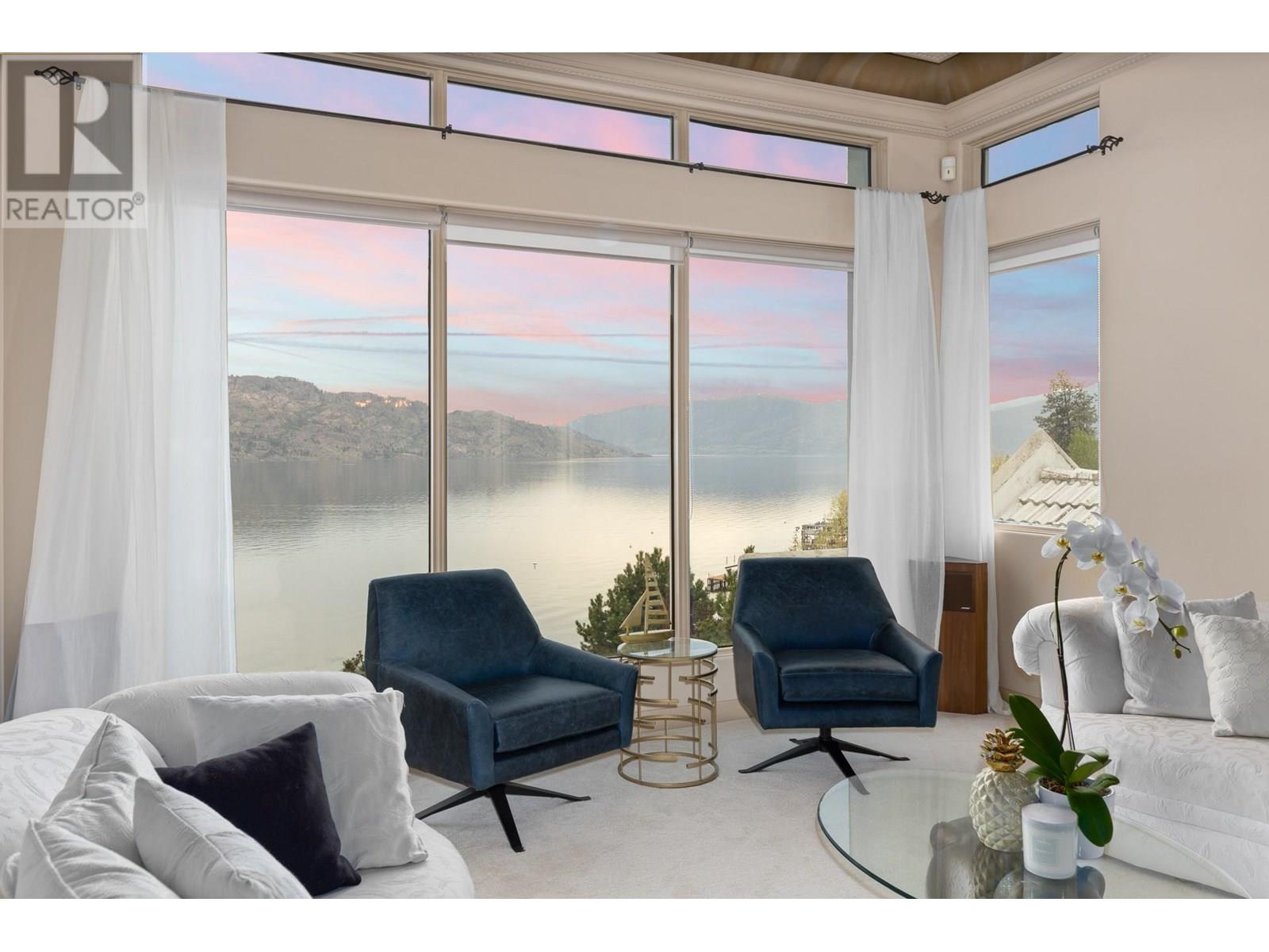 Spectacular lakeshore estate with over 500' of level beachfront, 2.17 acres of private, parklike grounds, and an architecturally designed 8300 sqft main residence featuring 8 bedrooms, 7 bathrooms, a stunning ""Tuscan""-inspired theatre, games room, fitness studio, and walls of windows framing breathtaking lake views. Spanning 4 levels with expansive decks, nearly every room captures panoramic vistas. The 800 sqft top-floor primary retreat offers ultimate luxury. A glass-enclosed party wing with full butler’s kitchen is ideal for hosting. Private nanny suite included. Detached 1638 sqft, 5 bed, 2 bath guest house sits lakeside with storage for all your water toys. Completing this lakeshore oasis is a charming rustic log cabin hideaway nestled in the trees, full of cozy character. Lush landscaping, nature trails, multiple ponds, and a massive feature waterfall enhance this rare offering. New pile-driven dock with lift, volleyball court, and unobstructed 180 degree views of lake, valley, and mountains. The entire property is like your own private park, with extensive sandy beach, lake level yard and green space, and ultimate privacy. The District of Peachland supports rezoning for 0.6 FSR and a deep-water marina with 22+ large boat slips. Full data room available with extensive surveys, reports, etc. Two minutes to Okanagan Connector, 5 minutes to West Kelowna. This is a completely unique offering with huge development potential, or an incredible family estate. (id:6770)