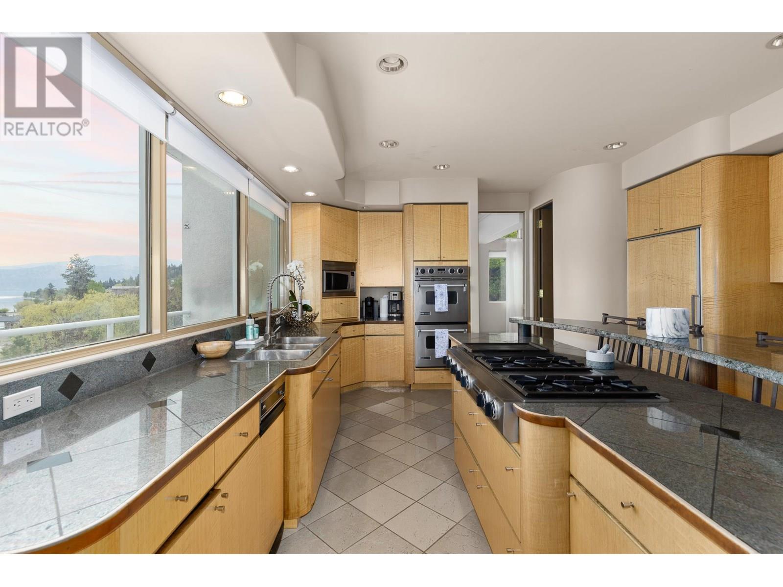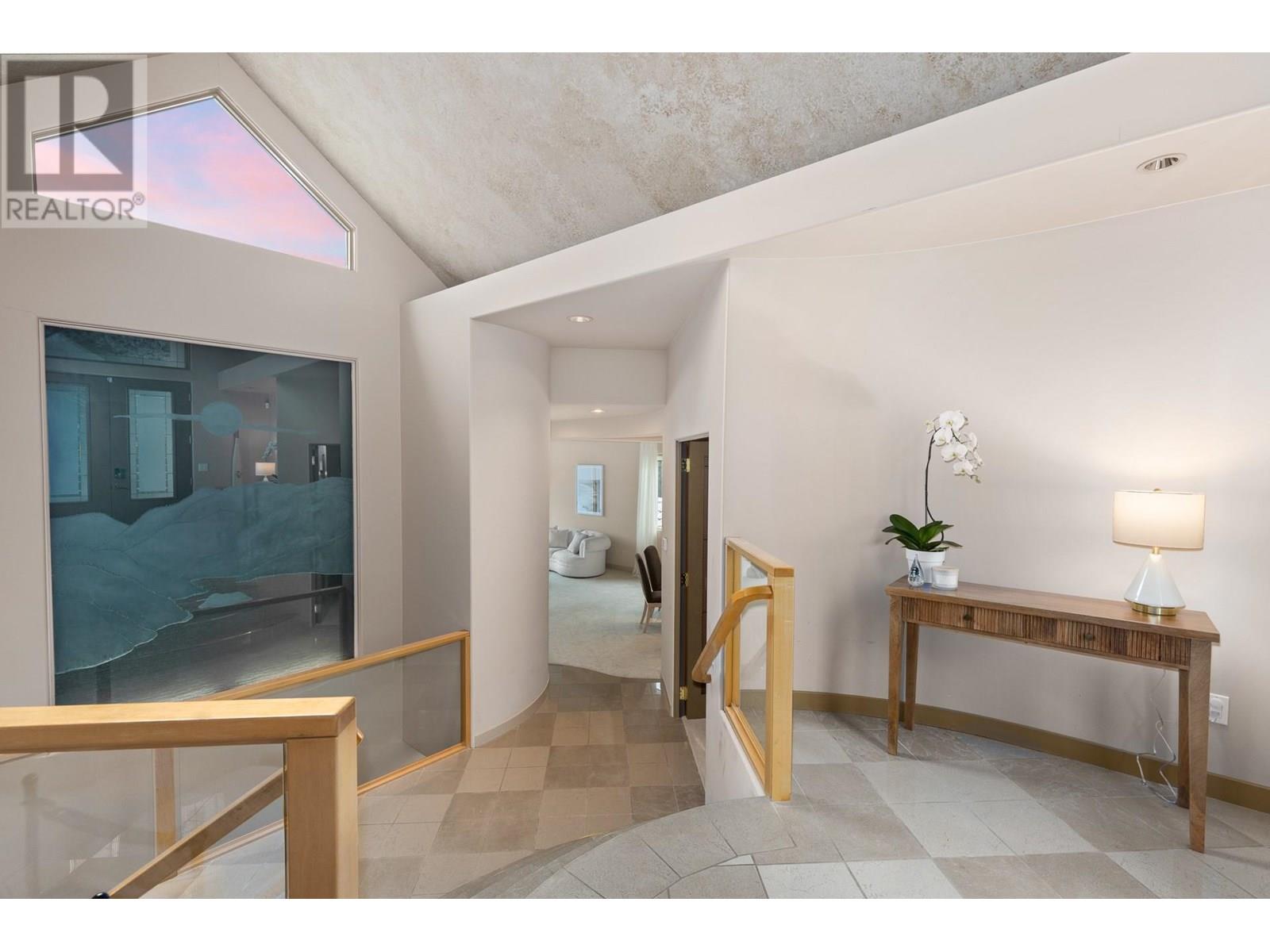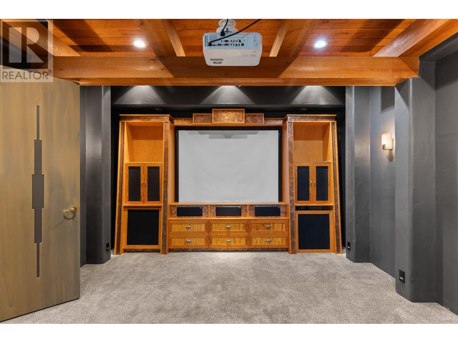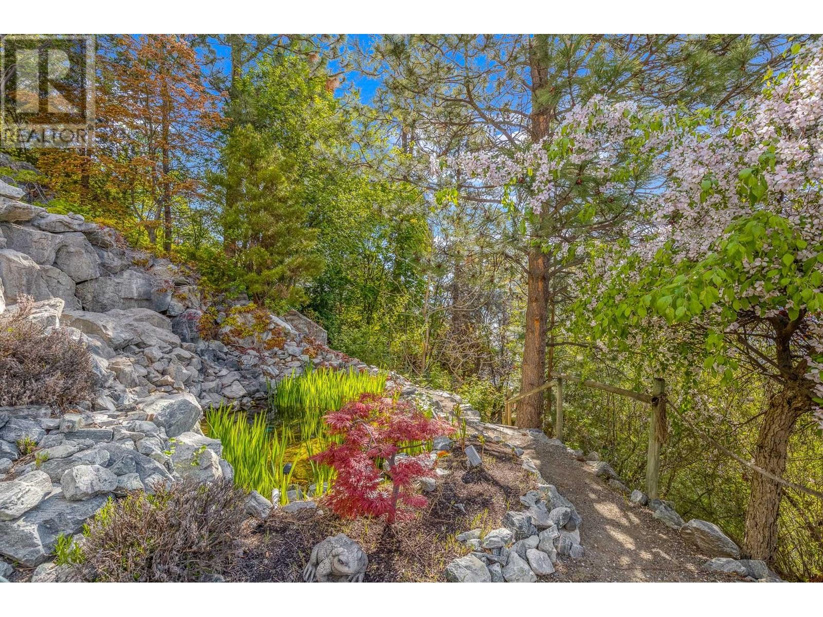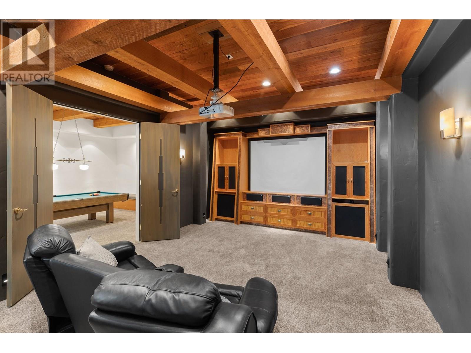 Spectacular lakeshore estate with over 500' of level beachfront, 2.17 acres of private, parklike grounds, and an architecturally designed 8300 sqft main residence featuring 8 bedrooms, 7 bathrooms, a stunning ""Tuscan""-inspired theatre, games room, fitness studio, and walls of windows framing breathtaking lake views. Spanning 4 levels with expansive decks, nearly every room captures panoramic vistas. The 800 sqft top-floor primary retreat offers ultimate luxury. A glass-enclosed party wing with full butler’s kitchen is ideal for hosting. Private nanny suite included. Detached 1638 sqft, 5 bed, 2 bath guest house sits lakeside with storage for all your water toys. Completing this lakeshore oasis is a charming rustic log cabin hideaway nestled in the trees, full of cozy character. Lush landscaping, nature trails, multiple ponds, and a massive feature waterfall enhance this rare offering. New pile-driven dock with lift, volleyball court, and unobstructed 180 degree views of lake, valley, and mountains. The entire property is like your own private park, with extensive sandy beach, lake level yard and green space, and ultimate privacy. The District of Peachland supports rezoning for 0.6 FSR and a deep-water marina with 22+ large boat slips. Full data room available with extensive surveys, reports, etc. Two minutes to Okanagan Connector, 5 minutes to West Kelowna. This is a completely unique offering with huge development potential, or an incredible family estate. (id:6770)