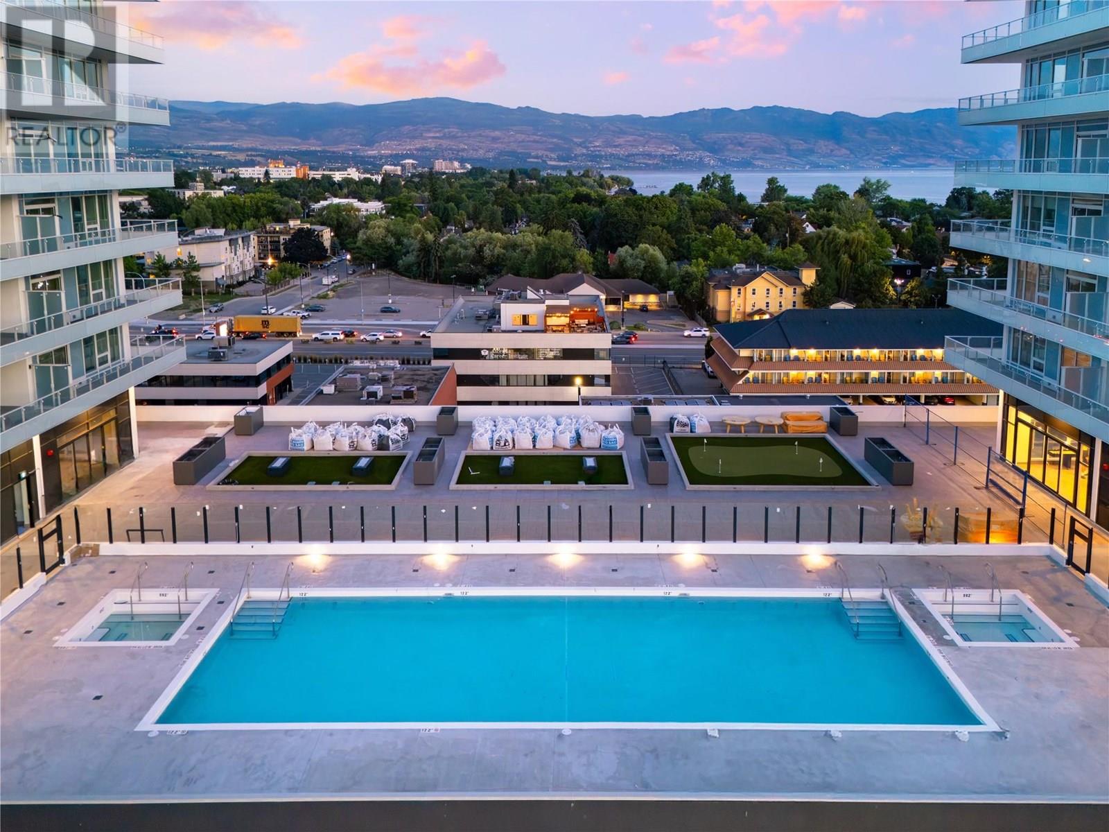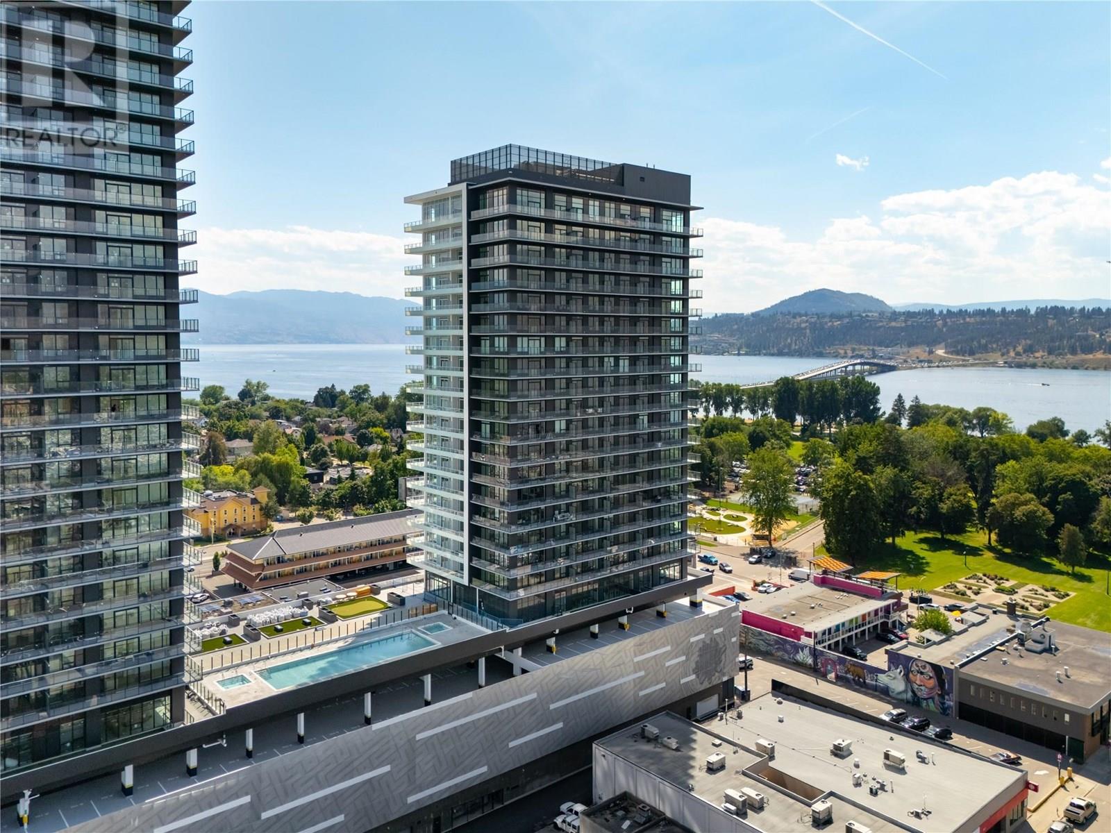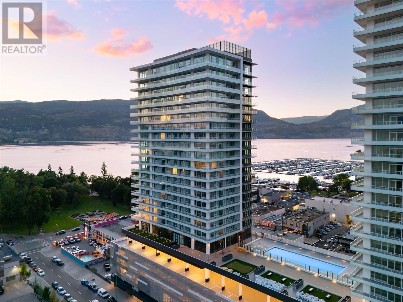 Welcome to #807 238 Leon Avenue! Water Street by the Park (WSBTP) is a brand-new development offering vacation-inspired living in the heart of downtown Kelowna. This luxurious SW facing, 3-bedroom + Den, 2-bathroom unit includes 1398 sq. Ft of living space, w/ a 500 sq. Ft wrap around balcony, offering breathtaking views of Okanagan Lake. The C1-07 floorplan is thoughtfully designed with luxury and elegance in mind and offers clean lines, bright open living space, and calming neutral colours throughout. The kitchen features premium wood cabinetry, quartz countertops, and stainless-steel Fulgor Milano appliance package, including panel ready fridge and gas range. The interior is finished with luxury vinyl plank flooring and porcelain tile. WSBTP is an amenity rich community, which features a sixth-floor “deck” that offers a peaceful retreat from the buzz of downtown Kelowna. The deck includes a heated outdoor pool, two hot tubs, sauna, steam room, fully equipped gym, outdoor BBQs, fire pit enclaves, golf simulator, putting green, yoga and spin studio, and so much more. WSBTP puts you at the centre of it all—just steps from coffee shops, restaurants, breweries, wineries, shopping, public transit, City Park, and the Waterfront Boardwalk. One parking stall included. No storage locker. Rentals are allowed, with restrictions (min. 30 days) and pets are also allowed, with restrictions (up to two dogs; or 2 cats; or one dog and one cat). GST is inclusive of the purchase price. (id:6770)