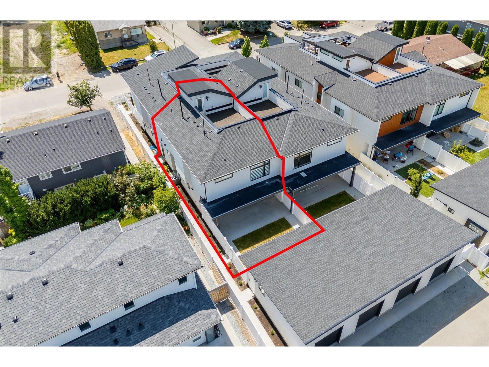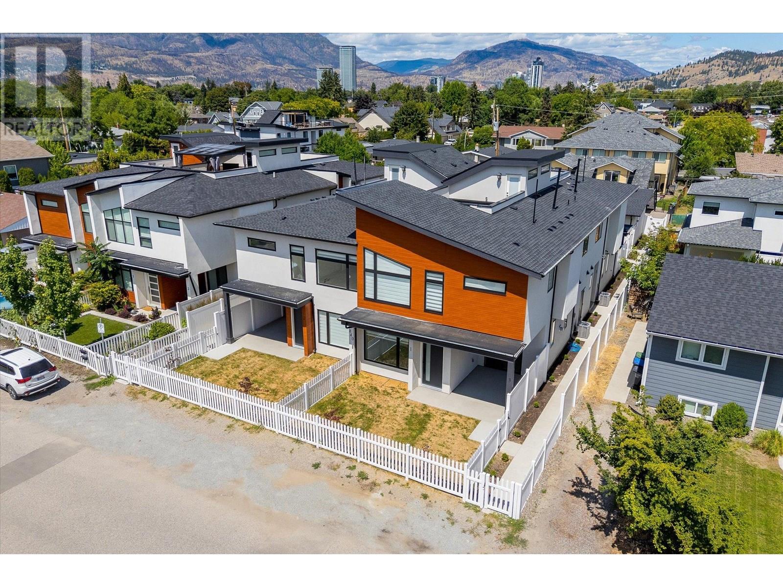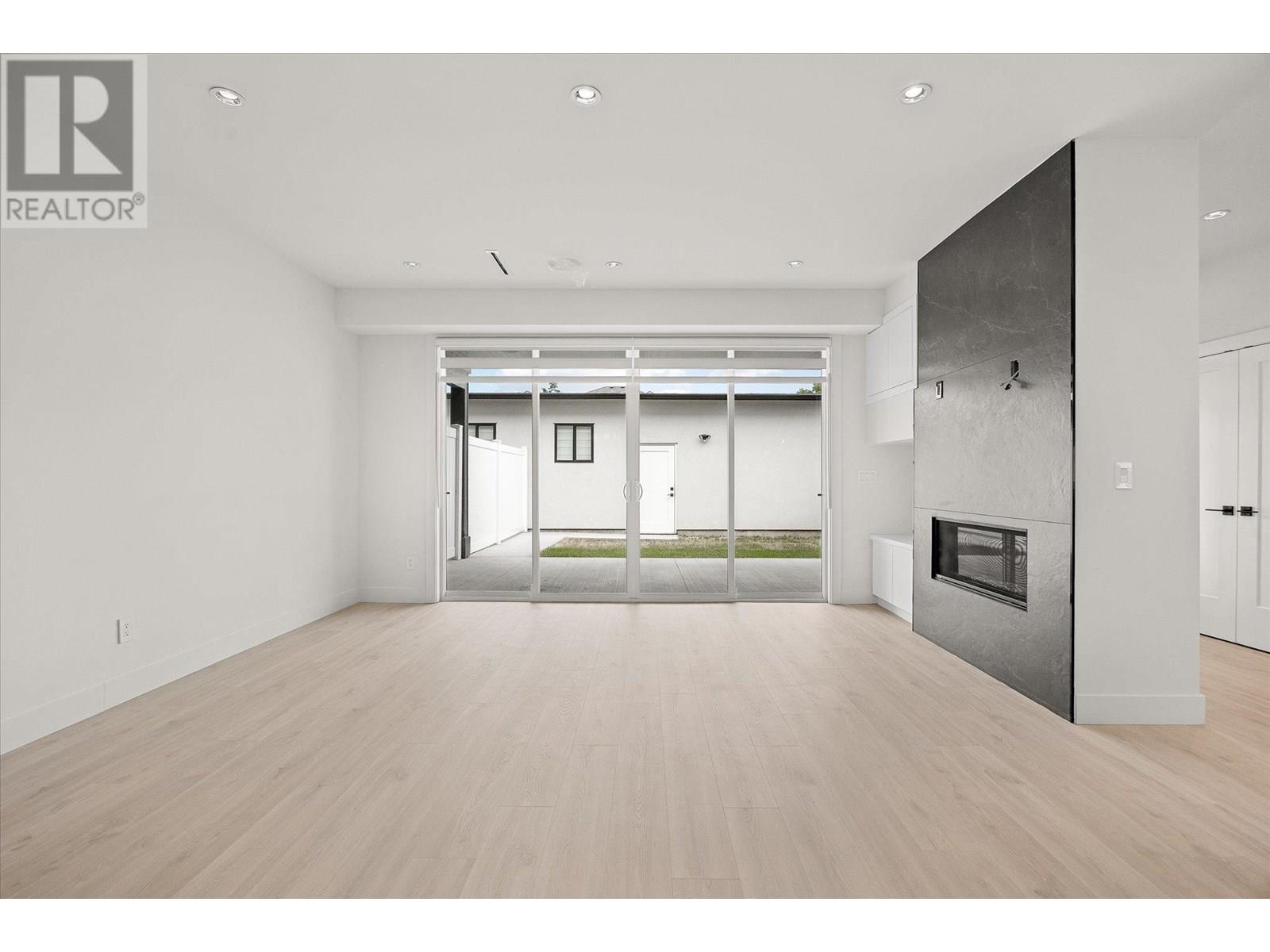 NEW PRICE! Spacious-Brand New-Kelowna South Townhome-Move-In Ready-No Strata Fee! Blending modern design with contemporary charm, this 3-bedroom, 3-bathroom townhome offers 2001 sq ft of thoughtfully designed living space. Highlights include a private rooftop patio, a spacious front yard with a white privacy fence and a single detached garage. Inside, you’re welcomed by 9-foot ceilings and an open-concept main floor featuring wide plank laminate flooring, custom window coverings and elegant built-in cabinetry throughout. The chef-inspired kitchen boasts a large island with built-in storage, striking two-tone cabinetry, stainless steel appliances, a gas range and a wine fridge—perfect for entertaining! Finishes include white granite countertops, a cozy gas fireplace set against a stylish feature wall and main floor built-in speakers (indoor and outdoor). The primary suite offers a generous sized bedroom with a large walk-in closet and a 5-piece ensuite complete with a freestanding tub and a private water closet. Two additional spacious bedrooms feature TV/media hookups and the same floor laundry room including a stacked washer/dryer with built-in cabinets. Ideally located just minutes from parks, schools, shopping, KGH and the lake this home offers the perfect blend of spacious living, everyday comfort and lifestyle leisure. (id:6770)