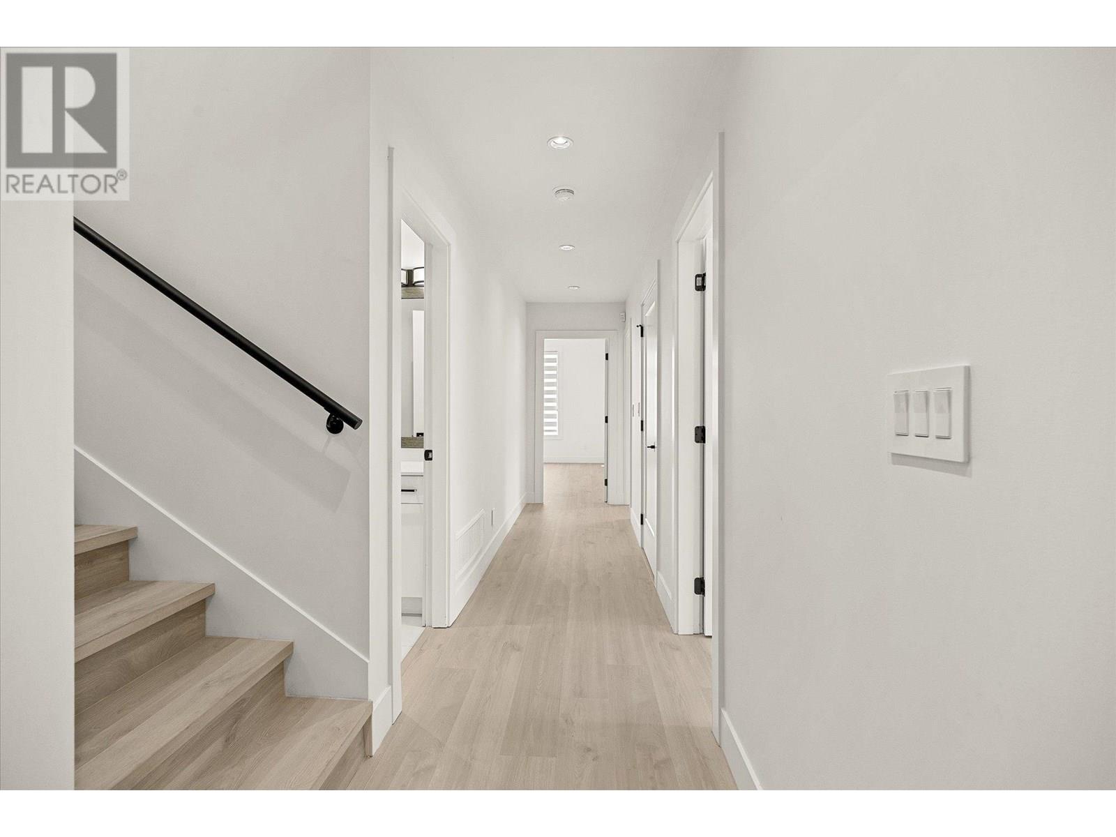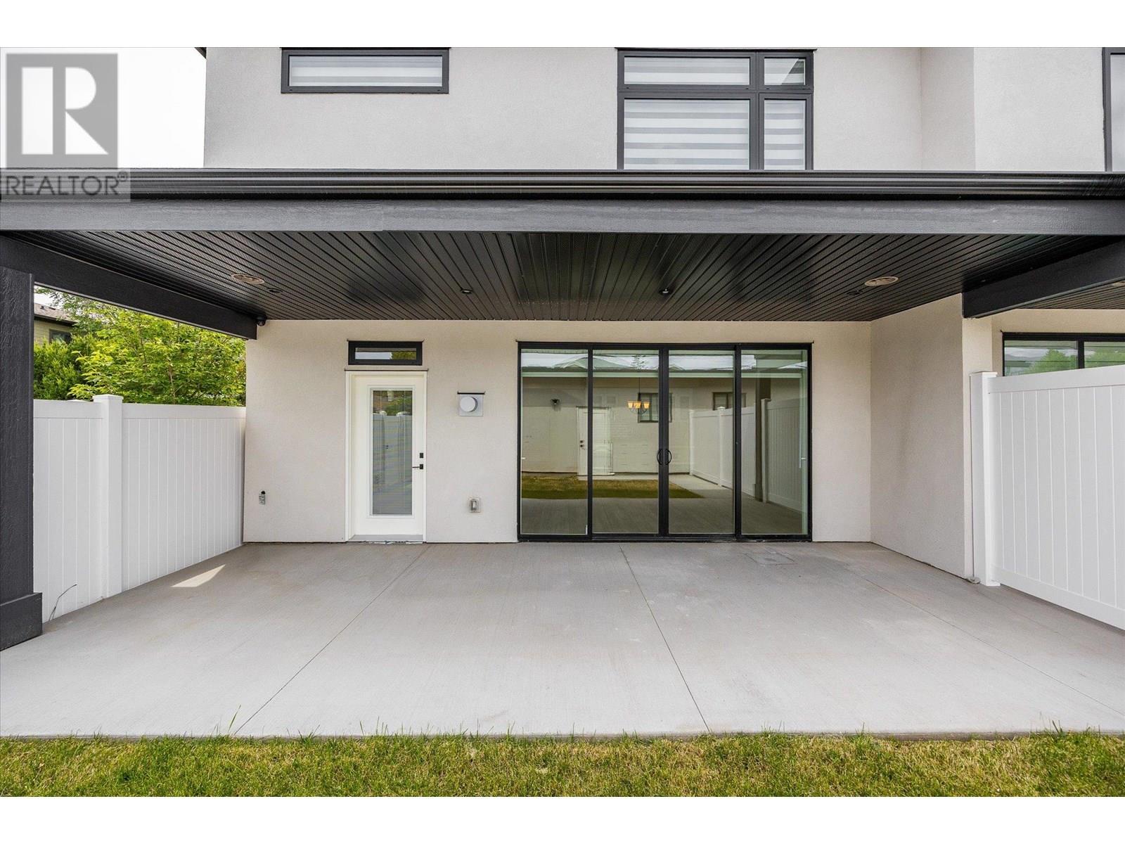 NEW PRICE! Spacious-Brand New-Kelowna South Townhome-Move-In Ready! Blending modern design with contemporary charm, this 3-bedroom, 3-bathroom townhome offers 2001 sq ft of thoughtfully designed living space. Highlights include a private rooftop patio, a spacious front yard with a white privacy fence and a single detached garage. Inside, you’re welcomed by 9-foot ceilings and an open-concept main floor featuring wide plank laminate flooring, custom window coverings and elegant built-in cabinetry throughout. The chef-inspired kitchen boasts a large island with built-in storage, striking two-tone cabinetry, stainless steel appliances, a gas range and a wine fridge—perfect for entertaining! Finishes include white granite countertops, a cozy gas fireplace set against a stylish feature wall and main floor built-in speakers (indoor and outdoor). The primary suite offers a generous sized bedroom with a large walk-in closet and a 5-piece ensuite complete with a freestanding tub and a private water closet. Two additional spacious bedrooms feature TV/media hookups and the same floor laundry room including a stacked washer/dryer with built-in cabinets. Ideally located just minutes from parks, schools, shopping, KGH and the lake this home offers the perfect blend of spacious living, everyday comfort and lifestyle leisure. (id:6770)
