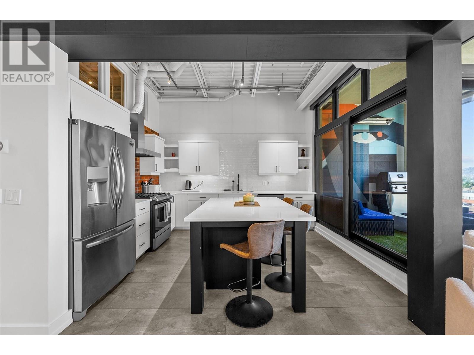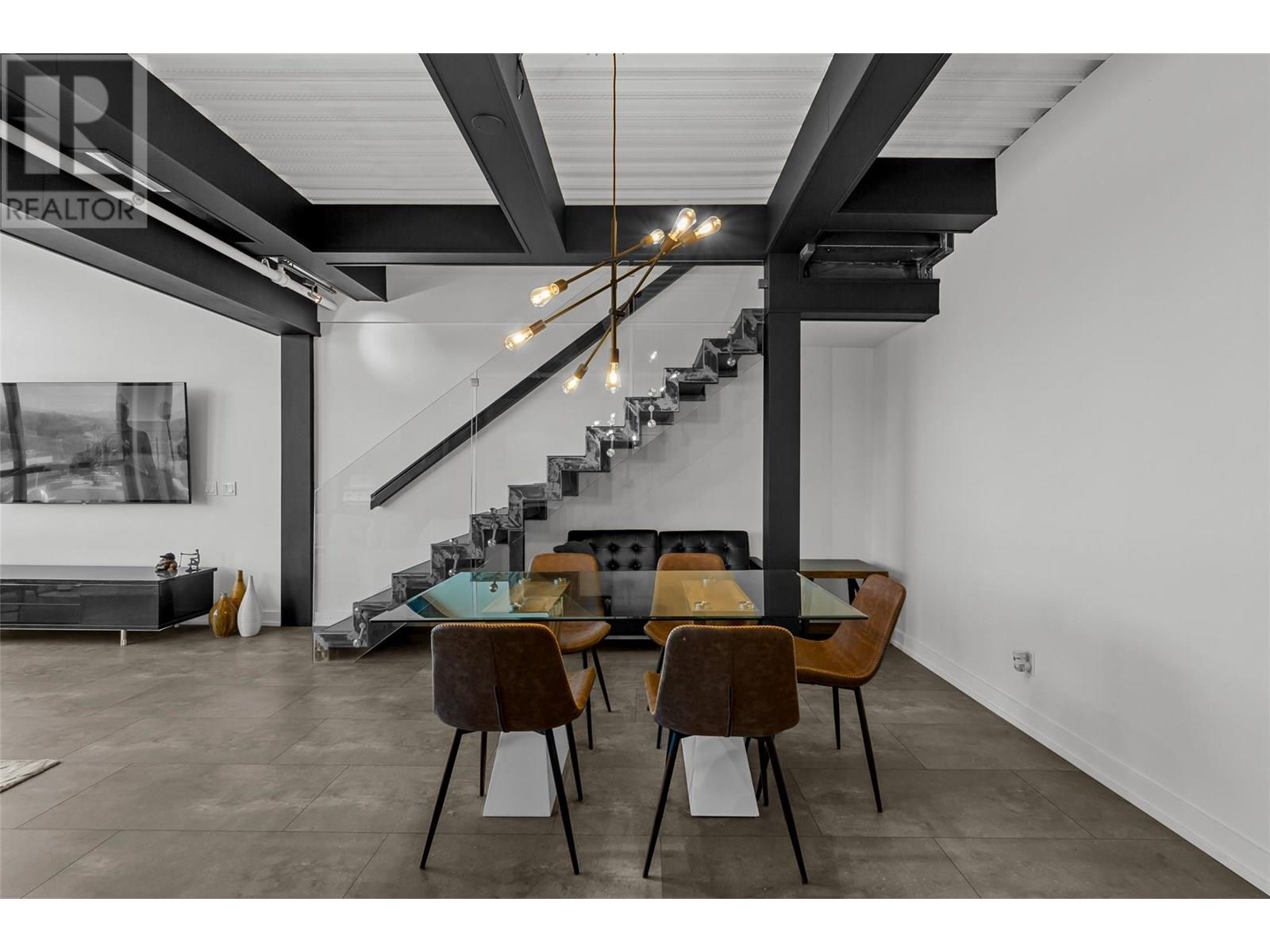 Discover Kelowna's most unique and luxurious condo—a fully renovated, lofted industrial-style masterpiece with unparalleled lake and city views. Perched atop a professional building with just five exclusive residences, this property promises an extraordinary living experience. The main floor boasts an expansive open-concept design featuring soaring high ceilings and dramatic floor-to-ceiling windows that flood the space with natural light. The stunning kitchen, equipped with top-of-the-line appliances opens to a heated, covered patio—perfect for year-round alfresco dining. Ascend to the primary retreat, where you'll be captivated by sweeping lake and city vistas. Every inch of this home has been meticulously updated with new flooring, a modern kitchen, state-of-the-art appliances, fresh paint, and elegant baseboards. This pet- and rental-friendly building offers the convenience of two large indoor parking stall. A property of this caliber must be seen to be truly appreciated. Don’t miss the opportunity to own this exceptional downtown loft and experience its unparalleled luxury and uniqueness firsthand. (id:6770)