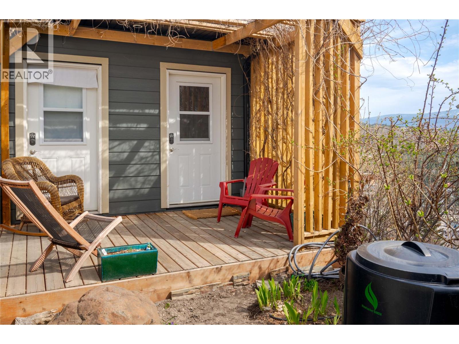 A truly special offering—this multi-residence property blends architectural quality with flexibility, revenue potential, and future development opportunities. The primary home offers over 2,600 sq. ft. of thoughtfully updated living space with new countertops, paint, new hot water tank and recently upgraded appliances. Built with energy-efficient ICF concrete walls and enhanced by a 28-panel solar system, the home stays comfortable year-round with excellent soundproofing and in-floor radiant heat. Hardwood and slate flooring, gas fireplace, and quality finishings add to the overall appeal. Completely separate from the main home, the secondary residence functions like a stand-alone house offering 1386 square feet of living space. Vaulted ceilings, open-concept design, and a spacious loft create a light-filled living experience with privacy and character. This space has always rented at a premium and is fully legal with the City—ideal for long-term tenants, guests, or a high-performing Airbnb. A double garage with divided bays and additional storage adds further versatility. Together, both residences generate strong monthly income, making this property a smart investment or multi-generational living solution. Set in a quiet, established area with stunning views nearby, there’s also exciting development potential—whether adding a third dwelling or expanding the existing structures. A legacy property offering lifestyle, income, and long-term value. (id:6770)