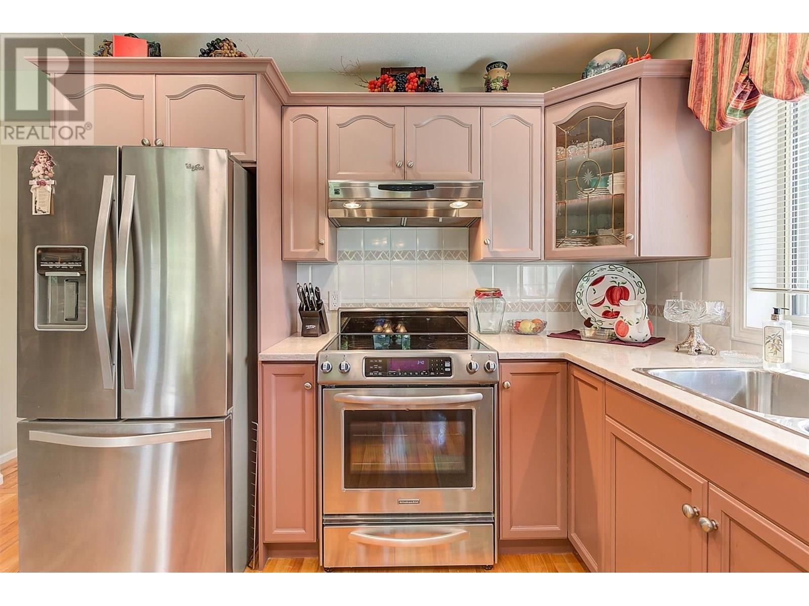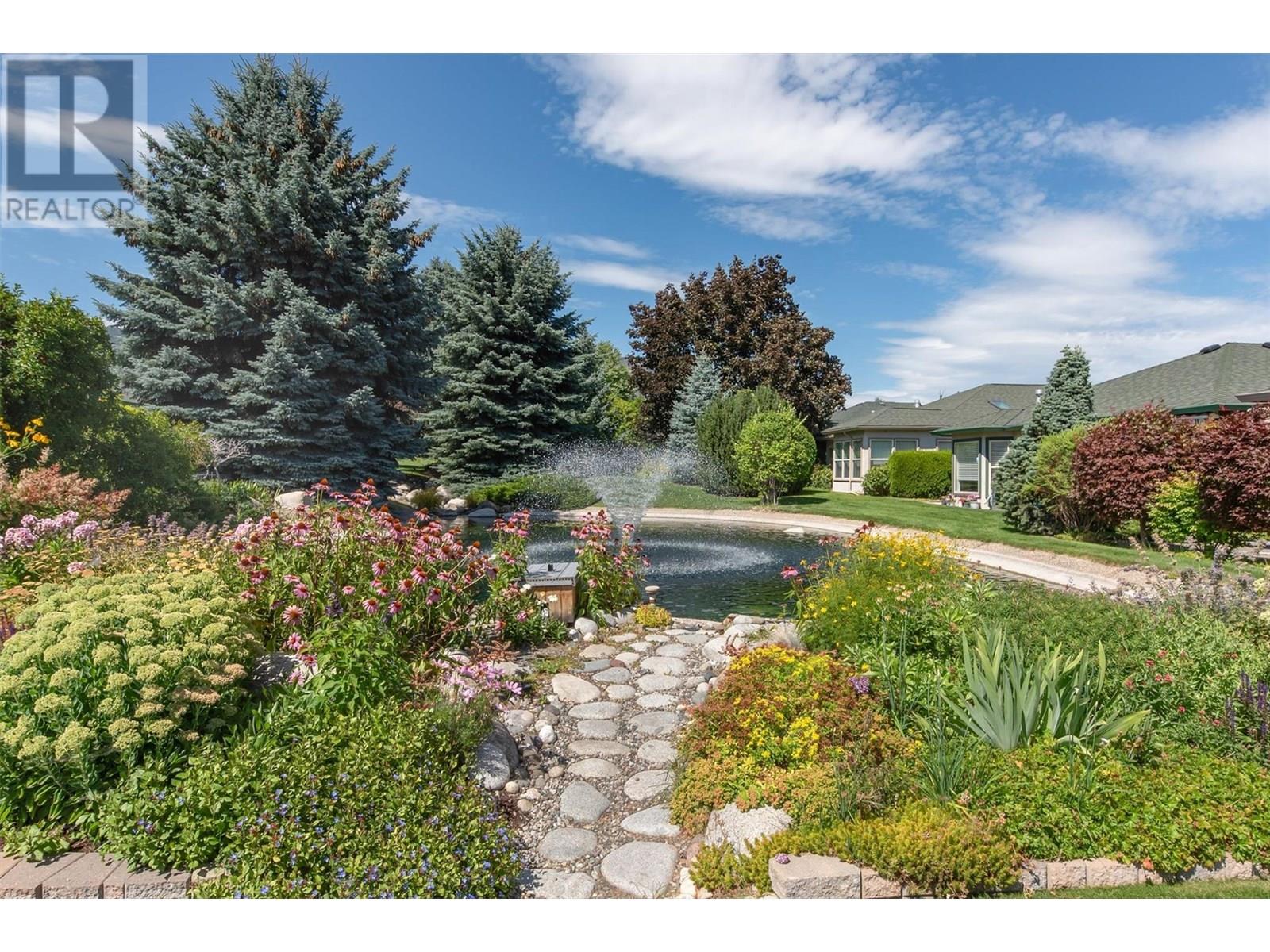 Most sought after location in desirable Sun Village (45 plus) this gorgeous home has a beautiful water feature on one side and another out back. The outdoor space has a covered oversized patio, lovely grassed area and fabulous gardens. The interior is 1,590 sq.ft., two bedrooms. two baths with a formal living room with gas fireplace, dining room, updated kitchen with eating area and adjoining family room with cozy gas fireplace. Sliding doors off the family room lead to the peaceful outdoor area. The Primary Bedroom is spacious with a large walk-in closet and adjoining ensuite. There is a second bedroom and additional bathroom with a safestep tub (approx cost $28,000 2023). The laundry room has a newer washer/dryer and laundry sink. The attached two car garage with room for two additional cars on the driveway and available rv parking make this home very desirable! Some updates include new furnace/ac ($9,000 - 2019), newer hot water tank ($2,200 - 2022), newer countertops ($5,500 - 2021) and wood floors. Appliances included. Built-in Vac and Alarm system. Home is built on a crawl space so plenty of storage. Lease has not been paid. Monthly Lease is $347.27 and Strata Fees are $354.70. Pets are welcome (2 dogs up to 20"" at shoulder). (id:6770)