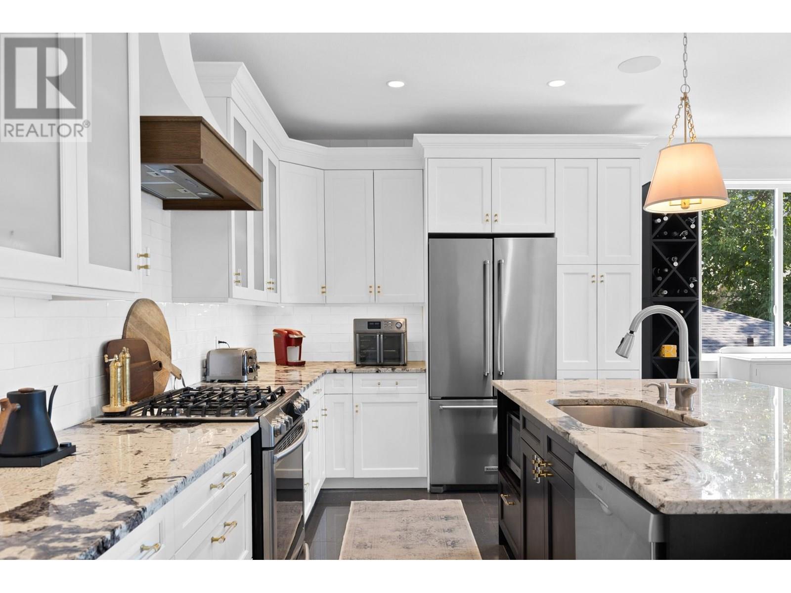 A fantastic opportunity to own a centrally located property in the heart of Kelowna, offering incredible flexibility for investors, families, or those seeking mortgage helpers. This property features three distinct living spaces, making it ideal as a full investment property with strong rental income or as a primary residence with space for extended family or tenants. The upper level of the main home offers 3 bedrooms and 2 bathrooms, with an open-concept kitchen, living and dining area, a designated laundry room, and a covered deck. The lower level includes a flex room with potential as a guest bedroom or recreation room, a full bathroom, and a double garage with epoxy flooring. A separate 2-bedroom, 1-bathroom in-law suite provides excellent accommodation for renters or extended family. At the rear of the property, down a beautifully finished concrete driveway, you'll find a well-designed 1-bedroom, 1-bathroom carriage house with a main-level office/flex space and a large double garage, currently shared between suite and carriage tenants. The entire property features high-end finishes throughout, including hardwood and tile flooring, granite countertops, and quality appliances in every space. Its central location near downtown, the hospital, and major routes offers excellent convenience and consistently strong rental demand. Zoned MF1, the property also offers future development potential, making it an ideal holding property while generating impressive rental income. (id:6770)