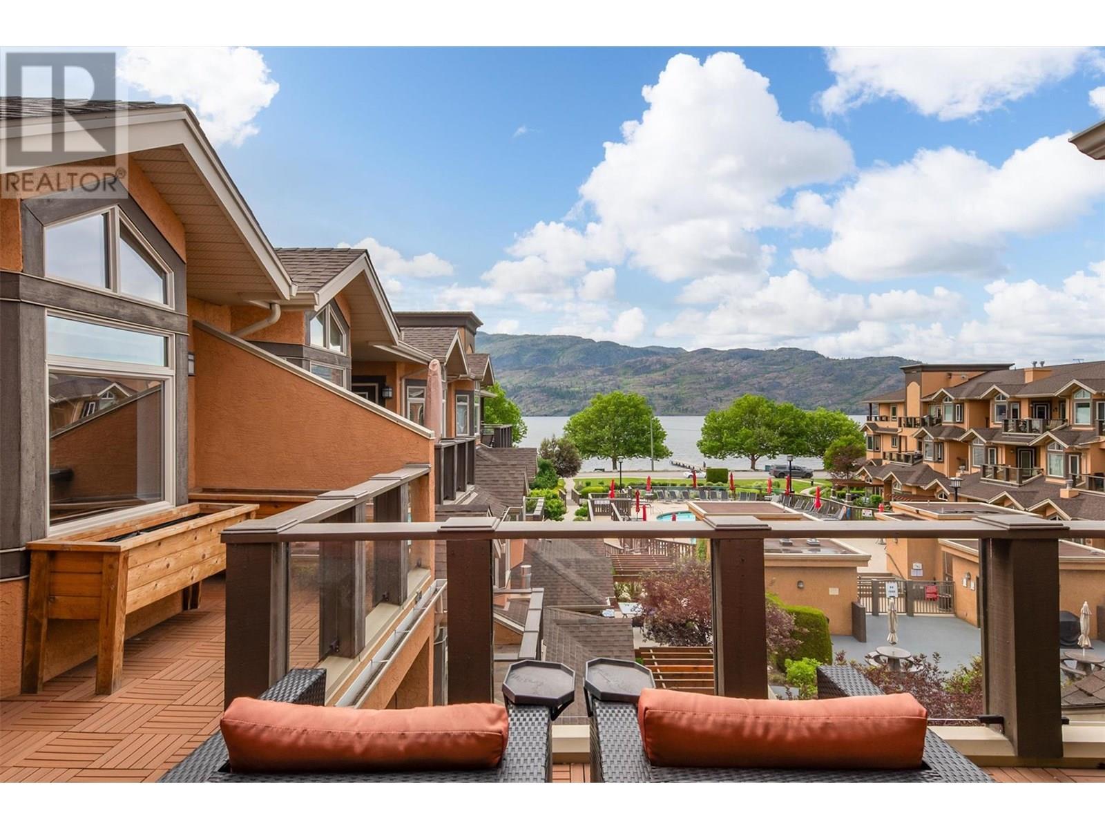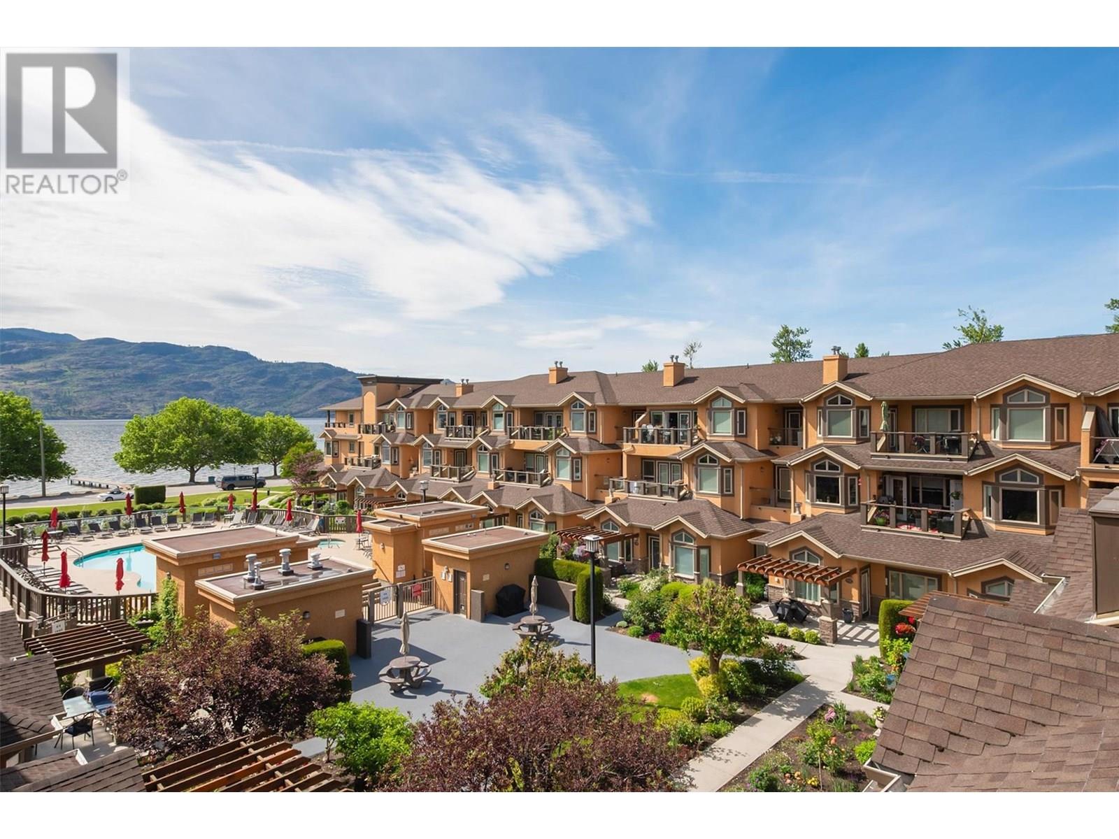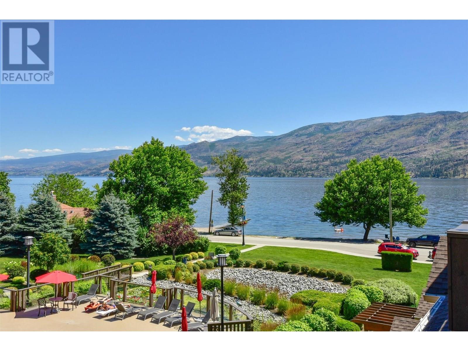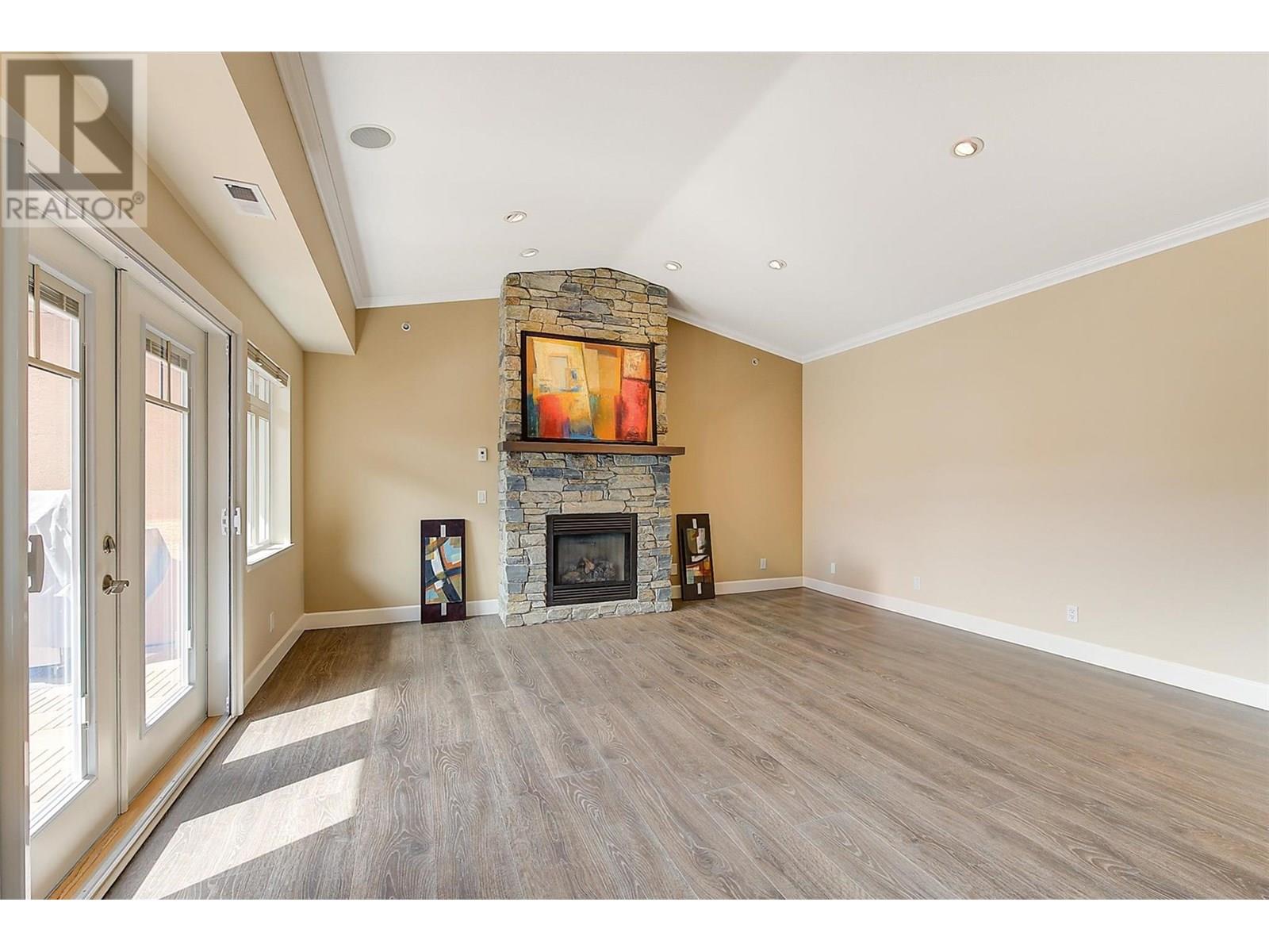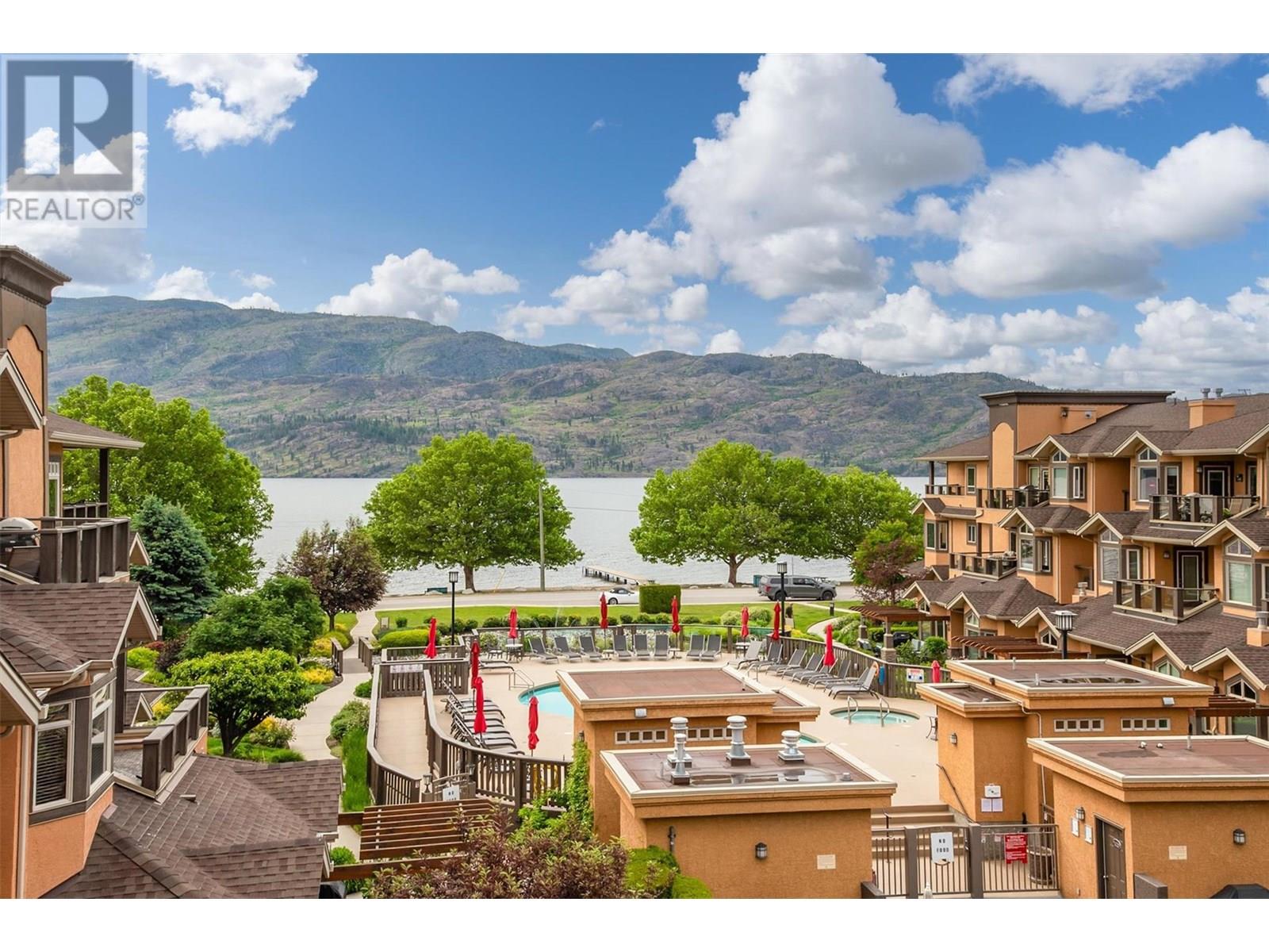 Experience the pinnacle of lakeside luxury in this fully renovated top-floor penthouse at Lakeshore Gardens. Spanning 1,748 square feet, this 3-bedroom, 2-bath retreat offers sweeping views of the lake, pool, and gardens from an oversized double-deck balcony. Inside, vaulted ceilings and high-end finishes create an ambiance of elegance and comfort. The gourmet kitchen is a chef’s dream, outfitted with granite countertops, custom soft-close cabinetry, pull-out drawers, and a premium gas range. In the living room, a striking floor-to-ceiling gas fireplace serves as the centrepiece, while stylish vinyl-coated laminate flooring, luxe tile in the bathrooms, and plush carpeting in the bedrooms add warmth throughout. The primary suite is a private haven with a walk-in closet and spa-like ensuite featuring quartz countertops, a deep soaker tub, and a rainfall shower. A brand-new heat pump, installed in December 2024, ensures optimal climate control year-round. Residents enjoy resort-style amenities including a heated pool, year-round hot tub, full-service gym, secure kayak and bike storage, boat launch, social hall, private storage unit, and two guest suites. Just steps from the shores of Okanagan Lake, this move-in-ready penthouse blends tranquil views with upscale living—an opportunity not to be missed. Schedule your private viewing today and step into your new lakeside lifestyle. (id:6770)