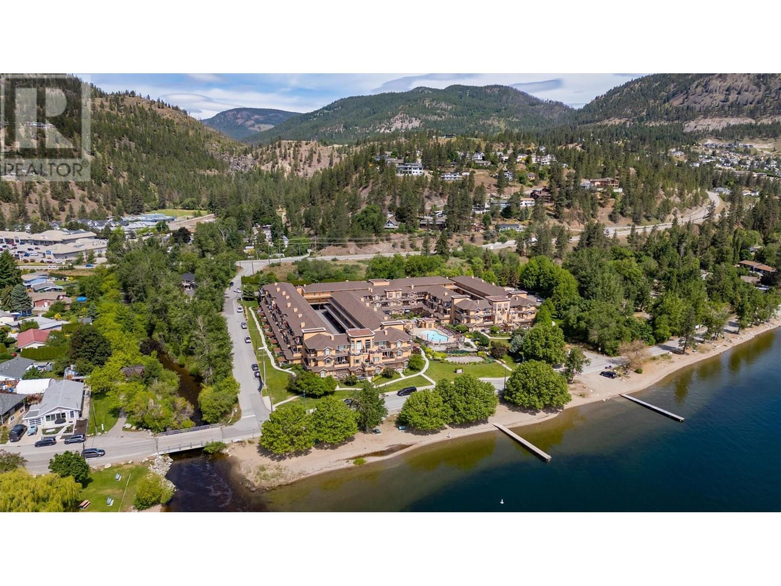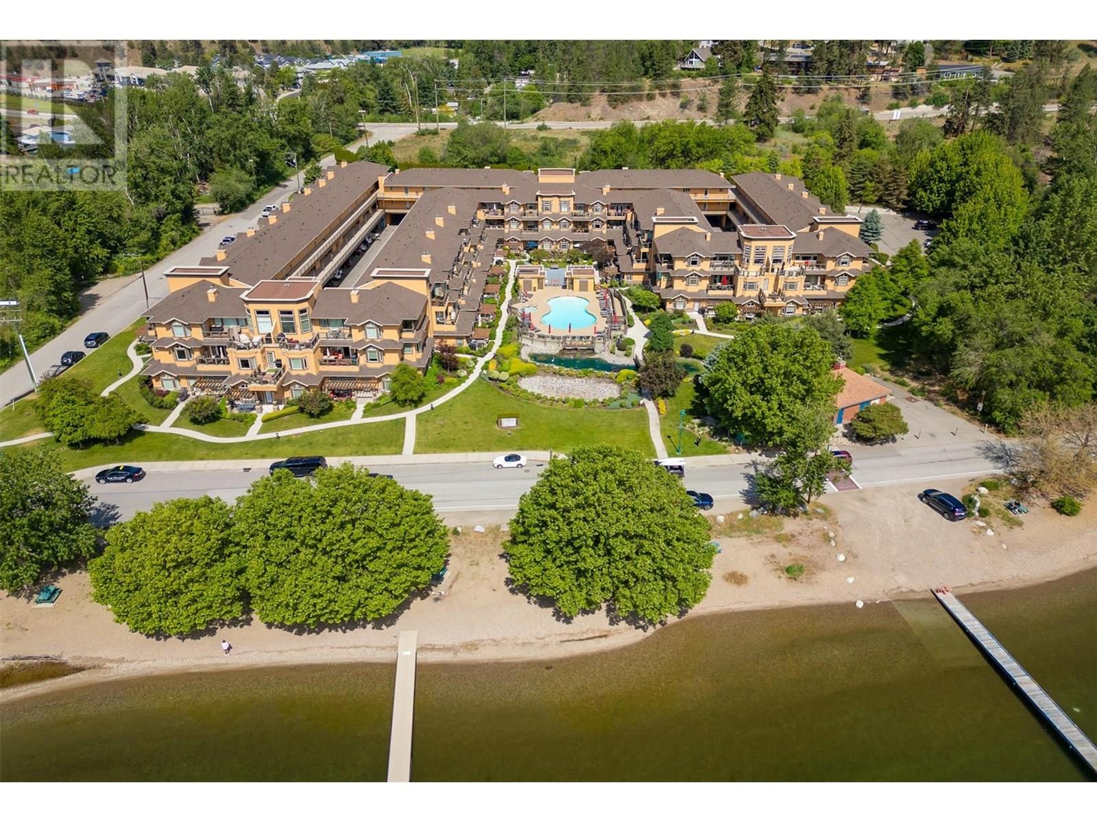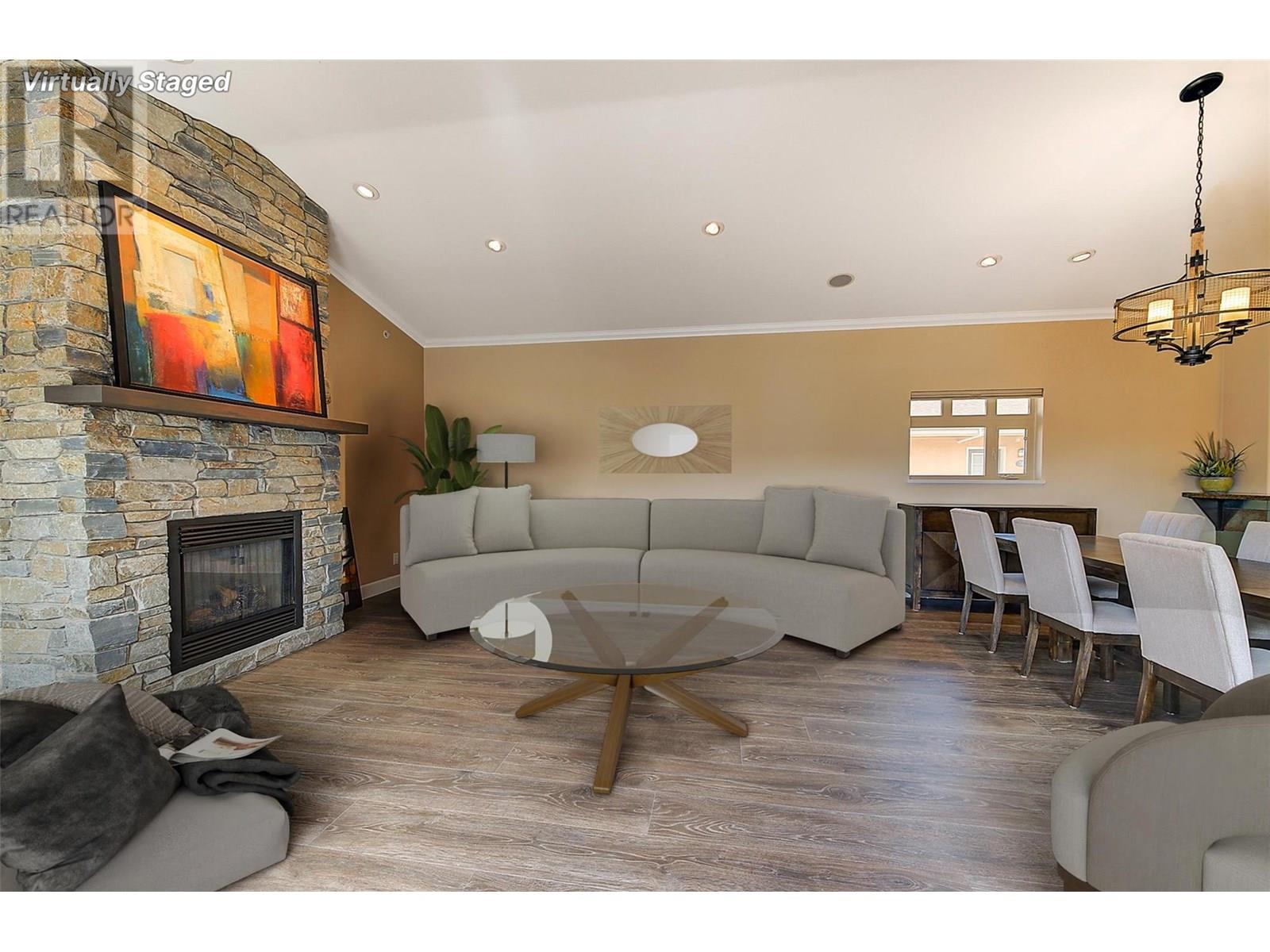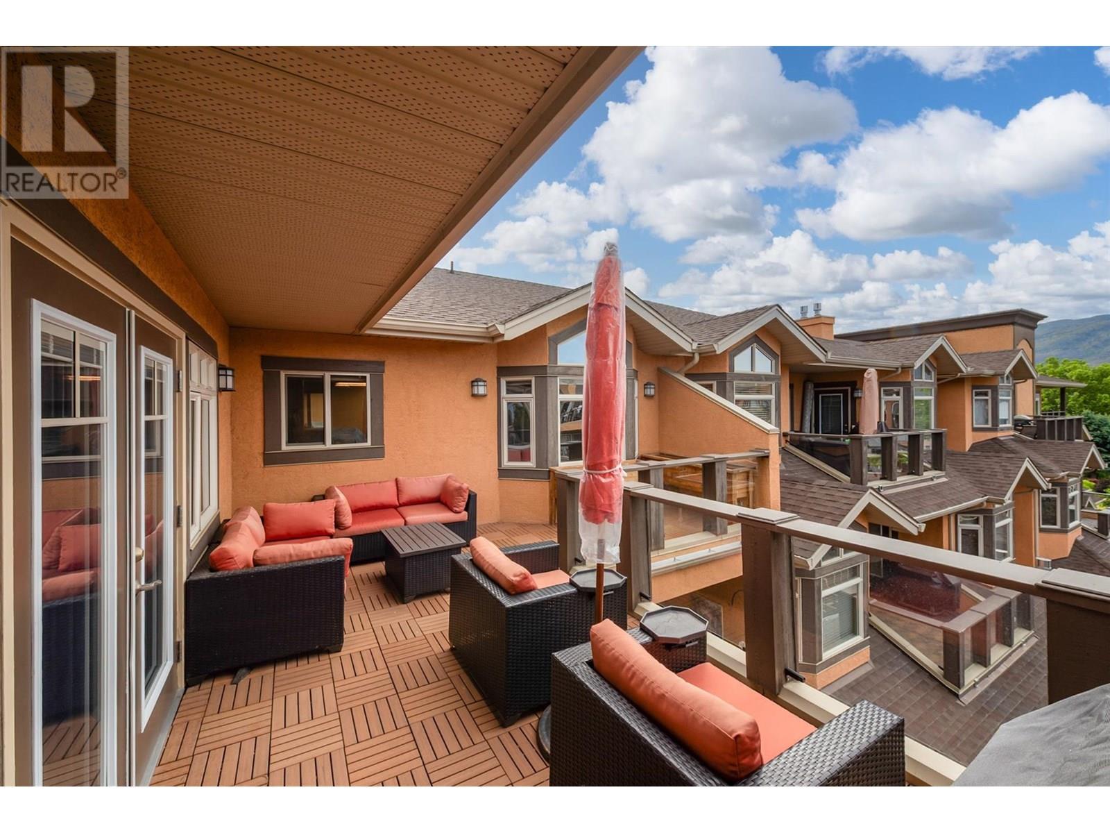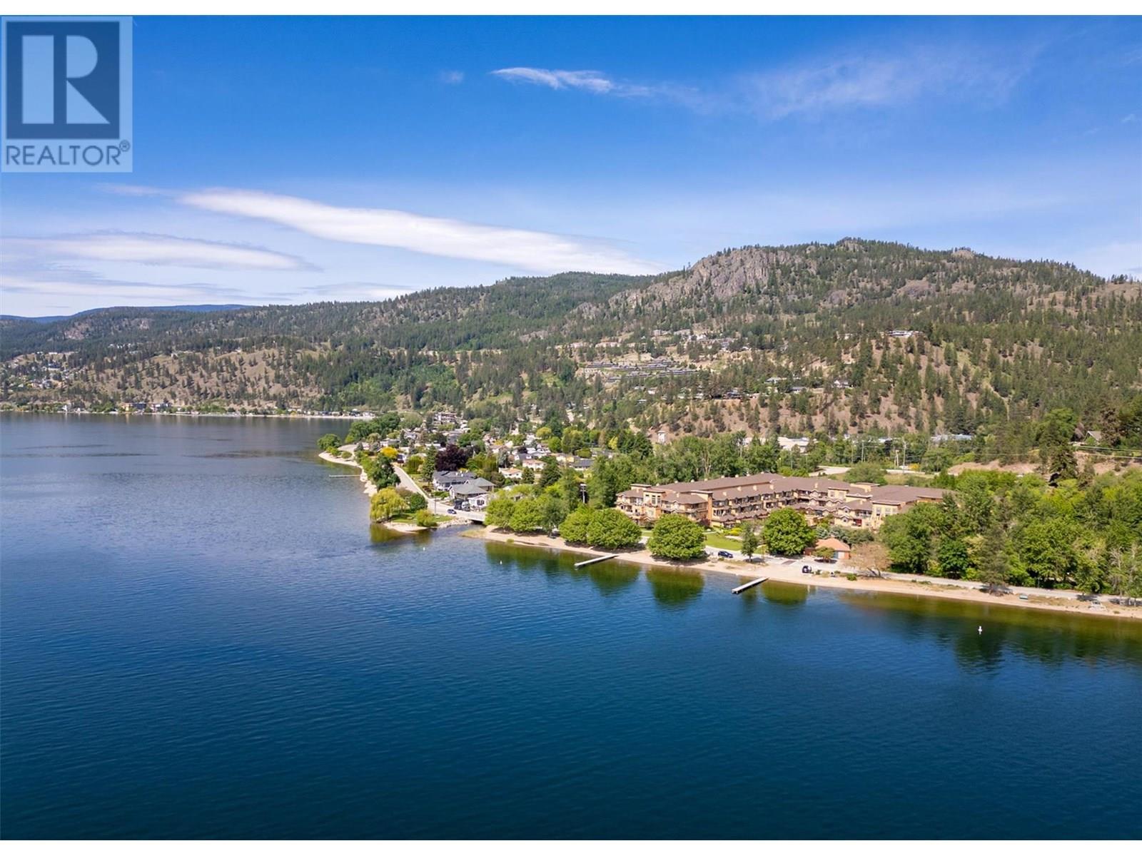 Experience the pinnacle of lakeside luxury in this fully renovated top-floor penthouse at Lakeshore Gardens. Spanning 1,748 square feet, this 3-bedroom, 2-bath retreat offers sweeping views of the lake, pool, and gardens from an oversized double-deck balcony. Inside, vaulted ceilings and high-end finishes create an ambiance of elegance and comfort. The gourmet kitchen is a chef’s dream, outfitted with granite countertops, custom soft-close cabinetry, pull-out drawers, and a premium gas range. In the living room, a striking floor-to-ceiling gas fireplace serves as the centrepiece, while stylish vinyl-coated laminate flooring, luxe tile in the bathrooms, and plush carpeting in the bedrooms add warmth throughout. The primary suite is a private haven with a walk-in closet and spa-like ensuite featuring quartz countertops, a deep soaker tub, and a rainfall shower. A brand-new heat pump, installed in December 2024, ensures optimal climate control year-round. Residents enjoy resort-style amenities including a heated pool, year-round hot tub, full-service gym, secure kayak and bike storage, boat launch, social hall, private storage unit, and two guest suites. Just steps from the shores of Okanagan Lake, this move-in-ready penthouse blends tranquil views with upscale living—an opportunity not to be missed. Schedule your private viewing today and step into your new lakeside lifestyle. (id:6770)
