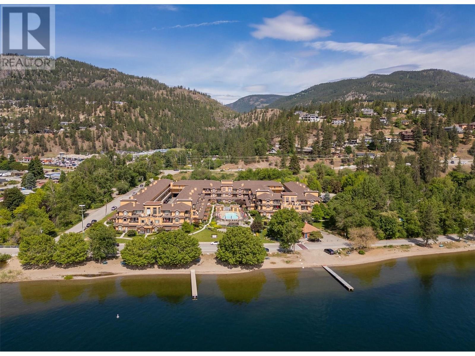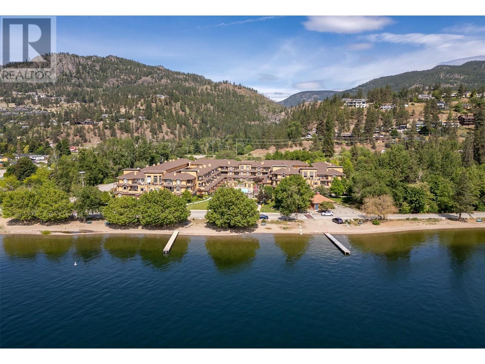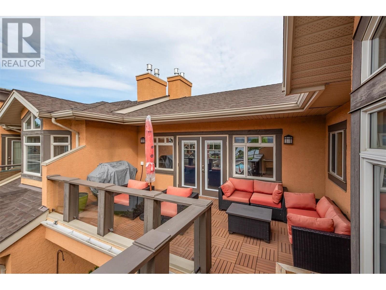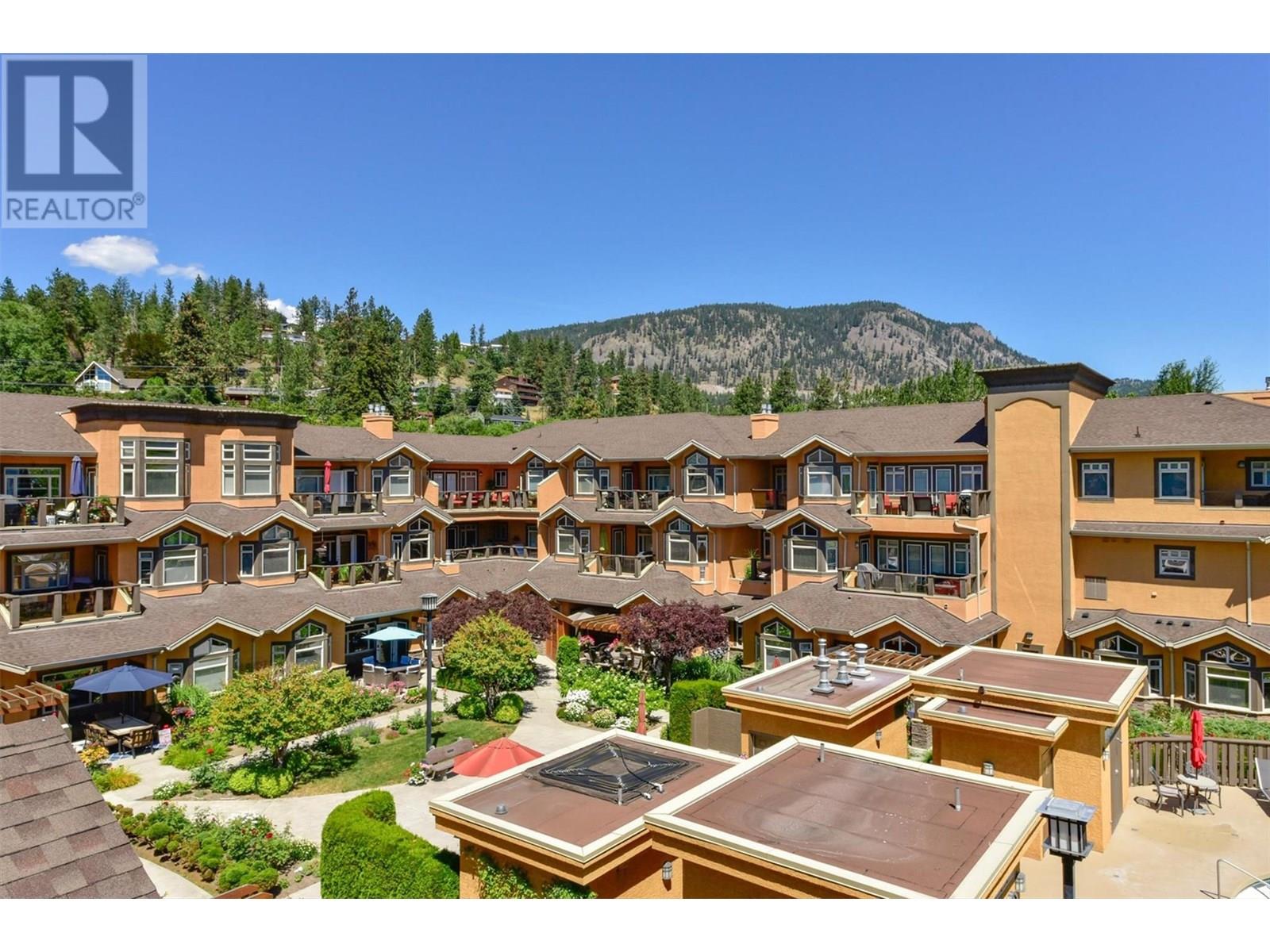 Experience the pinnacle of lakeside luxury in this fully renovated top-floor penthouse at Lakeshore Gardens. Spanning 1,748 square feet, this 3-bedroom, 2-bath retreat offers sweeping views of the lake, pool, and gardens from an oversized double-deck balcony. Inside, vaulted ceilings and high-end finishes create an ambiance of elegance and comfort. The gourmet kitchen is a chef’s dream, outfitted with granite countertops, custom soft-close cabinetry, pull-out drawers, and a premium gas range. In the living room, a striking floor-to-ceiling gas fireplace serves as the centrepiece, while stylish vinyl-coated laminate flooring, luxe tile in the bathrooms, and plush carpeting in the bedrooms add warmth throughout. The primary suite is a private haven with a walk-in closet and spa-like ensuite featuring quartz countertops, a deep soaker tub, and a rainfall shower. A brand-new heat pump, installed in December 2024, ensures optimal climate control year-round. Residents enjoy resort-style amenities including a heated pool, year-round hot tub, full-service gym, secure kayak and bike storage, boat launch, social hall, private storage unit, and two guest suites. Just steps from the shores of Okanagan Lake, this move-in-ready penthouse blends tranquil views with upscale living—an opportunity not to be missed. Schedule your private viewing today and step into your new lakeside lifestyle. (id:6770)