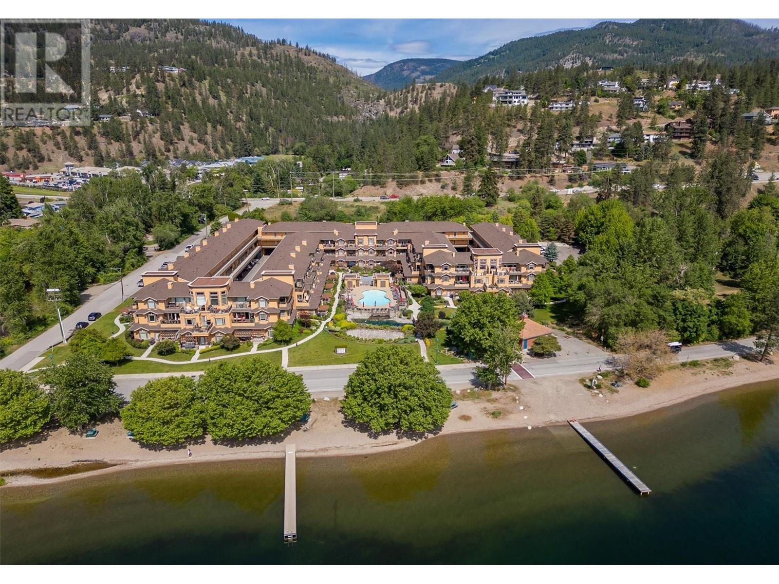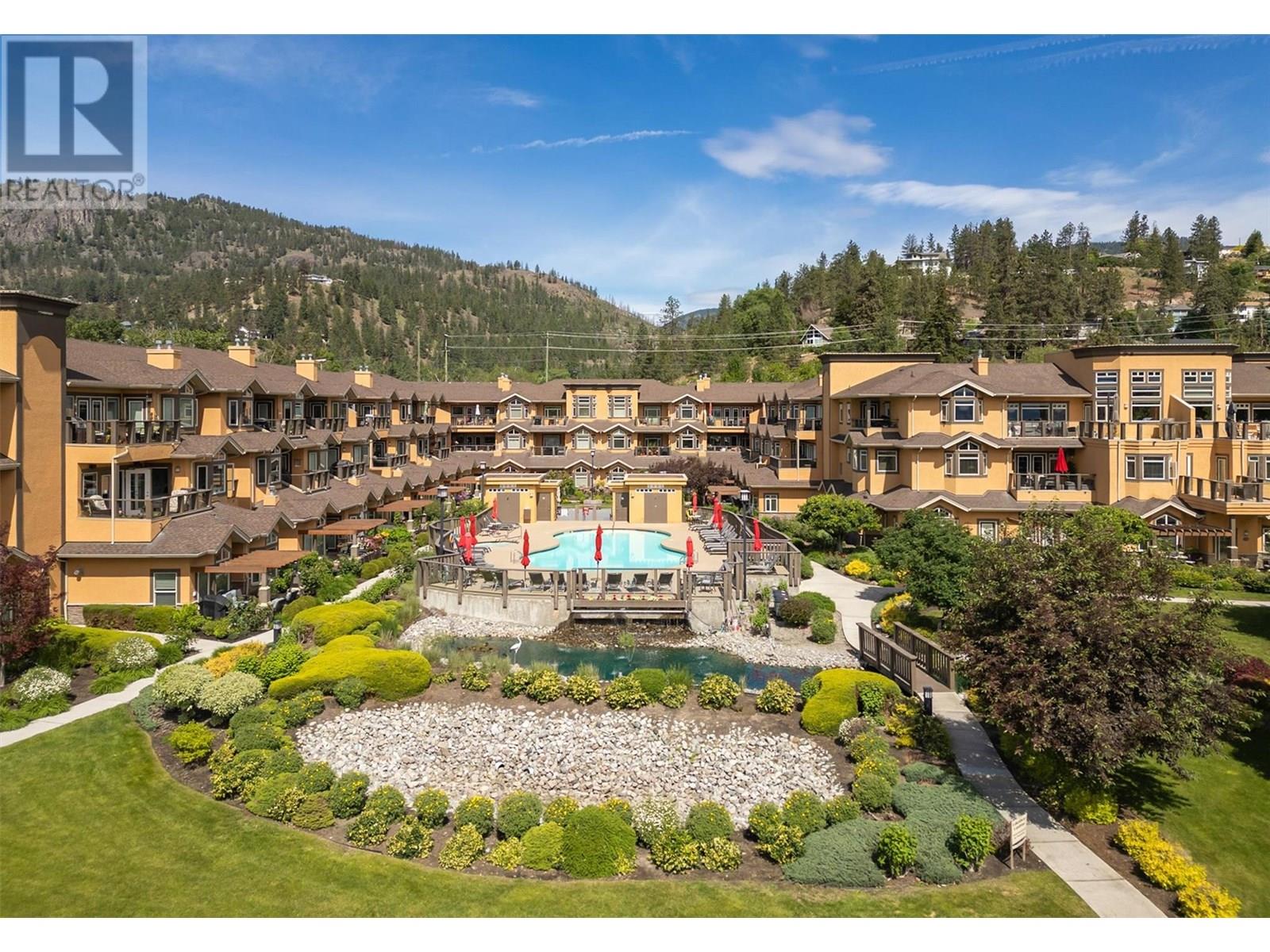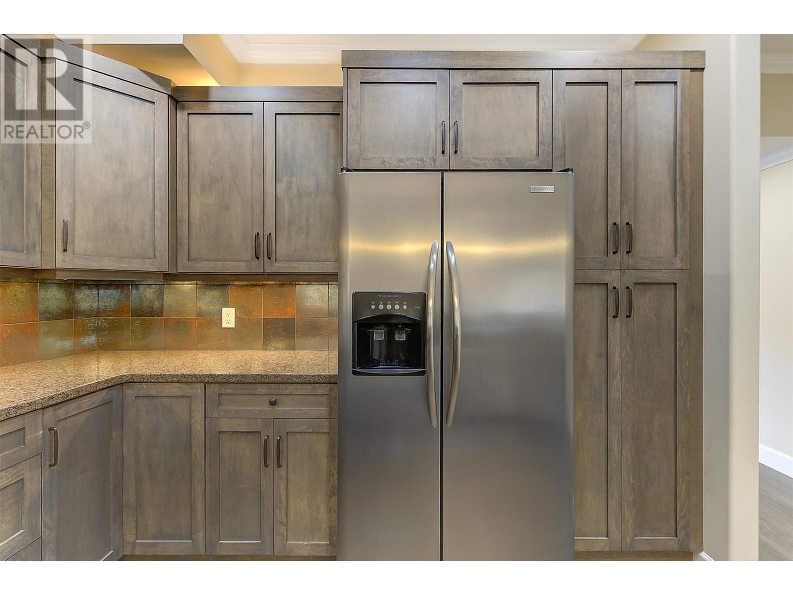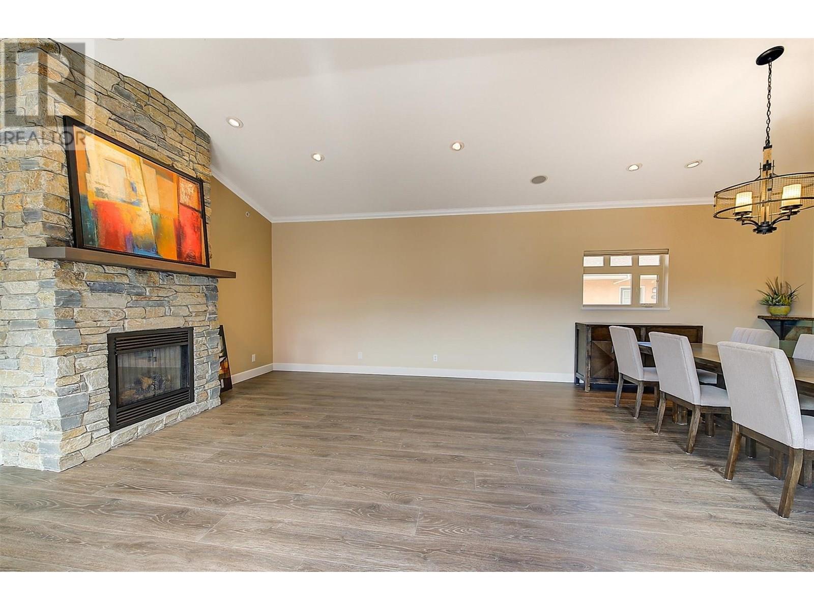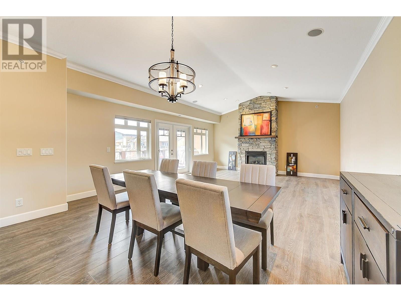 Experience the pinnacle of lakeside luxury in this fully renovated top-floor penthouse at Lakeshore Gardens. Spanning 1,748 square feet, this 3-bedroom, 2-bath retreat offers sweeping views of the lake, pool, and gardens from an oversized double-deck balcony. Inside, vaulted ceilings and high-end finishes create an ambiance of elegance and comfort. The gourmet kitchen is a chef’s dream, outfitted with granite countertops, custom soft-close cabinetry, pull-out drawers, and a premium gas range. In the living room, a striking floor-to-ceiling gas fireplace serves as the centrepiece, while stylish vinyl-coated laminate flooring, luxe tile in the bathrooms, and plush carpeting in the bedrooms add warmth throughout. The primary suite is a private haven with a walk-in closet and spa-like ensuite featuring quartz countertops, a deep soaker tub, and a rainfall shower. A brand-new heat pump, installed in December 2024, ensures optimal climate control year-round. Residents enjoy resort-style amenities including a heated pool, year-round hot tub, full-service gym, secure kayak and bike storage, boat launch, social hall, private storage unit, and two guest suites. Just steps from the shores of Okanagan Lake, this move-in-ready penthouse blends tranquil views with upscale living—an opportunity not to be missed. Schedule your private viewing today and step into your new lakeside lifestyle. (id:6770)