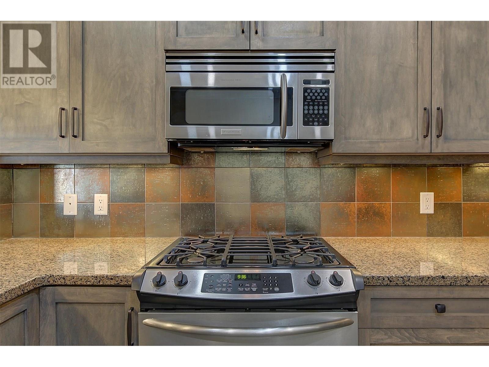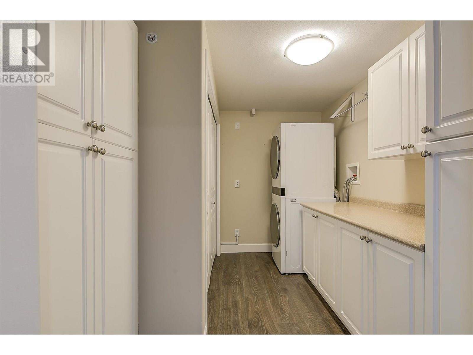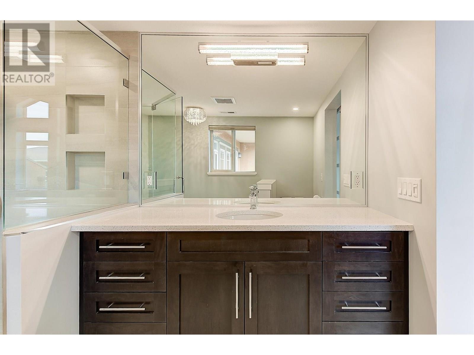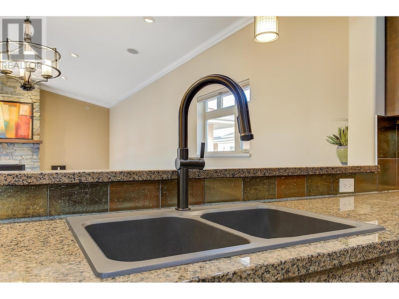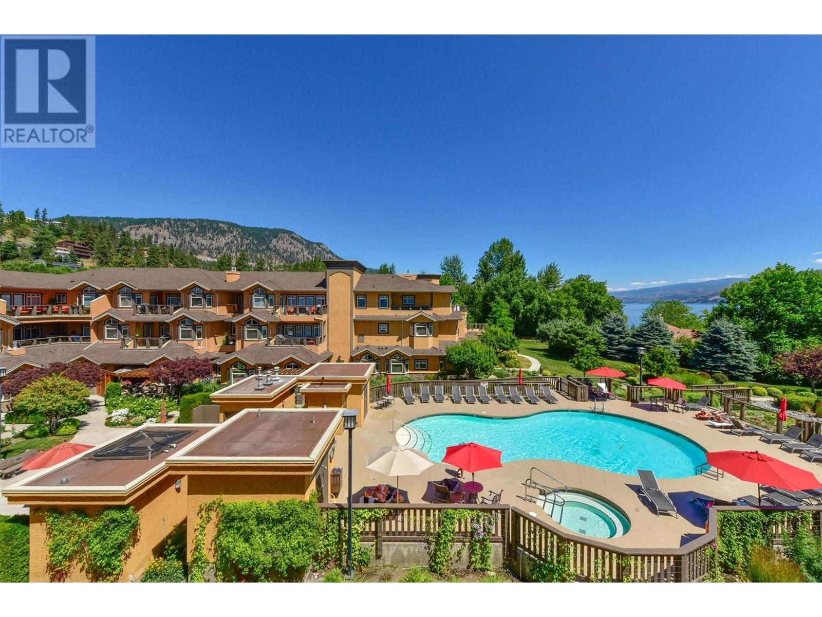 Experience the pinnacle of lakeside luxury in this fully renovated top-floor penthouse at Lakeshore Gardens. Spanning 1,748 square feet, this 3-bedroom, 2-bath retreat offers sweeping views of the lake, pool, and gardens from an oversized double-deck balcony. Inside, vaulted ceilings and high-end finishes create an ambiance of elegance and comfort. The gourmet kitchen is a chef’s dream, outfitted with granite countertops, custom soft-close cabinetry, pull-out drawers, and a premium gas range. In the living room, a striking floor-to-ceiling gas fireplace serves as the centrepiece, while stylish vinyl-coated laminate flooring, luxe tile in the bathrooms, and plush carpeting in the bedrooms add warmth throughout. The primary suite is a private haven with a walk-in closet and spa-like ensuite featuring quartz countertops, a deep soaker tub, and a rainfall shower. A brand-new heat pump, installed in December 2024, ensures optimal climate control year-round. Residents enjoy resort-style amenities including a heated pool, year-round hot tub, full-service gym, secure kayak and bike storage, boat launch, social hall, private storage unit, and two guest suites. Just steps from the shores of Okanagan Lake, this move-in-ready penthouse blends tranquil views with upscale living—an opportunity not to be missed. Schedule your private viewing today and step into your new lakeside lifestyle. (id:6770)