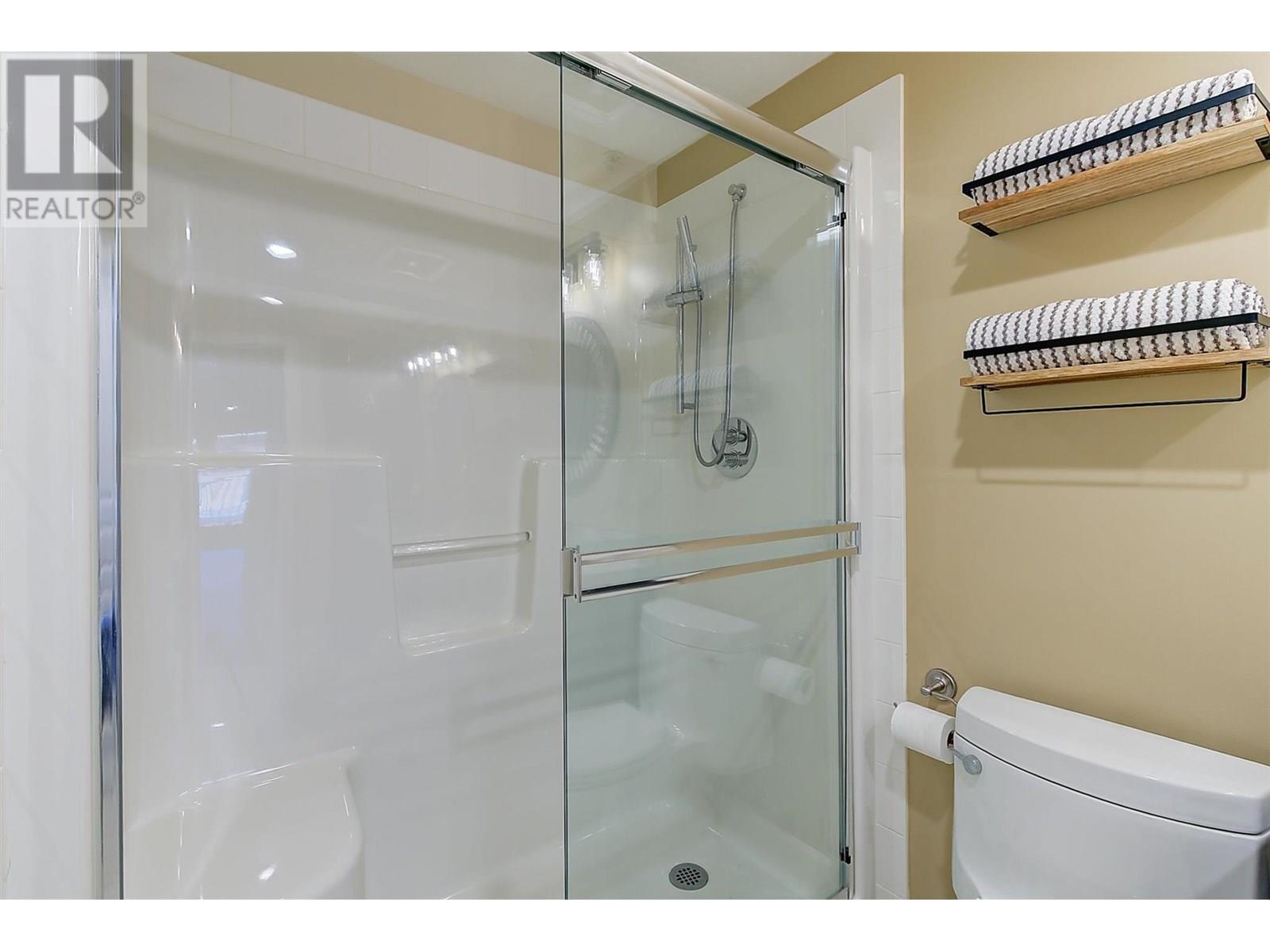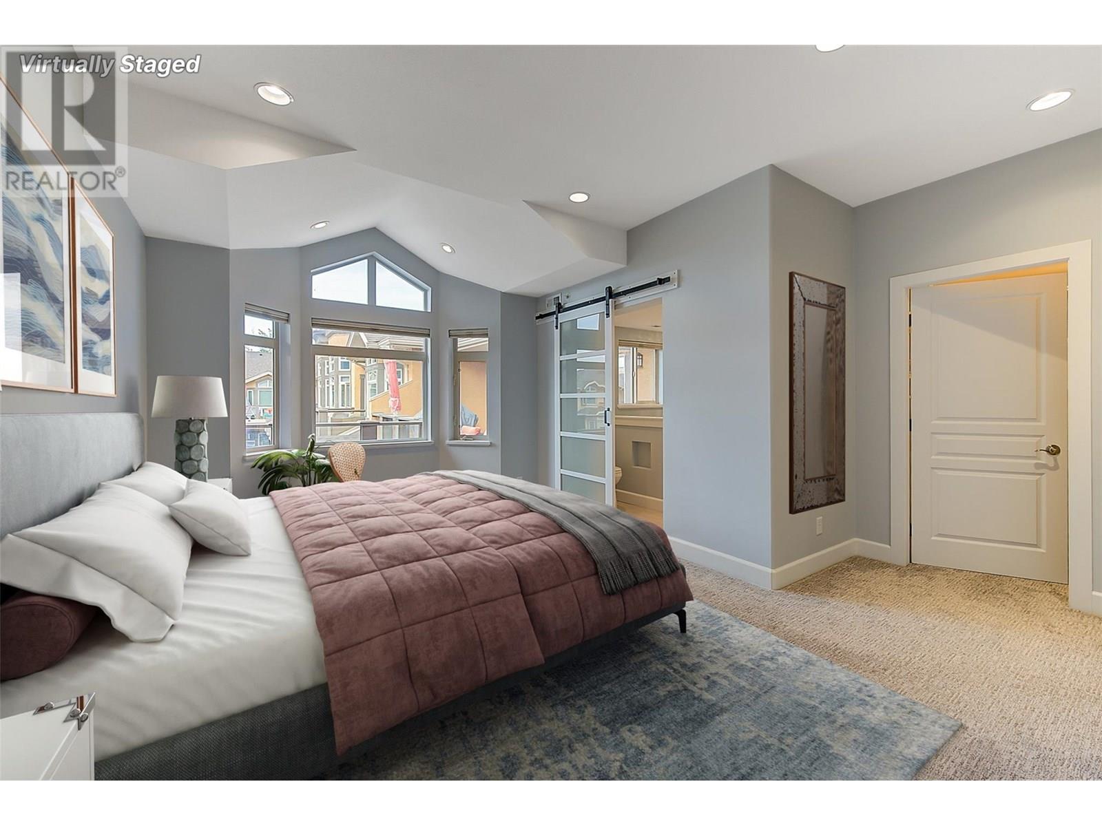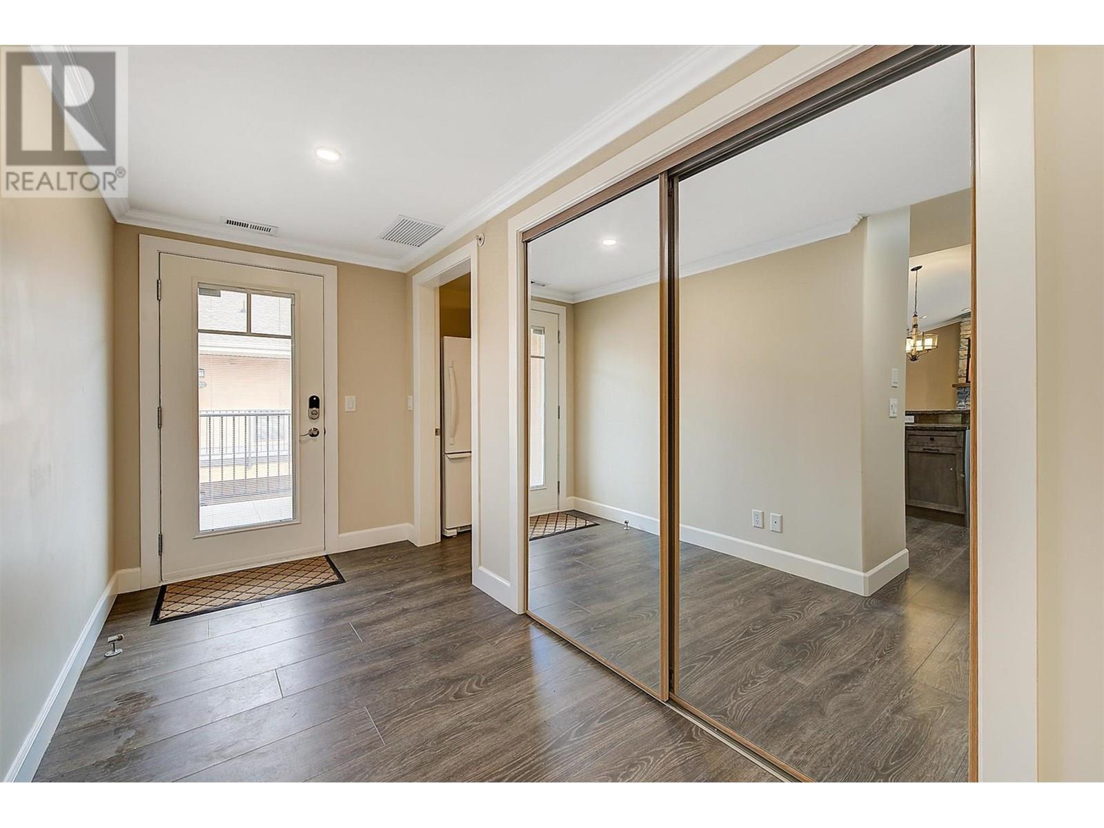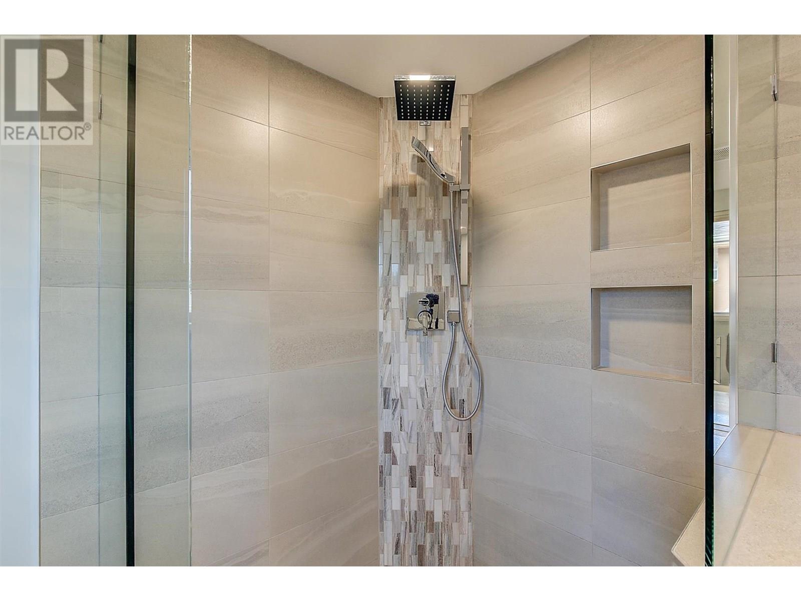 Experience the pinnacle of lakeside luxury in this fully renovated top-floor penthouse at Lakeshore Gardens. Spanning 1,748 square feet, this 3-bedroom, 2-bath retreat offers sweeping views of the lake, pool, and gardens from an oversized double-deck balcony. Inside, vaulted ceilings and high-end finishes create an ambiance of elegance and comfort. The gourmet kitchen is a chef’s dream, outfitted with granite countertops, custom soft-close cabinetry, pull-out drawers, and a premium gas range. In the living room, a striking floor-to-ceiling gas fireplace serves as the centrepiece, while stylish vinyl-coated laminate flooring, luxe tile in the bathrooms, and plush carpeting in the bedrooms add warmth throughout. The primary suite is a private haven with a walk-in closet and spa-like ensuite featuring quartz countertops, a deep soaker tub, and a rainfall shower. A brand-new heat pump, installed in December 2024, ensures optimal climate control year-round. Residents enjoy resort-style amenities including a heated pool, year-round hot tub, full-service gym, secure kayak and bike storage, boat launch, social hall, private storage unit, and two guest suites. Just steps from the shores of Okanagan Lake, this move-in-ready penthouse blends tranquil views with upscale living—an opportunity not to be missed. Schedule your private viewing today and step into your new lakeside lifestyle. (id:6770)