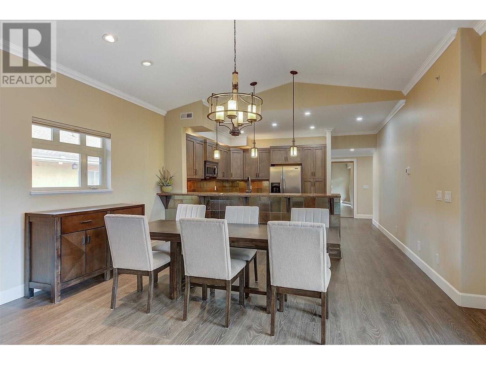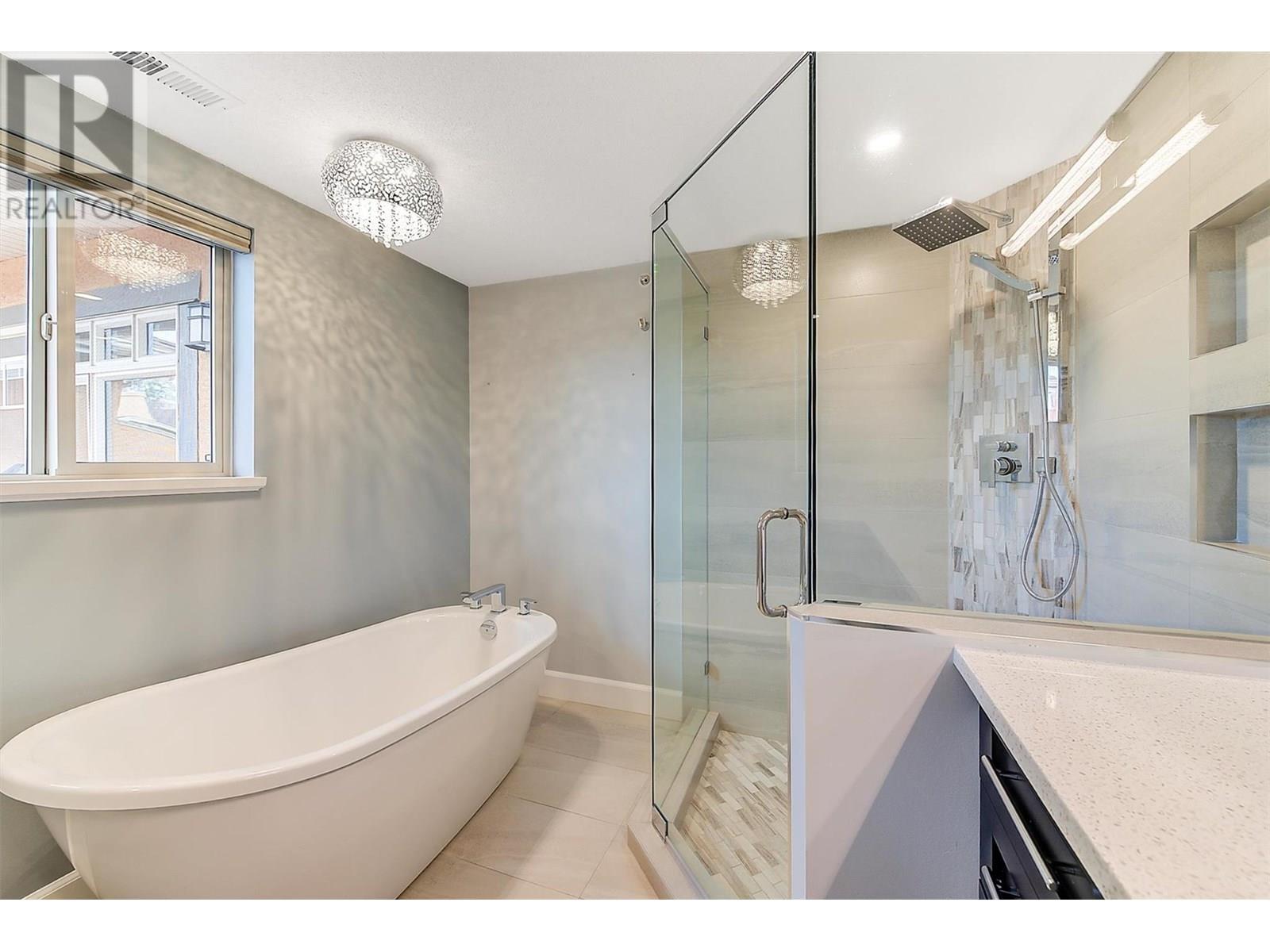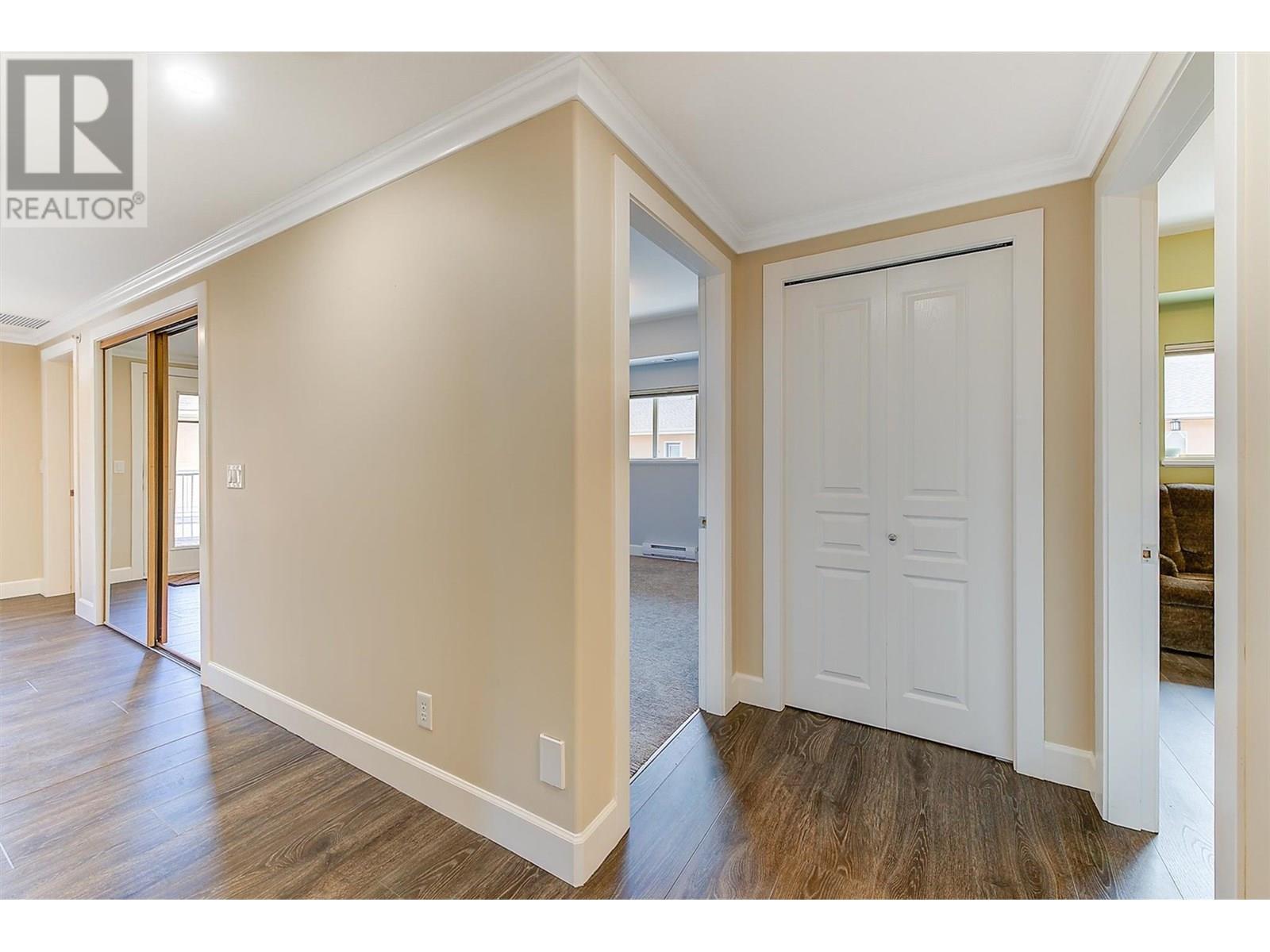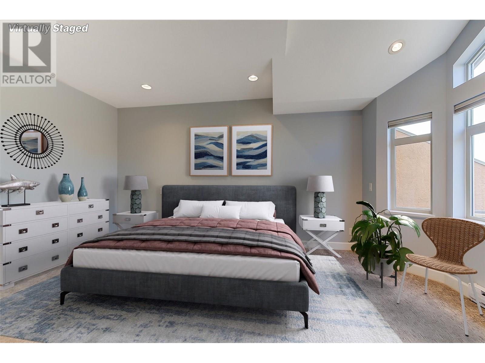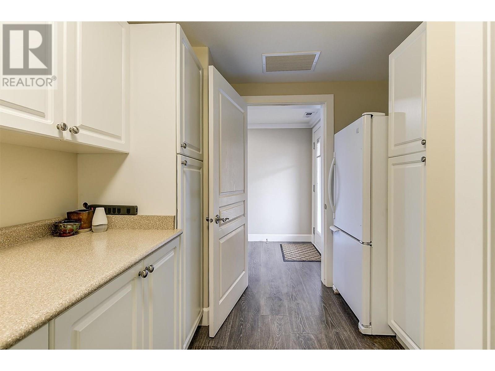 Experience the pinnacle of lakeside luxury in this fully renovated top-floor penthouse at Lakeshore Gardens. Spanning 1,748 square feet, this 3-bedroom, 2-bath retreat offers sweeping views of the lake, pool, and gardens from an oversized double-deck balcony. Inside, vaulted ceilings and high-end finishes create an ambiance of elegance and comfort. The gourmet kitchen is a chef’s dream, outfitted with granite countertops, custom soft-close cabinetry, pull-out drawers, and a premium gas range. In the living room, a striking floor-to-ceiling gas fireplace serves as the centrepiece, while stylish vinyl-coated laminate flooring, luxe tile in the bathrooms, and plush carpeting in the bedrooms add warmth throughout. The primary suite is a private haven with a walk-in closet and spa-like ensuite featuring quartz countertops, a deep soaker tub, and a rainfall shower. A brand-new heat pump, installed in December 2024, ensures optimal climate control year-round. Residents enjoy resort-style amenities including a heated pool, year-round hot tub, full-service gym, secure kayak and bike storage, boat launch, social hall, private storage unit, and two guest suites. Just steps from the shores of Okanagan Lake, this move-in-ready penthouse blends tranquil views with upscale living—an opportunity not to be missed. Schedule your private viewing today and step into your new lakeside lifestyle. (id:6770)