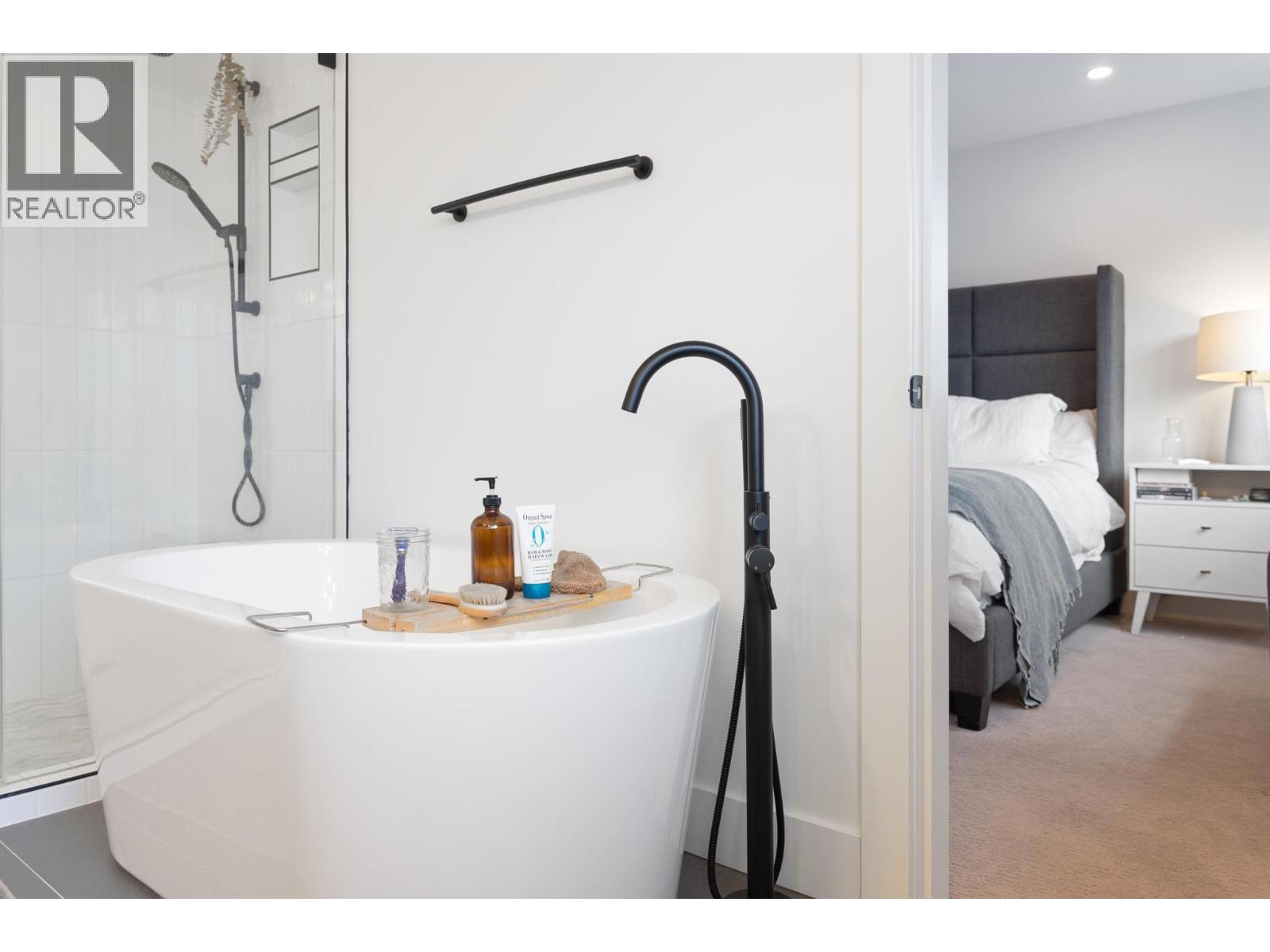 Experience modern living in this stunning 4-bedroom 3-bathroom home featuring high-end finishes and thoughtful design. Enjoy the warmth of engineered hardwood throughout most of the home, with cozy carpet in the bedrooms and sleek tile in the bathrooms. The open-concept island kitchen is equipped with a gas stove, refrigerator, dishwasher, and ample storage, while a built-in wet bar in the living room makes entertaining a breeze. Stay comfortable year-round with a gas fireplace, and soak up the Okanagan sun from the rooftop patio or fully fenced backyard. Upstairs, the spacious primary suite boasts a walk-in closet and a luxurious ensuite with heated tile floors, dual sinks, dual shower heads, and free standing soaker tub, plus 2 additional bedrooms and another full bathroom with dual sink vanity. The laundry is also located upstairs for added convenience. The garage is currently set up as a home gym, offering versatile use. Conveniently located within walking distance to the South Pandosy shops, the beach, Okanagan College, with the bike path right outside your front door. Don't miss out on this exceptional home! (id:6770)