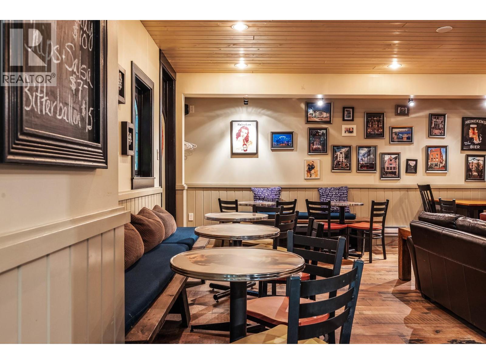 SILVER STAR RESORT – A rare opportunity to acquire The Bulldog Hotel, a true Village landmark in an unbeatable slope-side location! Set on 0.52 acres in the heart of the colourful Victorian-inspired Village, this cozy lodge offers unrivaled ski-in/ski-out convenience just steps from the gondola. The two-story building with full basement encompasses four distinct operations: Hotel accommodations, Restaurant/Lounge, Wine Cellar/Sports Bar, and Laundry. Plans will also include a bakery! Guests are comfortably welcomed in 26 well-appointed rooms (4 currently secured for staff housing). The licensed restaurant/lounge spans approx. 3,720 sq ft, plus an additional 900 sq ft open-air deck, accommodating up to 165 patrons for après-ski dining and entertainment. On the lower level, the 1,200 sq ft DeVine Wine Cellar offers an intimate setting for 30 guests in a freshly updated alpine-style atmosphere, perfect for private events or relaxed gatherings. This level also features ski lockers, bike storage, washrooms, the proposed bakery space, staff room, walk-in cooler, and laundry facilities, which currently provide services to other neighbouring Village businesses. (id:6770)