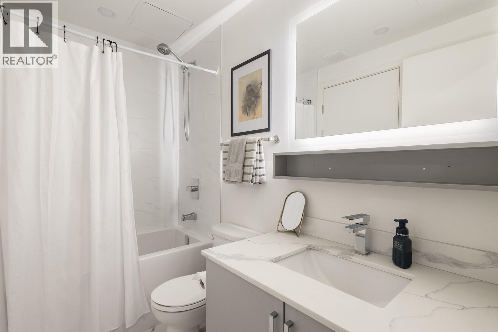 Your dream condo with a private entrance and a massive patio? Yes, it actually exists. Welcome to a bright and intelligently designed 1-bed, 1-bath home in the exclusive Copper Beech—a prestigious boutique steel-and-concrete building with just 26 residences. Soaring ceilings, east-facing windows, and high-end finishings create a polished, sun-drenched space that feels as luxurious as it is livable. Enjoy seamless indoor-outdoor living with a rare 340 sq ft patio and your own private entry—no lobby required. The gourmet kitchen impresses with quartz countertops and backsplash, premium stainless appliances, a wine fridge, and built-in microwave. Durable vinyl plank flooring, in-suite laundry, secure underground parking and access to a newly built workout facility round out the perks. All this in a location where everything’s within reach: walk or bike downtown, to the beach, the shops, or even St. Joseph Elementary School—no car needed. Homes like this don’t come up often. Book your showing today and see what upscale urban living really feels like. (id:6770)