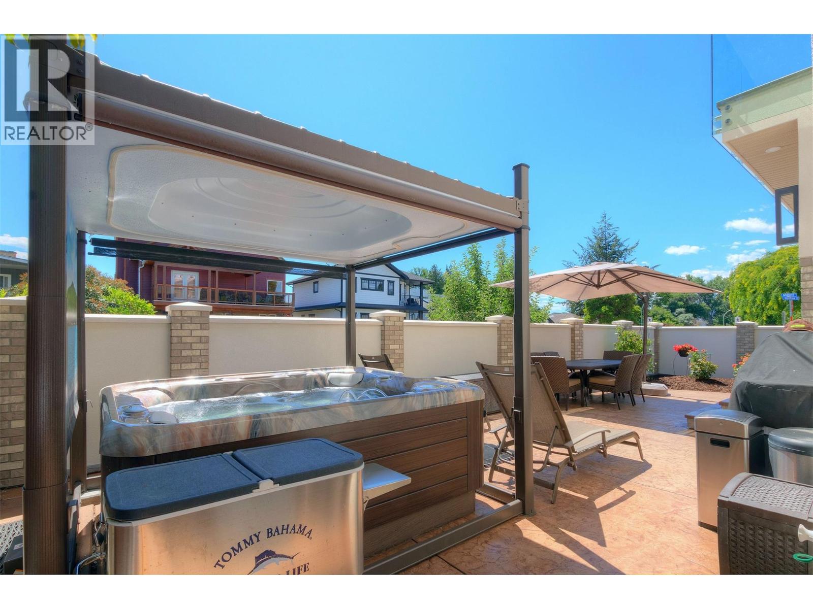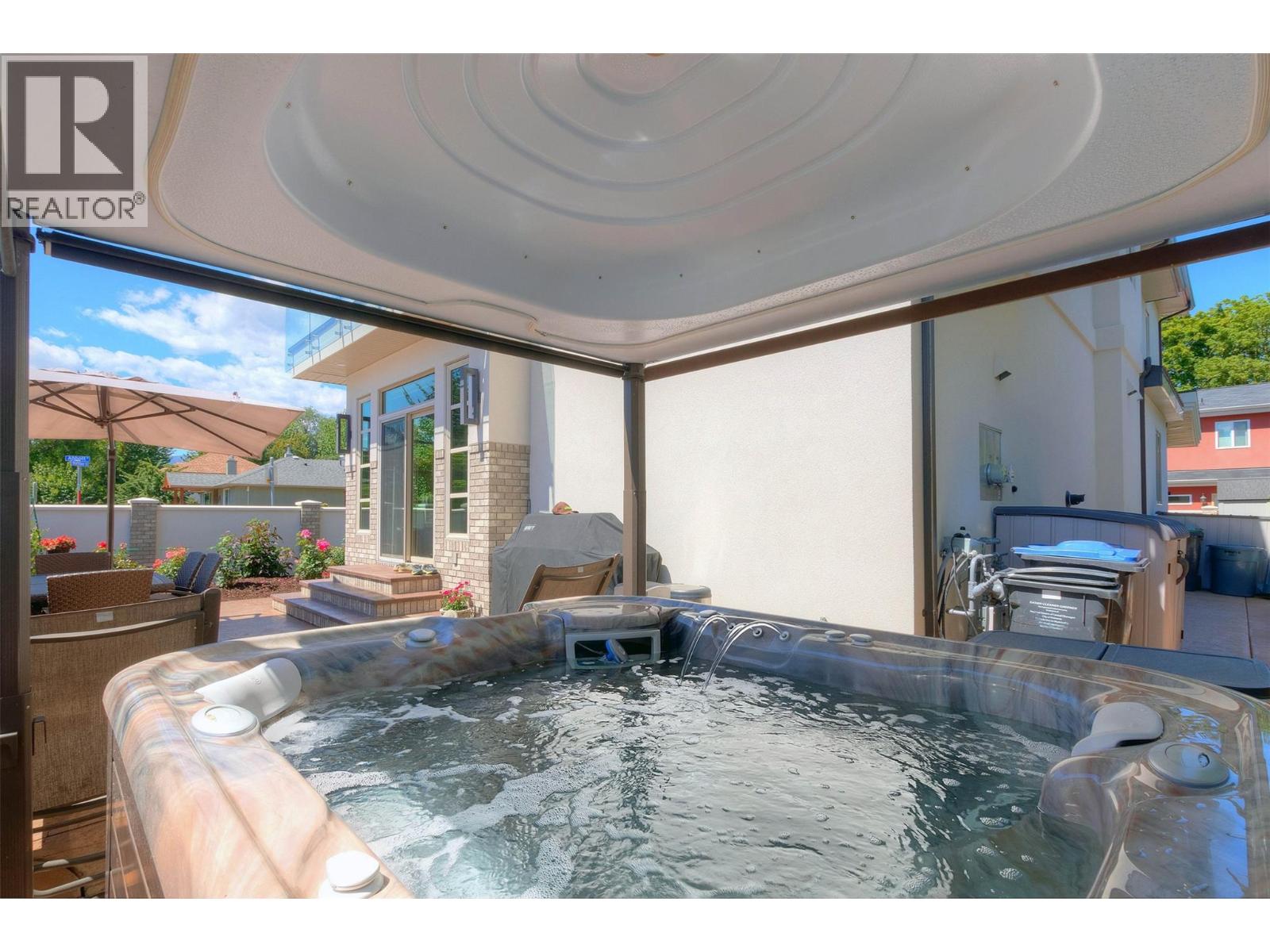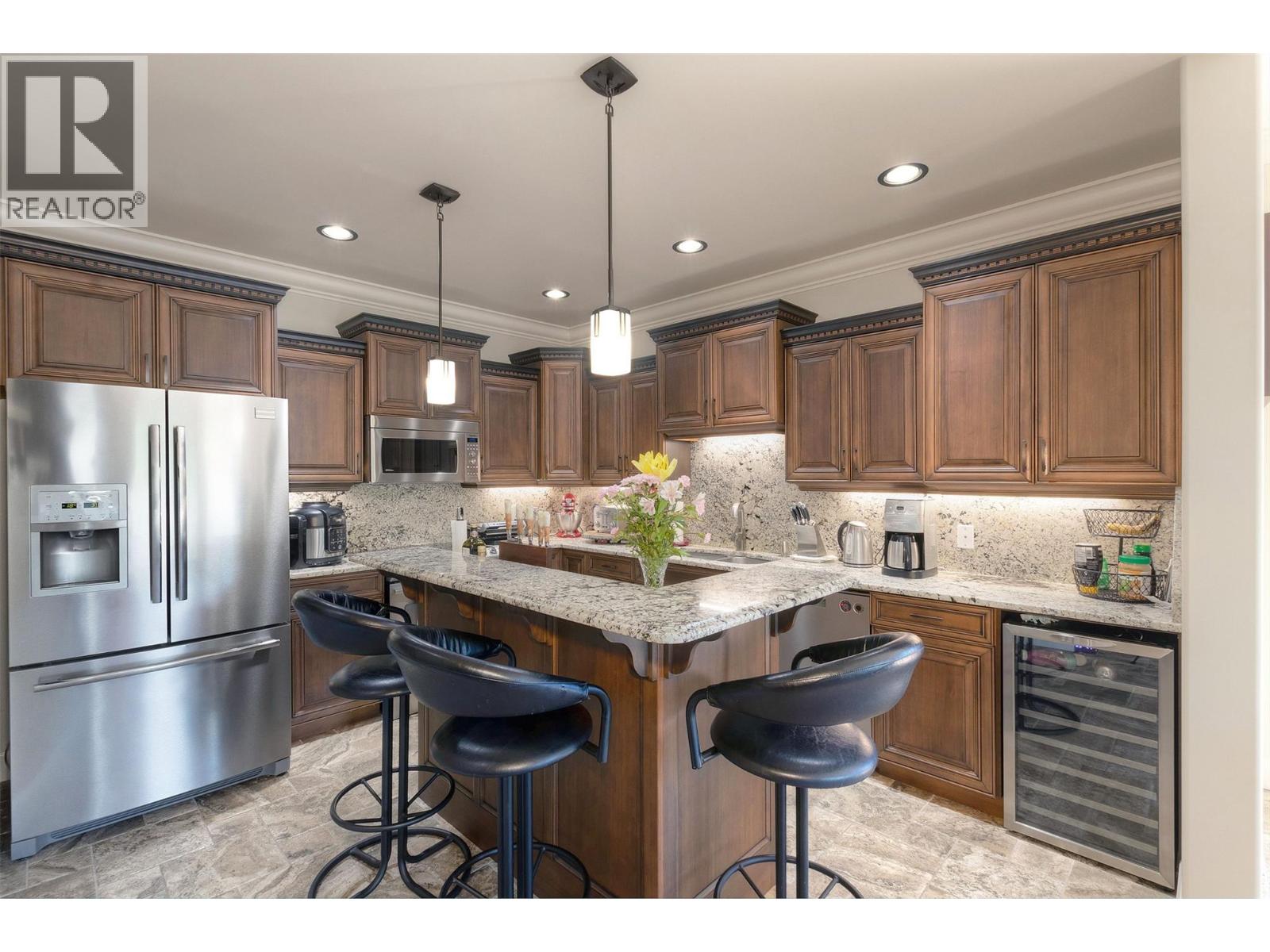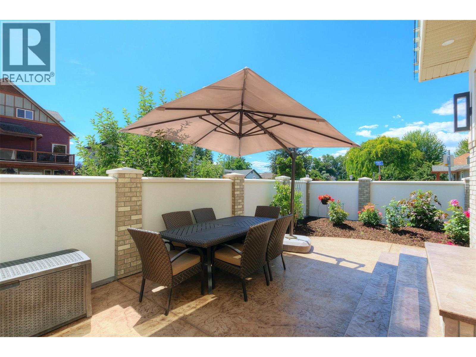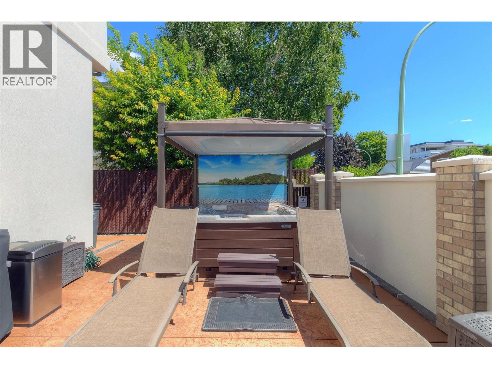 Located along the prestigious Abbott Street Corridor, this half-duplex executive home blends upscale design with an unbeatable location. Just steps from sandy beaches, scenic bike paths, boutique cafe's, acclaimed restaurants, and KGH, this walkable neighborhood embodies the best of the Okanagan lifestyle. Inside, timeless details include crown molding, tray ceilings, hardwood floors, rich wood cabinetry, and granite countertops. The open-concept main level flows seamlessly from the living room to the dining area and gourmet kitchen—complete with professional stainless-steel appliances, built-in wine cooler, and generous island for entertaining. Expansive windows bathe the home in natural light, while sliding doors open to a fenced outdoor living space with dining area, gas hookup, and hot tub—perfect for evening gatherings or a private retreat. Upstairs, the primary bedroom offers a private patio, wet bar, custom built-ins, walk-in closet, and a spa-inspired ensuite. Two additional bedrooms, each with walk-in closets and private ensuites, provide comfort and privacy for family or guests. A rare opportunity to own in one of Kelowna South’s most coveted locations, where refined living meets unmatched convenience. (id:6770)