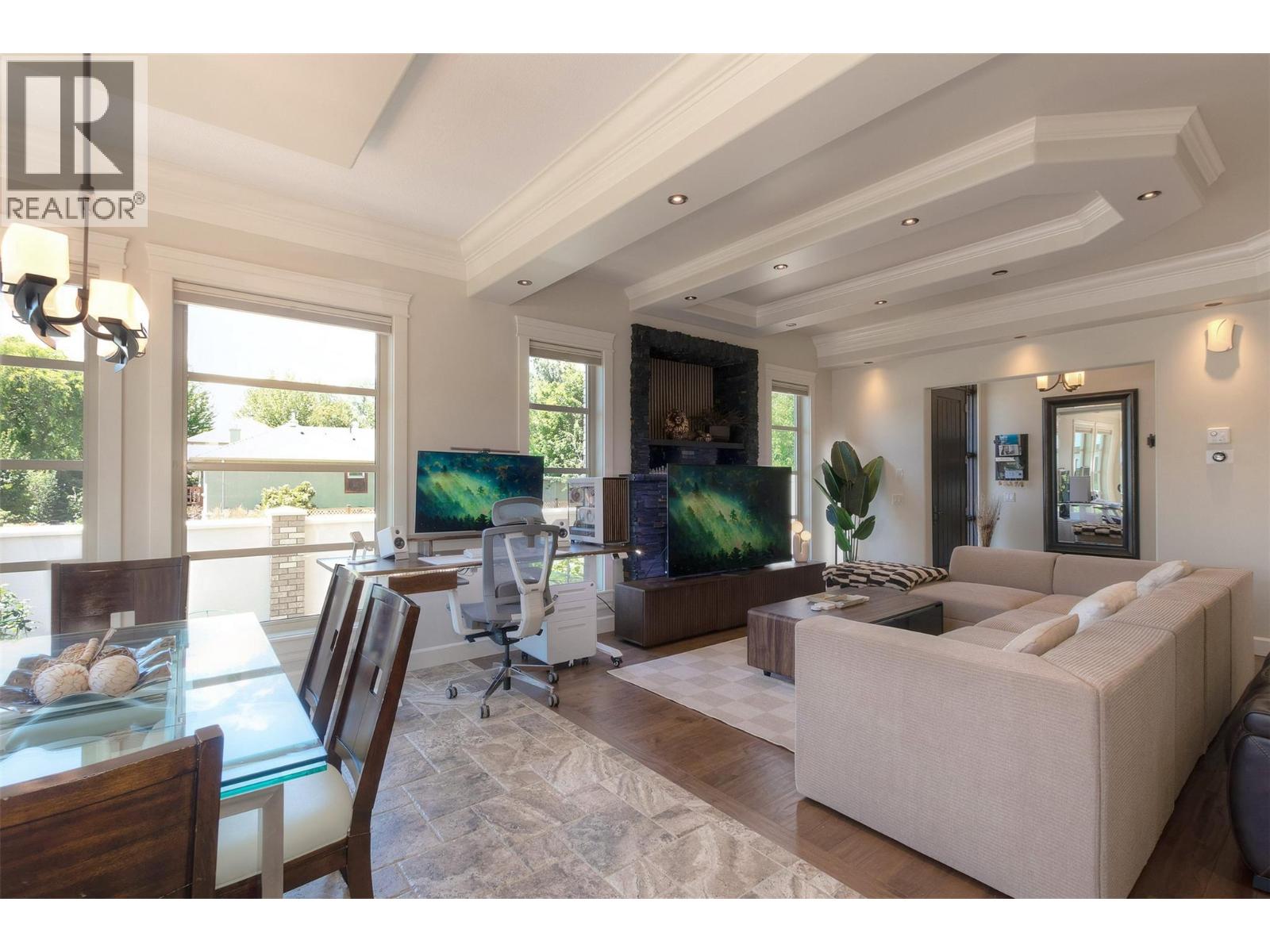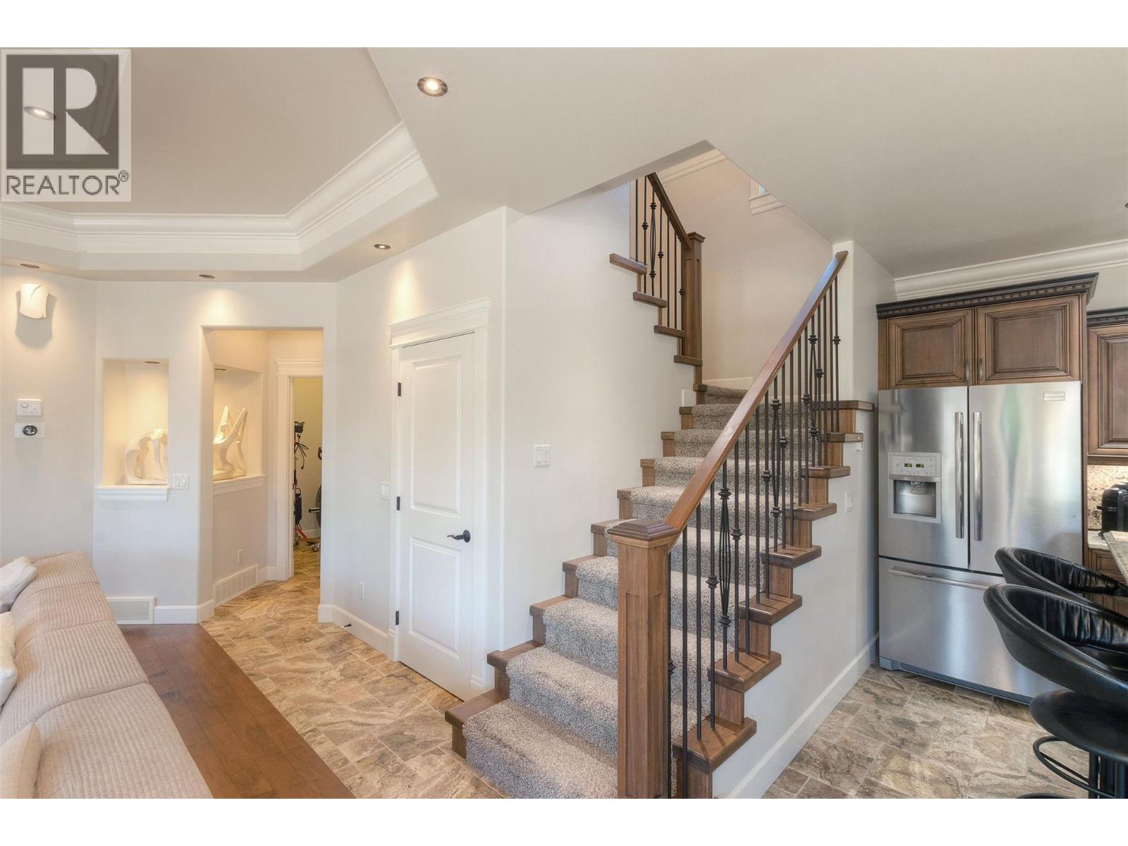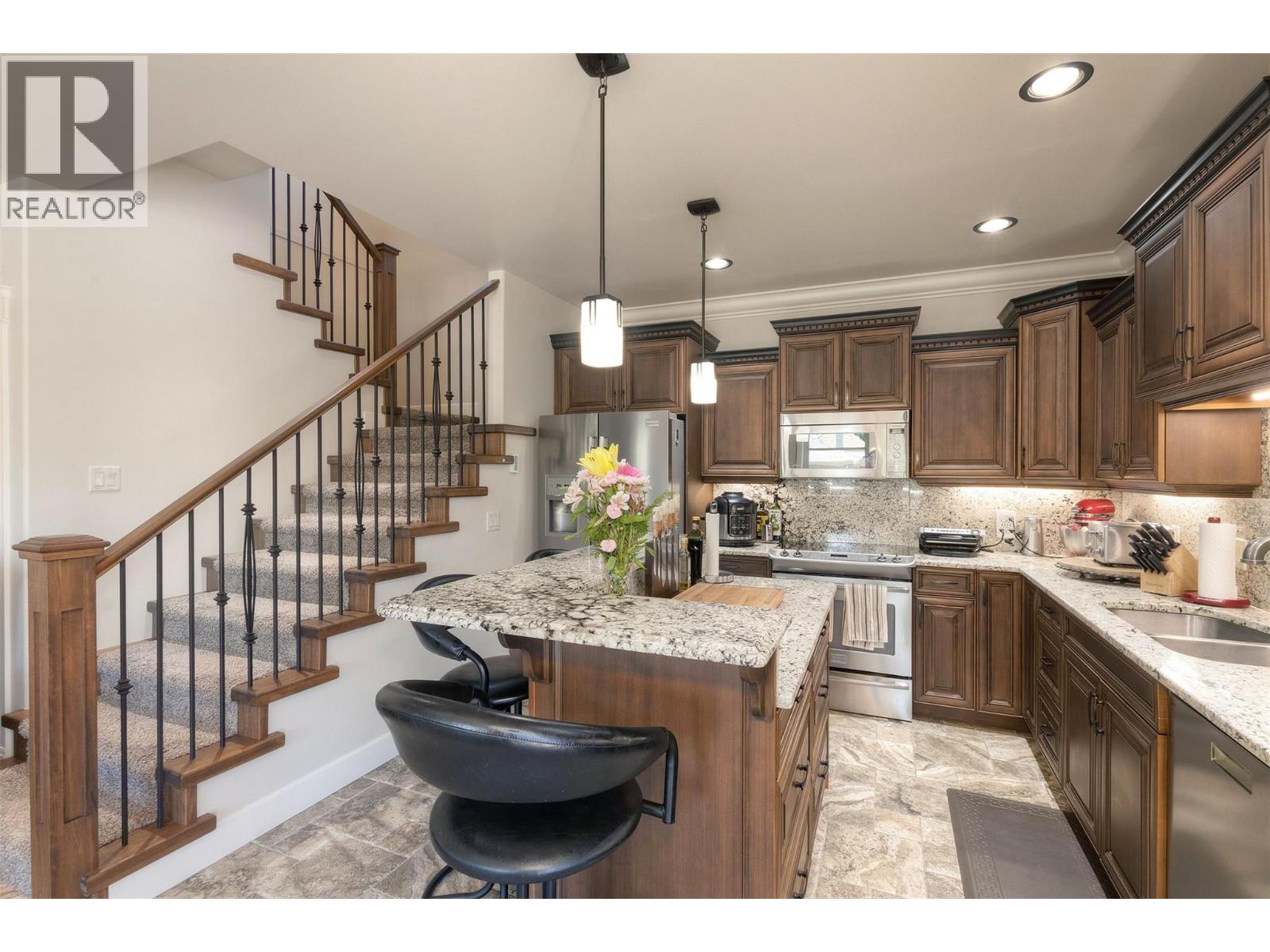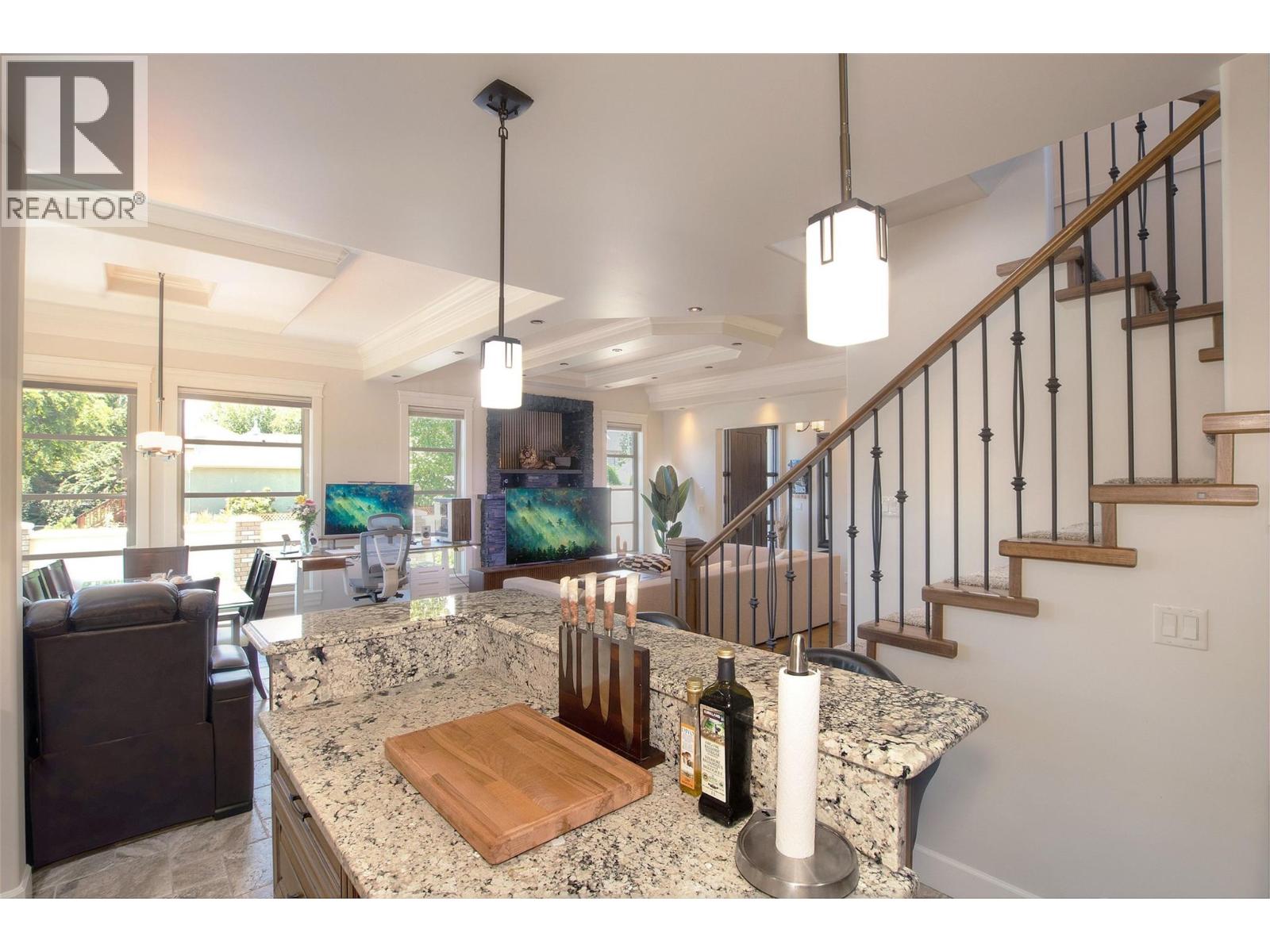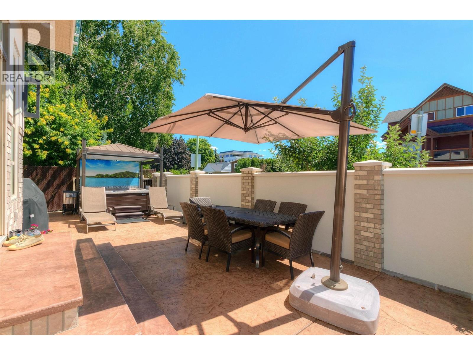 Located along the prestigious Abbott Street Corridor, this half-duplex executive home blends upscale design with an unbeatable location. Just steps from sandy beaches, scenic bike paths, boutique cafe's, acclaimed restaurants, and KGH, this walkable neighborhood embodies the best of the Okanagan lifestyle. Inside, timeless details include crown molding, tray ceilings, hardwood floors, rich wood cabinetry, and granite countertops. The open-concept main level flows seamlessly from the living room to the dining area and gourmet kitchen—complete with professional stainless-steel appliances, built-in wine cooler, and generous island for entertaining. Expansive windows bathe the home in natural light, while sliding doors open to a fenced outdoor living space with dining area, gas hookup, and hot tub—perfect for evening gatherings or a private retreat. Upstairs, the primary bedroom offers a private patio, wet bar, custom built-ins, walk-in closet, and a spa-inspired ensuite. Two additional bedrooms, each with walk-in closets and private ensuites, provide comfort and privacy for family or guests. A rare opportunity to own in one of Kelowna South’s most coveted locations, where refined living meets unmatched convenience. (id:6770)