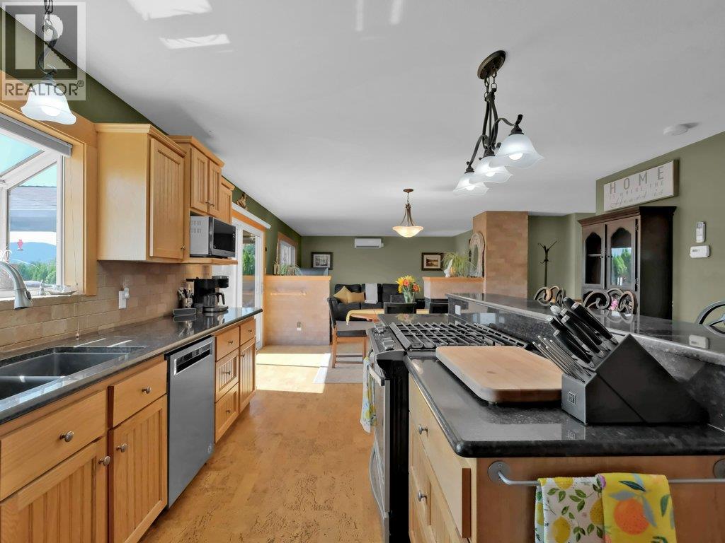Welcome to 6475 Blue Jay Rd. A versatile 4-Bedroom Home with in-law, Huge SHOP, and Incredible Entertainer’s Deck, over looking a lovely mountain view. Inside, the open-concept main floor is anchored by a chef-inspired island kitchen featuring a gas range, ample counter space, and a large island with seating—ideal for casual meals or hosting friends. The kitchen flows seamlessly into the dining and living areas, all filled with natural light. Step through sliding doors to the expansive covered deck, thoughtfully designed for year-round entertaining, complete with a built-in BBQ, beverage fridge, ceiling heater, fam and plenty of room for outdoor dining and lounging while enjoying the view. Private 1-bedroom suite with a separate entrance and shared laundry—perfect for extended family, guests, or rental income. Car enthusiasts, hobbyists, or tradespeople will love the massive detached workshop, quipped with a 220V plug, this space is truly a mechanic’s dream, offering room for projects, tools, and storage with it's own drive. Double driveway with room for plenty of parking. The backyard is private and inviting, with space to relax and unwind in the included hot tub. With an EnerGuide rating of 76 (2010), the home offers solid energy efficiency to help keep utility costs down. This property truly checks every box—spacious living, income potential, exceptional storage and workspace, and a setting that offers both privacy and convenience. (id:6770)
