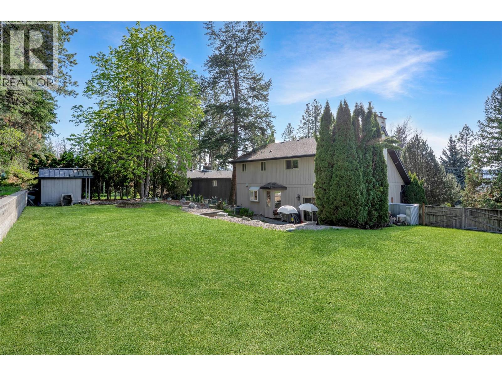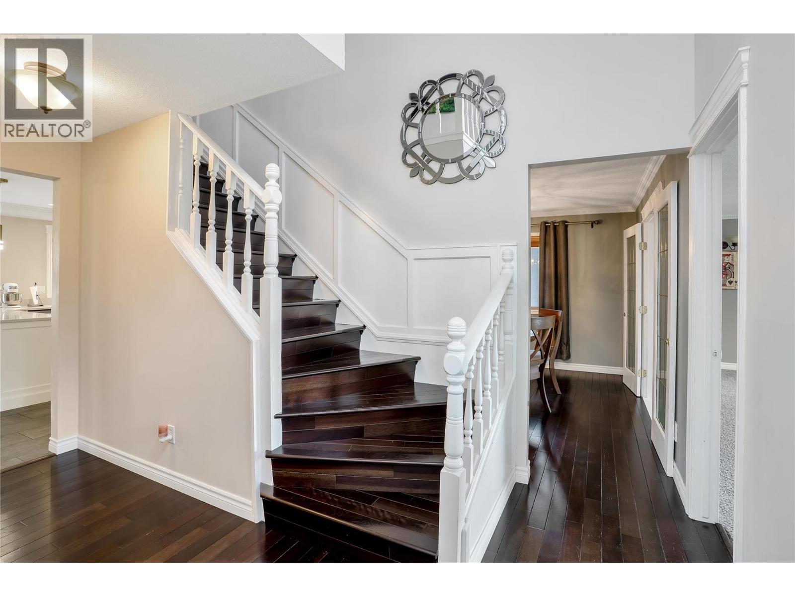 Looking for privacy, incredible outdoor space, and the perfect family home? This beautifully updated residence features a desirable floorplan, stunning lake views, and a rare backyard paradise. Inside, enjoy Brazilian walnut floors, soaring ceilings, and an open-concept main living area. The custom kitchen boasts solid maple soft-close cabinetry, quartz countertops, high-end appliances, and ample storage. The dining and family rooms flow to a spacious patio and pool-sized yard, ideal for entertaining. A formal dining/living room, office, guest bath, and laundry complete the main floor. Upstairs offers four large bedrooms, including a grand primary suite with sitting area, view deck, and luxurious ensuite with double vanities, travertine tile, and dual-head glass shower. A second full bath and flex loft space are perfect for family living. The lower level features fresh paint and flooring, a full bath, and a hidden office/wine cellar. Outside, mature greenery surrounds professionally engineered retaining walls, a shed, and vehicle access. Located on a quiet street with an oversized paved driveway and double garage — this is a home you’ll cherish! (id:6770)