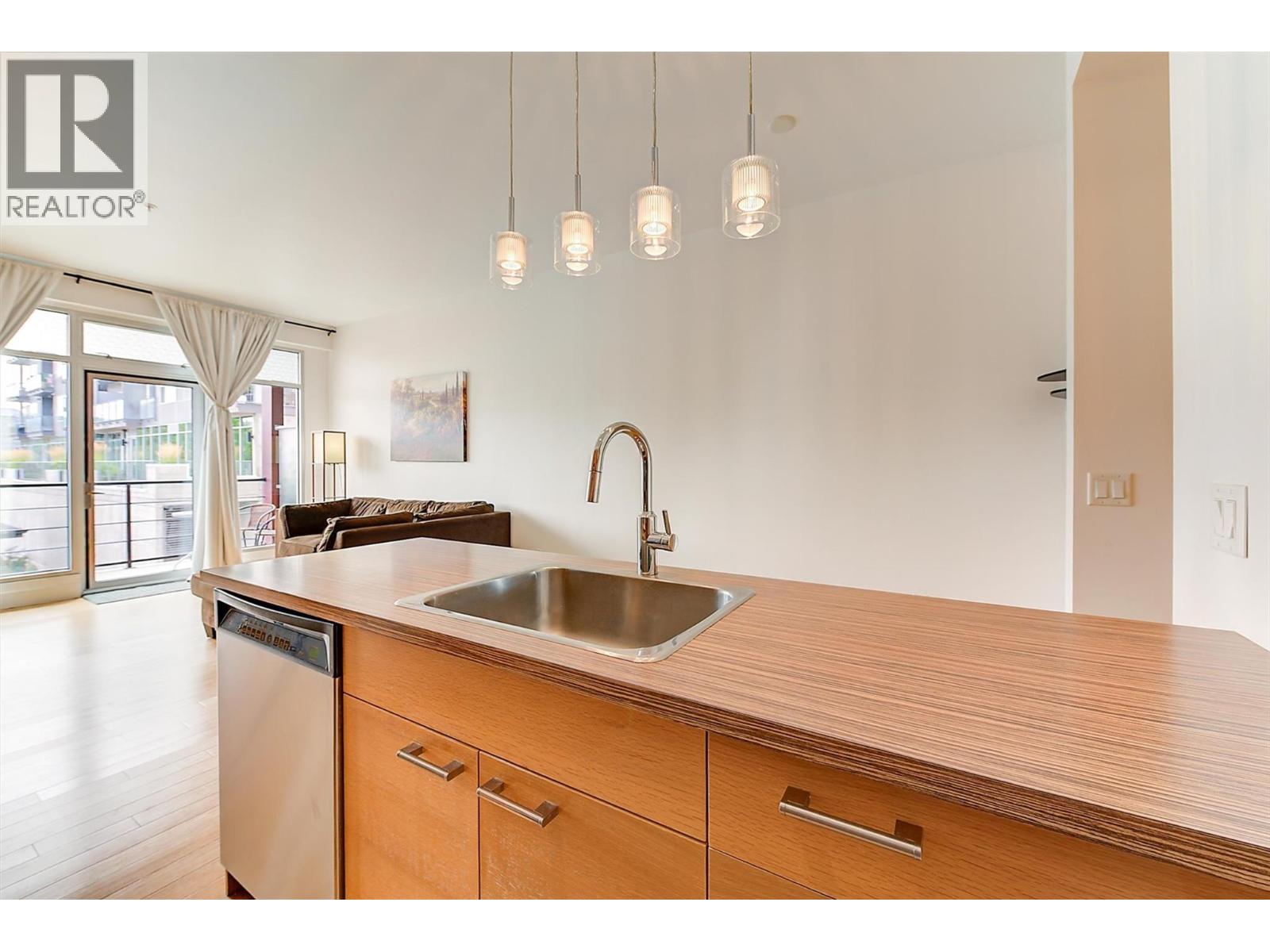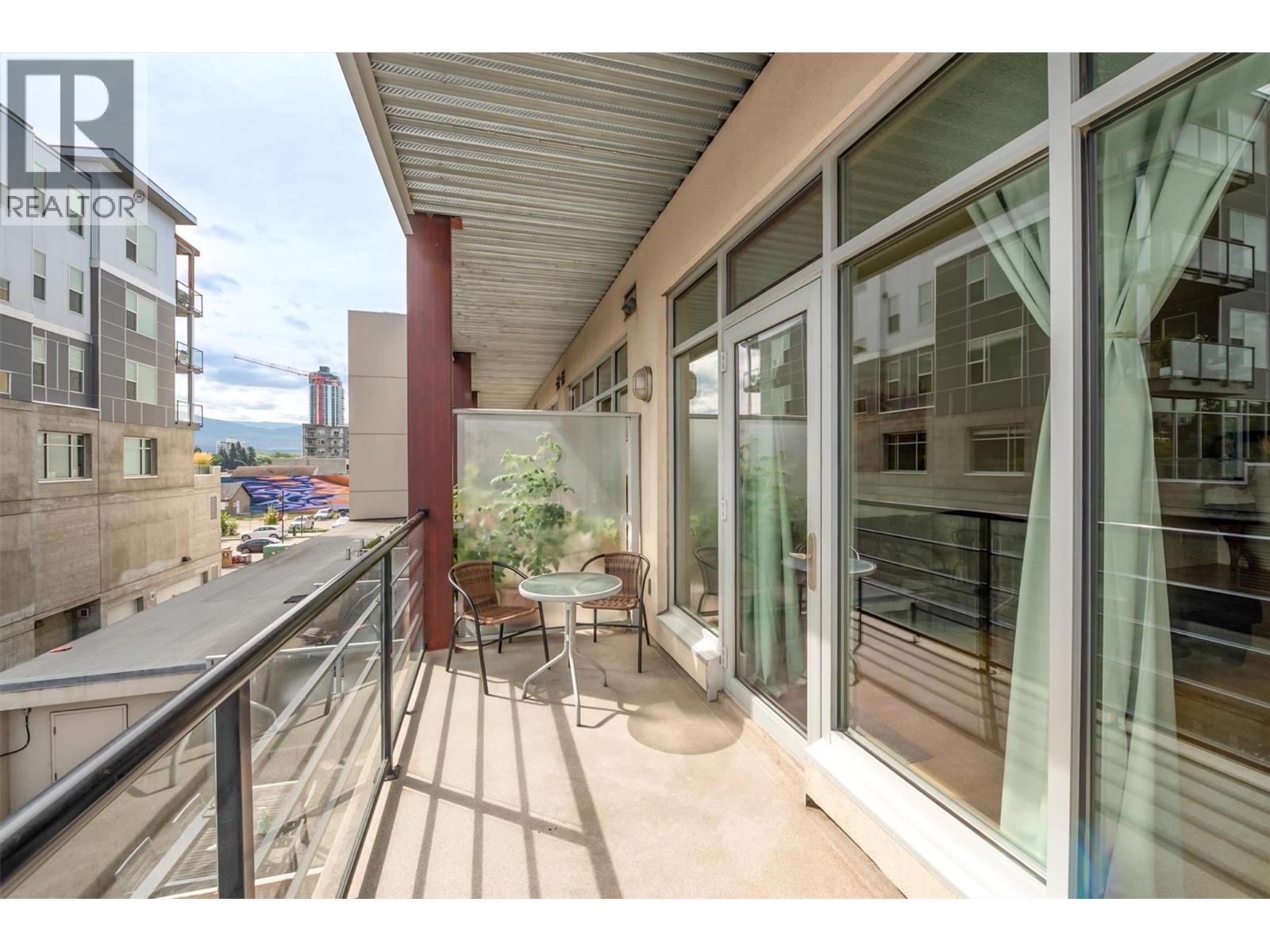 Modern contemporary 1-bedroom corner unit located in the highly desirable Cannery Lofts, located in the heart of Kelowna's vibrant Cultural District on Ellis Street. Designed by the award-winning Meiklejohn Architects, The Cannery Lofts is one of Kelowna's most sought-after low-rise buildings. This particular unit offers a very convenient lifestyle due to its central location, with coffee shops, gyms, restaurants, and the beach just a few blocks away. For outdoor enthusiasts, Knox Mountain is practically in your backyard. This property is an ideal starter home or investment unit. It includes one underground parking stall and boasts low monthly strata fees. The condo features a bright kitchen with stainless steel appliances, including a gas stove, flowing seamlessly into an open-concept living area. The generously sized dining room is a functional space that could easily serve as a study area for a work-from-home professional or student. Additionally, the covered deck off the living room provides a lovely spot to enjoy fresh air and the vibrant sounds of downtown. This contemporary unit is rentable and is within a short walk to shops, the waterfront, galleries, and more. Pets are also welcome: either one dog (30"" at the shoulder) or two cats, or two dogs with a combined shoulder height of 30"". (id:6770)
