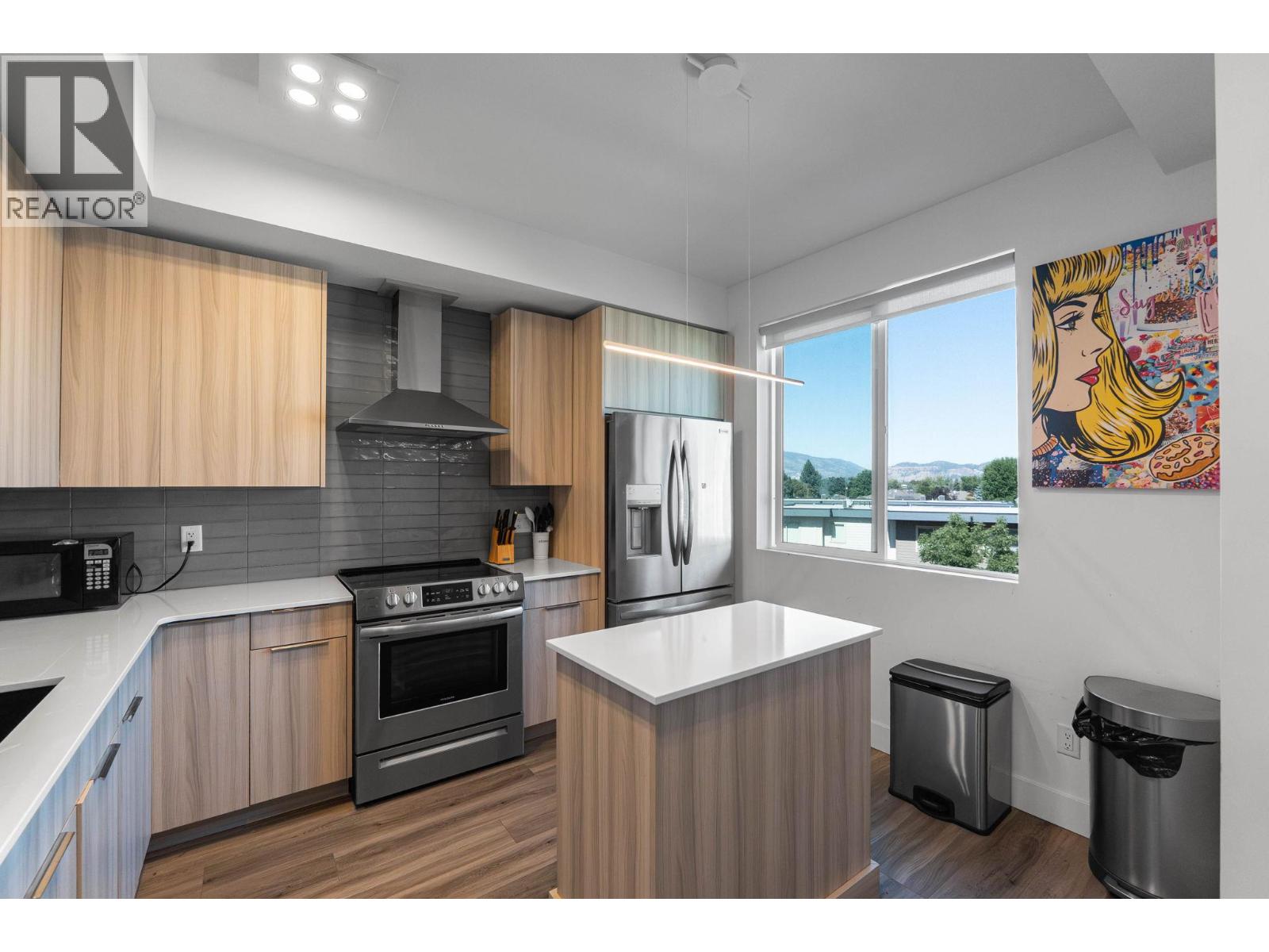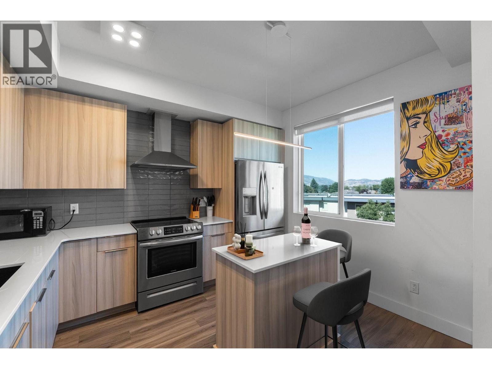 Experience the best of Lower Mission living at Green Square Vert, a 2022 year-built community. This 1-bedroom plus large den, 1-bath condo offers beautiful city and mountain views within an ultra-quiet setting. The bright, open floor plan features a modern kitchen with quartz countertops and ceiling-height cabinetry, designed for both style and function. The primary bedroom is a true retreat with a custom walk-in closet leading into a thoughtfully designed ensuite. The large den is spacious and versatile—perfect as a home office, guest room, or flex space. Step out onto your private patio, ideal for relaxing or BBQing with friends. Community amenities include a fitness centre with cardio machines and a weight rack, a kids’ playground, garden plots, dog/bike wash station, and secure bike storage. Conveniently located near grocery stores, restaurants, Gyro Beach, trails, wineries, and golf, this home perfectly blends lifestyle, comfort, and modern design. Lockbox at the front metal rail. Backed by a 2-5-10 Home Warranty for peace of mind, this home ensures lasting quality and protection. (id:6770)