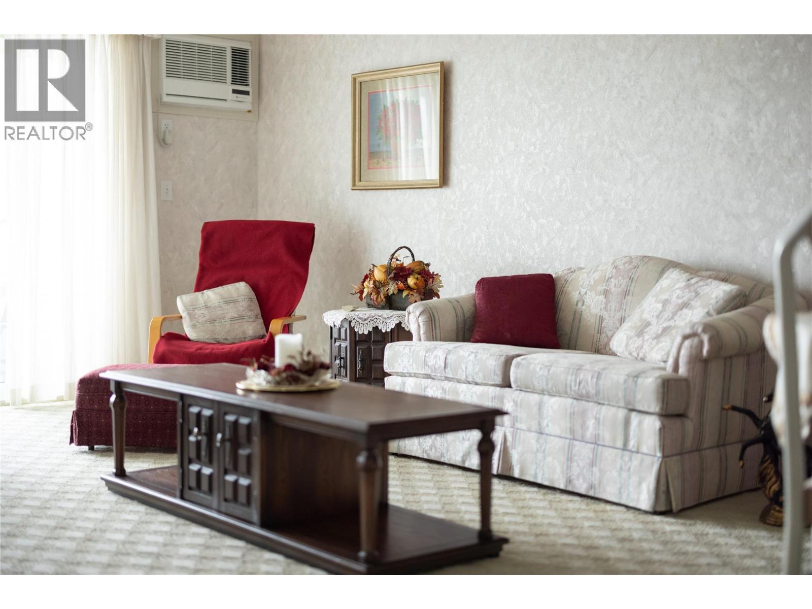 Lovely top floor unit, spacious, bright 2 bed 2 bath with terrific mountains views. This north facing unit is in a prime location with amenities. There is a common meeting area with a kitchen. It is used for regular coffee times and also for some potlucks. There is a pool table room, a small gym and a fully equipped woodwork shop. This is very affordable housing. The home comes with one secure parking space under the building. and a storage locker just down the hall. This is a 50+ building. No rentals are allowed. Buyers must purchase with cash and no mortgages are allowed. Buyers are purchasing a membership in Gordon Park Housing Society with the exclusive right to occupy unit #418. Come and look. (id:6770)