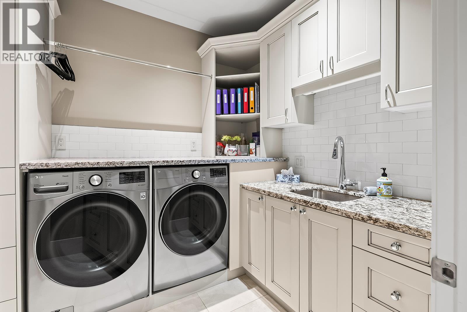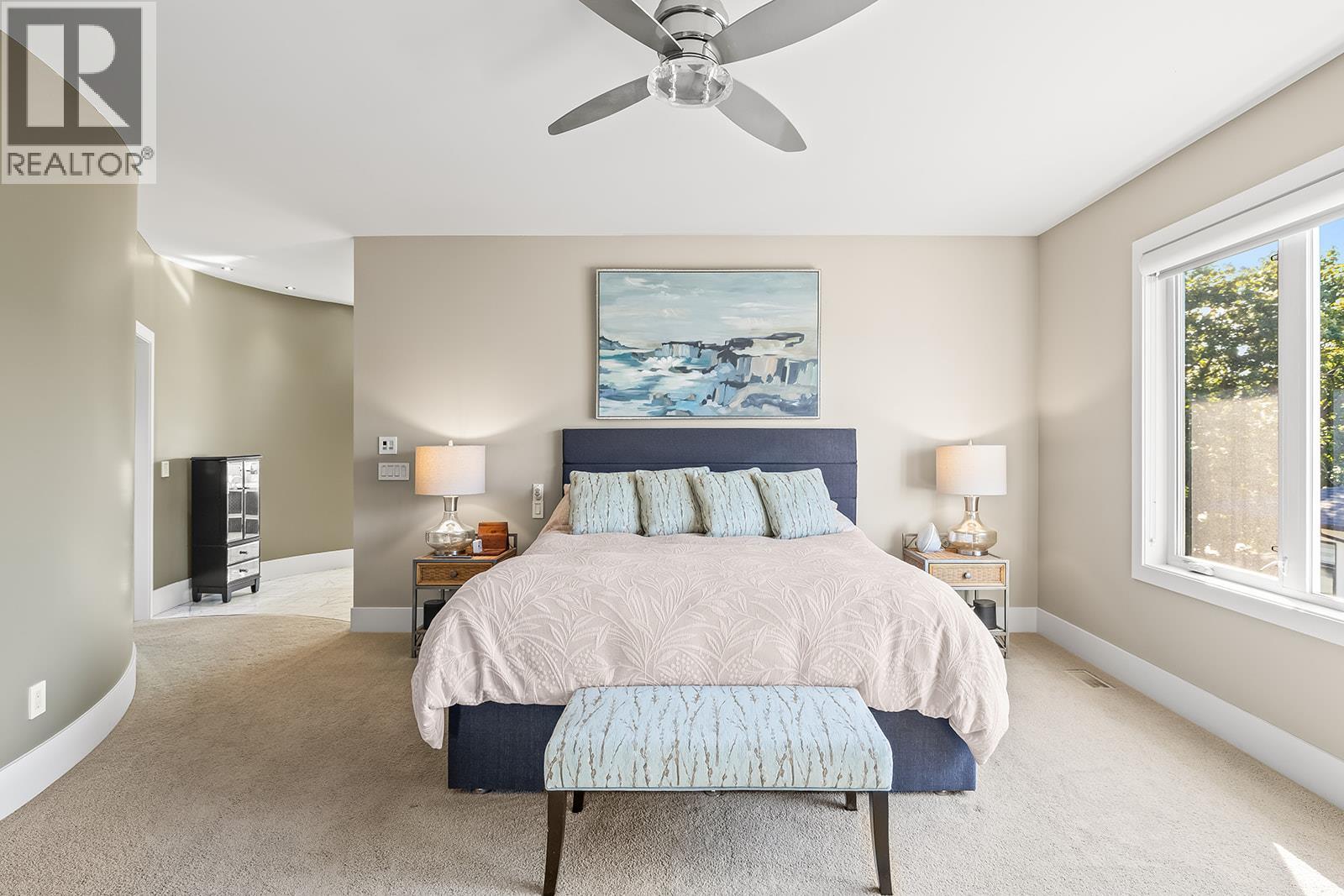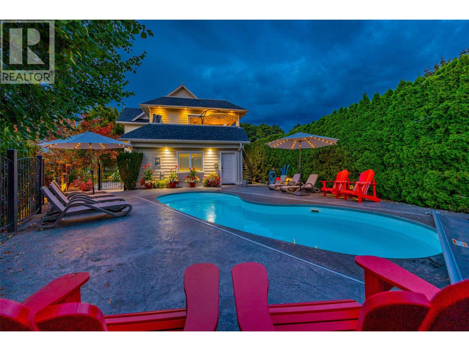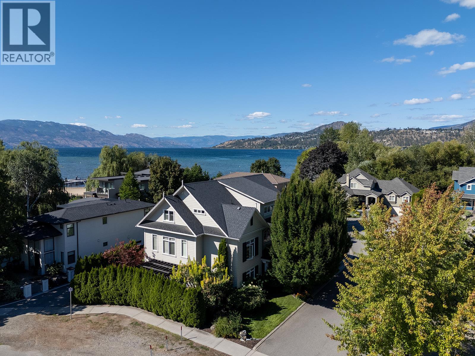 Welcome to luxury living on highly desirable Abbott Street! Combining timeless elegance with modern functionality, a spacious layout and impeccable finishes throughout. The grand double-storey foyer, embraces you with under-floor heated tile, soaring vaulted ceilings, and an abundance of natural light. An elevator, enhances accessibility and convenience. The ground level is perfect for guests or multi-generational living, featuring a private suite with kitchenette, sitting room and garden courtyard access, ideal for in-laws or Airbnb. An office, home theatre, laundry, and pool bathroom round out this level. The main floor chef’s kitchen with premium appliances and pantry, a great room with gas fireplace, two bedrooms with a shared bathroom, powder room, dining area, and a full wet bar with a dishwasher, wine and beverage fridges is an entertainer’s dream. Step outside to a stunning lounge and dining area with gas fireplace, TV, phantom screens, and hot tub. The top floor is an indulgent primary retreat with a spa-inspired marble bathroom, dressing room with laundry, private sitting area with fireplace, and a serene sun deck. Enjoy your secluded oasis with a UV pool, auto cover, and ample lounging space. A heated triple garage with additional storage completes this exquisite home. This freehold, bare land strata with private beach access has a low monthly strata $30 covering insurance for the common road. Ideally located near Pandosy Village, KGH, and the lake. (id:6770)