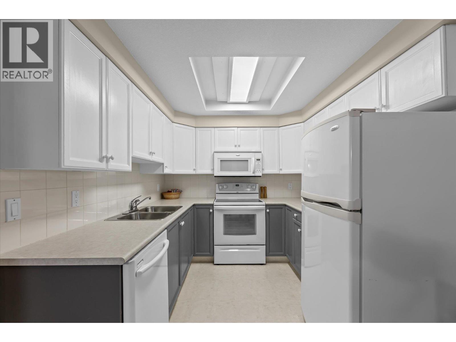 BEAUTIFUL BRISTOL GARDENS SUITE! High gas prices got you down? Immediately start saving here surrounded by a plethora of amenities including Orchard Park Mall, Costco, Canadian SuperStore, Restaurants, Winners, Banks, Mission Creek Regional Park / Greenway linear trail, and so on. You'll be impressed by how walkable this immaculate home is. Step inside to a very bright, freshly painted home with westly exposure. This functional floor plan of 1249 sqft is comprised of 2 bedrooms separated by a massive living/dining room area, very own laundry room with side by washer/dryer, and separate in suite storage area! You'll also enjoy a great kitchen with lots of cupboards/counter space, eating nook, plus large pantry cupboard, 2 full bathrooms, and closed in sunroom/balcony with access point from living room. Walk-in closet and a 3-piece ensuite can be found in the primary bedroom. Other benefits to living here include the impressive stand-alone clubhouse, large woodwork shop on the garage level, & car wash bay. Prime location in the building as it doesn't overlook Costco or parking lots. Unit features central heat & air conditioning, 1 underground parking stall and same floor storage locker (across the hall) of approximately (3'x4.8'x6.8'h). 1 small pet welcomed and rentals allowed. Ditch the house and embrace condo living at its finest! (id:6770)