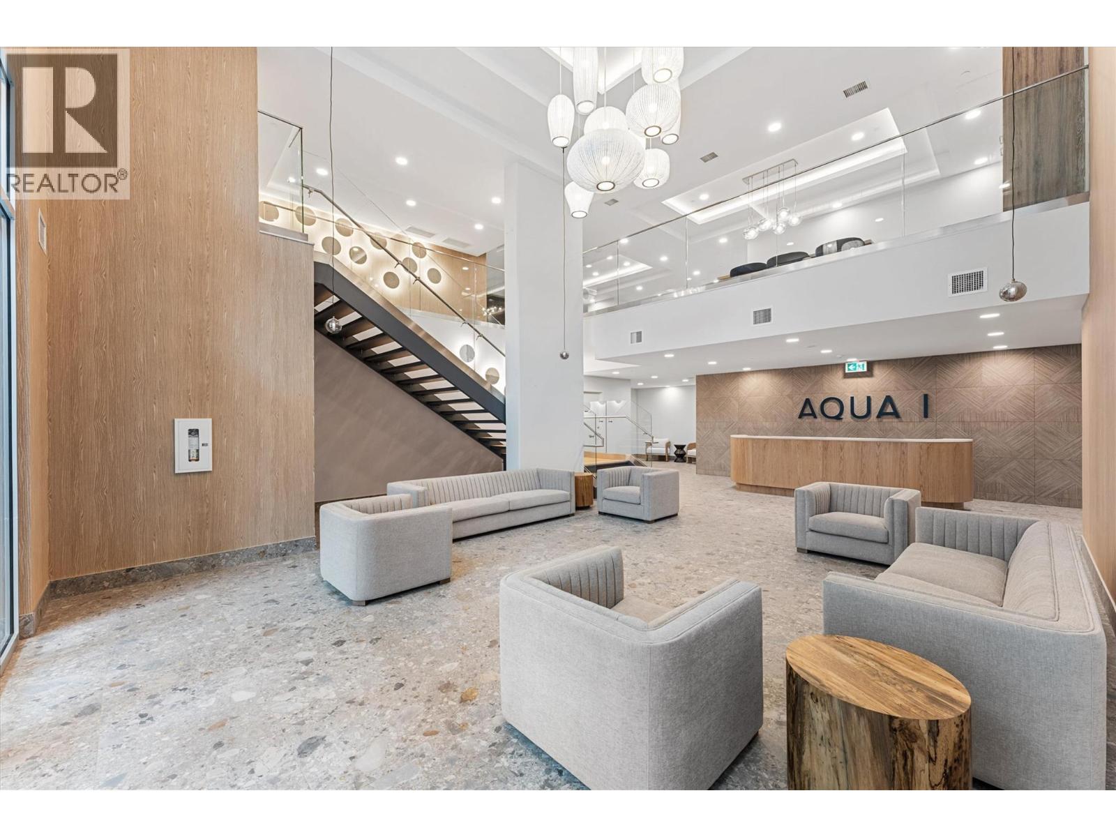 Experience unparalleled lakeside living at Aqua Waterfront Village, a premier development by the award-winning Mission Group. This brand-new, SW-facing 2-bed + den, 2-bath residence offers 1,149 sq. ft. of elegant interior living complemented by an expansive 1,000+ sq. ft. patio perfect for entertaining while soaking in Okanagan Lake views. Designed with sophistication and simplicity, this residence features a bright, open floor plan with calming neutral tones. The chef-inspired kitchen showcases modern flat panel cabinetry, polished quartz countertops, a stunning waterfall island, & stainless-steel appliances. The primary suite is a serene retreat, boasting lake views, a custom walk-through closet, & a spa-like 4-piece bath with a glass-enclosed shower. Thoughtfully positioned bedrooms on opposite sides of the home enhance privacy, while premium upgrades throughout elevate the luxury feel. Residents enjoy resort-style amenities, including a fifth-floor podium with a pool, hot tub, firepit enclaves, BBQ area, & a two-story fitness centre. Additional conveniences include a fireside lounge, bike storage & wash station, dog wash, & exclusive access to the Aqua Boat Club. Nestled in the heart of Lower Mission, Aqua Waterfront Village is just steps from coffee shops, restaurants, breweries, boutique shopping, & Kelowna’s best beaches. Two side-by-side parking stalls located closest to the elevator (1 stall features an EV charger) and one storage locker included. NO GST. (id:6770)