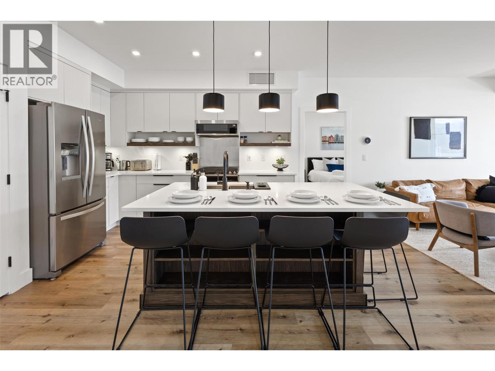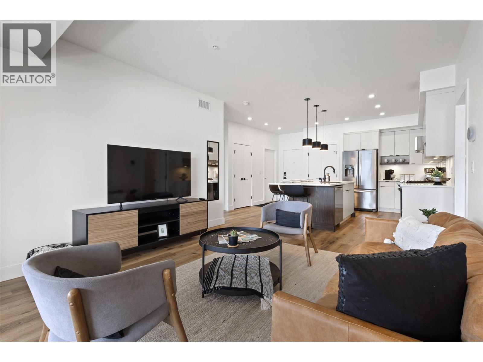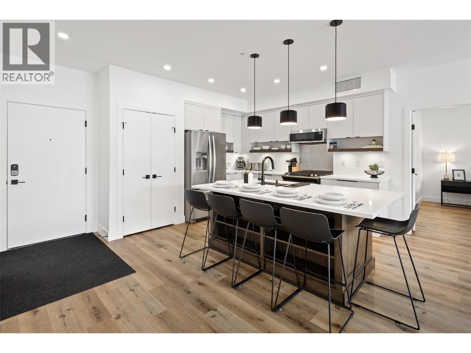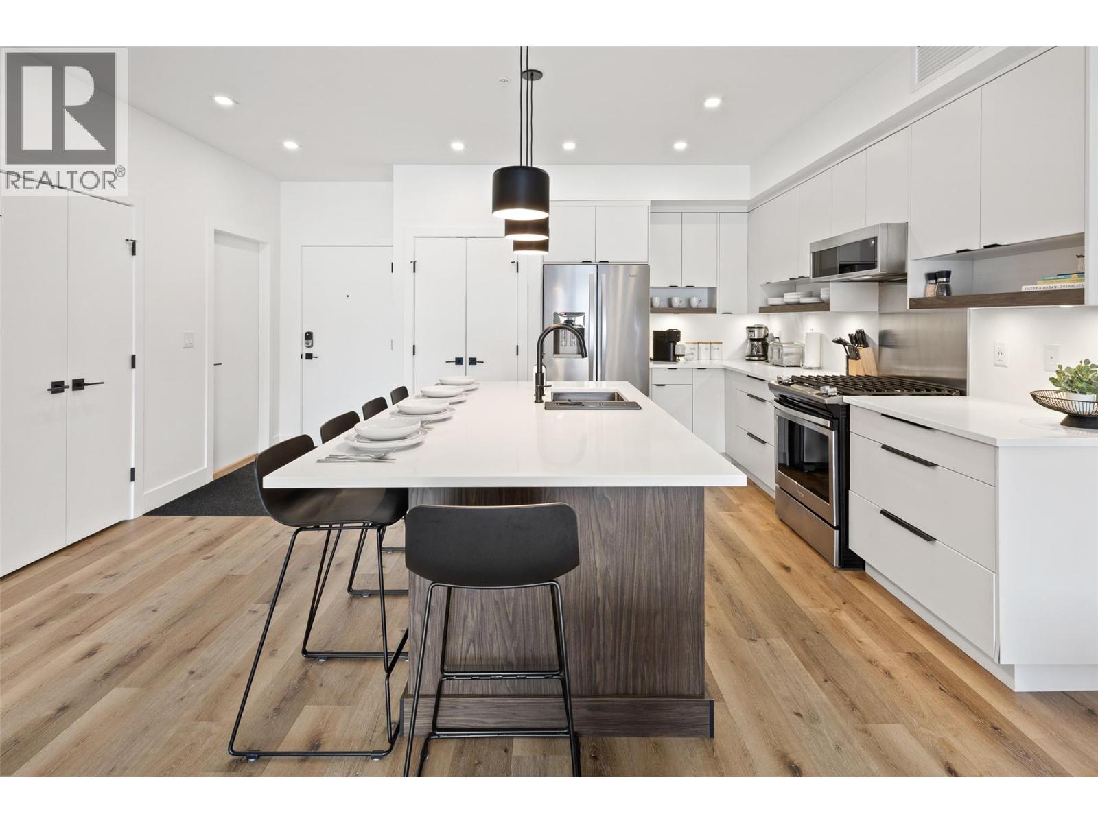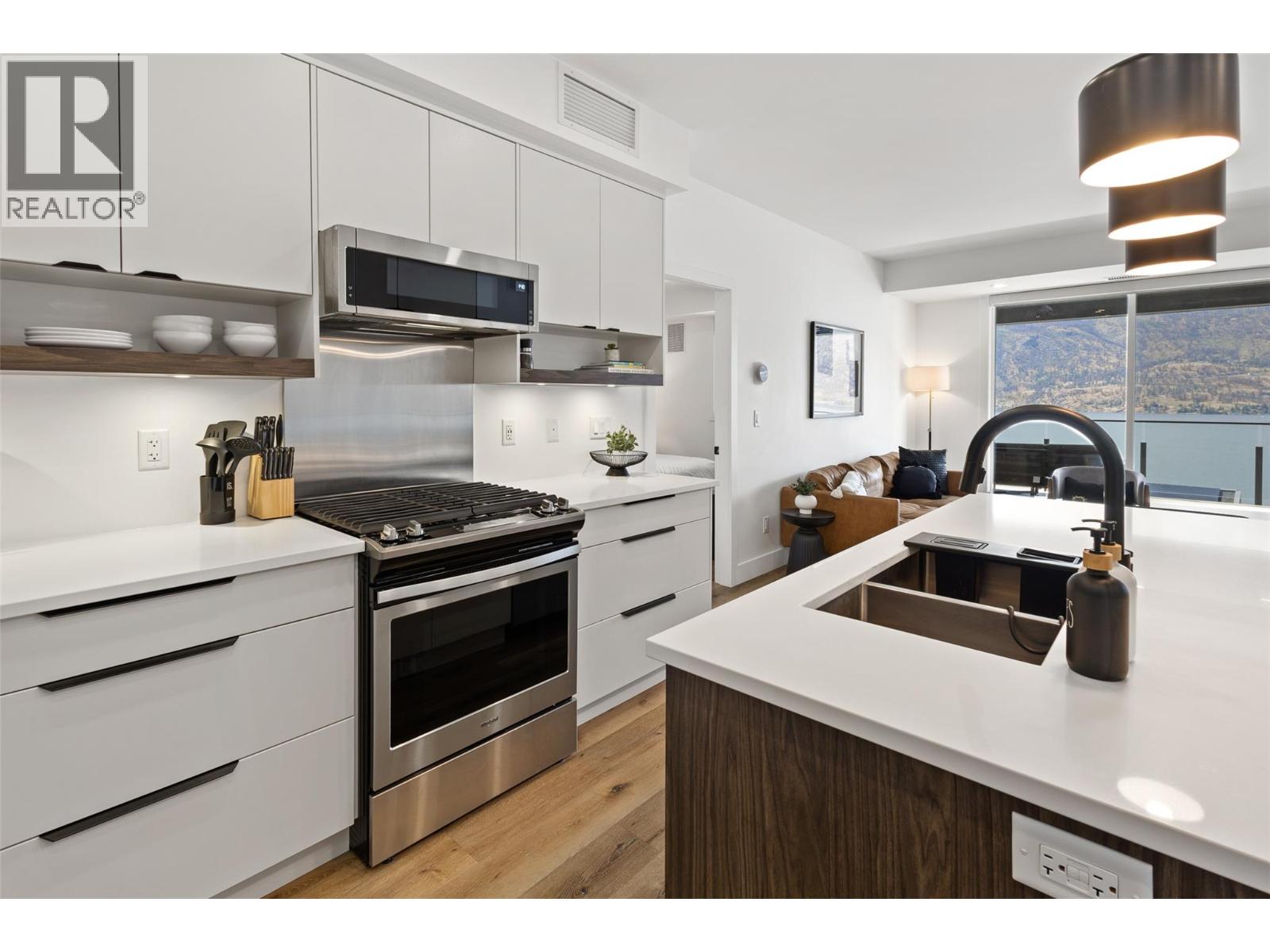 Step into this beautiful two bedroom, two bathroom condo at Granite at McKinley and discover the kind of lifestyle you’ve always dreamed about—where sweeping Okanagan Lake views greet you daily from a spacious and beautiful patio, making every moment truly special. Perfectly designed with a desirable split bedroom floor plan, this home features a full master suite for your ultimate retreat and a cheater ensuite for your guests or second bedroom, letting everyone enjoy their privacy in comfort. Feel refreshed and invigorated with access to both a shimmering pool and relaxing hot tub right in your amenity-rich complex—plus, unique short-term rental approval means this property doubles as an investment when adventure calls you elsewhere. Surrounded by the vibrant McKinley Beach community, you'll have endless choices for fun and fitness: hit the scenic outdoor trails, launch your boat from the private dock, or challenge yourself in the outdoor gym just steps from your front door. The resort-style amenities continue: enjoy easy access to tennis and pickleball courts, lush community gardens, a playground for little ones, and an exclusive one kilometer beachfront and marina, ideal for all your water sports dreams. All this, only fifteen minutes to downtown Kelowna’s dining, shopping, and culture, and mere minutes to the UBCO campus and the airport for unparalleled convenience. Your new home offers a fresh, exciting, and relaxing way of living. Do not miss this rare opportunity! (id:6770)