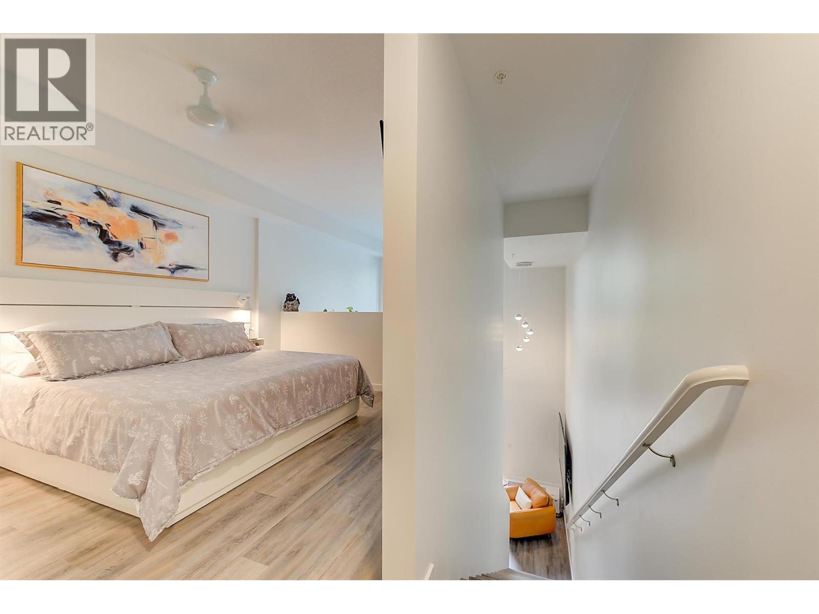 Bright, Urban Chic Loft-style condo at Central Green! This 2-bedroom, 2-bathroom home offers entry on both levels with towering 18 ft ceilings and impressive oversized floor to ceiling windows allowing the natural light to flood your living space. The open layout showcases a sleek kitchen with contemporary dual tone cabinetry, stainless steel appliance package, light quartz countertops, a moveable island with eating bar capability, all flowing into a cool, luxe living area with elegant modern lighting, perfect for entertaining day or night. Step out to the east-facing terrace with a beautiful brick facade and black accented frosted glass privacy panels to enjoy your morning coffee as the sun rises or enjoy a fresh Okanagan evening. The Lofted primary bedroom overlooks the main living area below and offers ample closet space, a 3pc ensuite bath & laundry while the main floor second bedroom is ideal for guests, crafts, a home office, or a studio. Practical perks include a secure underground parking stall, plus a convenient, same floor, storage locker. Central Green is situated beside the prestine Family & Pet friendly Rowcliffe Park. You’ll enjoy a running loop, off-leash dog park with small dog area, playground, and beautiful green space right outside your door. THIS all within walking distance to beaches, schools, shopping, dining, and Kelowna’s vibrant downtown easily accessible by transit out front OR steps away via the Bertram Pathway & the new Bertram Multiuse Overpass! (id:6770)