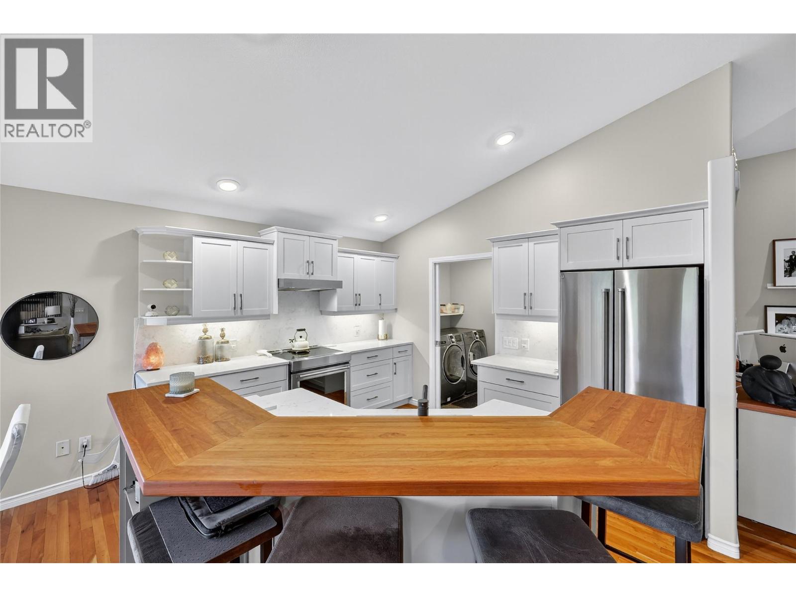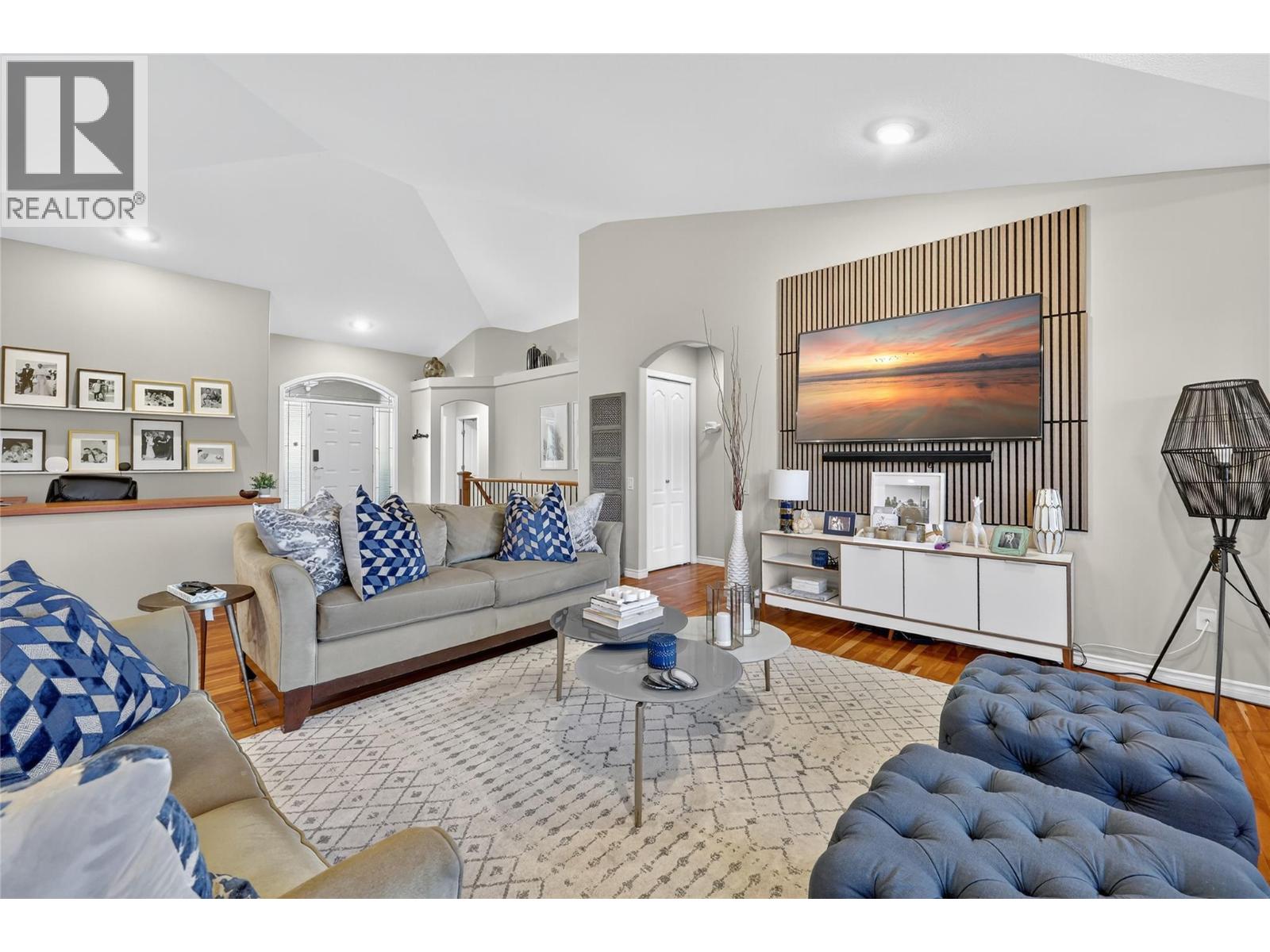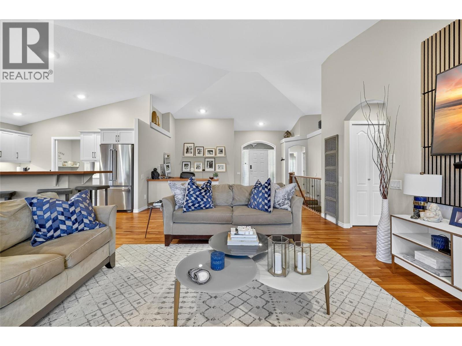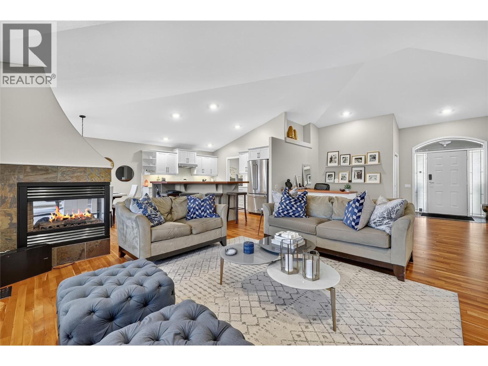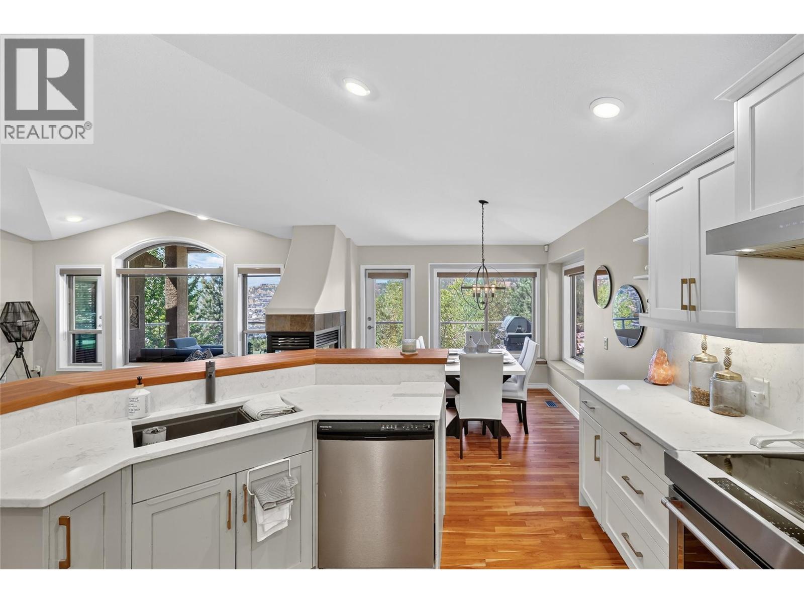 Absolutely stunning 3,200 sqft walk-out rancher on sought-after Dilworth Mountain, offering breathtaking 180° views of mountains, orchards, and Lake Okanagan. This stylish Dilworth Homes built home boasts a bright, flowing open plan with vaulted ceilings, large windows, and top-end finishes. The main level features 3 bedrooms, a 3 sided gas fireplaces, and a spacious kitchen with stainless steel appliances and quartz countertops. The lower level offers 2 additional bedrooms, a wet bar, a gas fireplace, and a huge rec room—perfect for entertaining. Enjoy the outdoors with a large covered patio with sunshade, a covered deck, and a private, zeroscaped backyard with a gas fire-pit. Double garage with oversized driveway and extra parking pad. Natural gas BBQ hookup. Close to Lake Okanagan, downtown Kelowna, beaches, golf, and shopping—this home delivers luxury, comfort, and location in one perfect package. (id:6770)