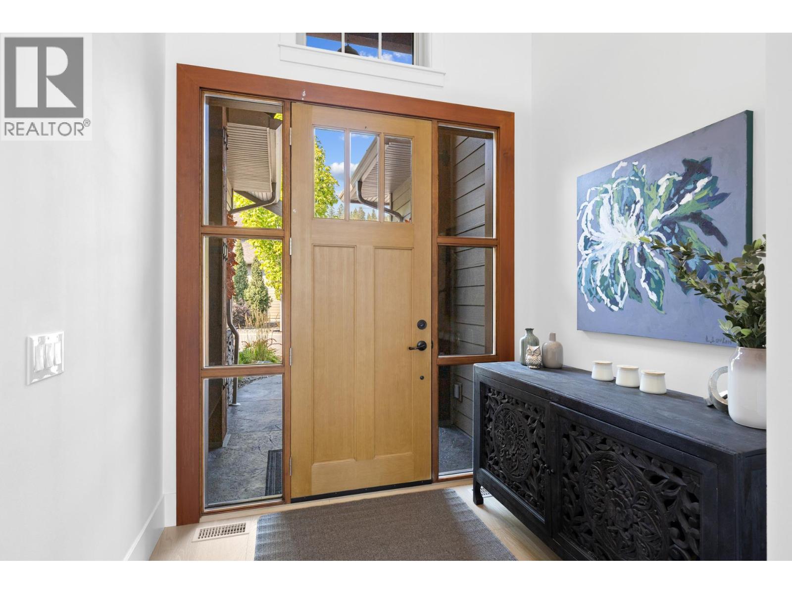 Experience breathtaking panoramic lake and mountain views from nearly every room in this exceptional 2–3 bedroom, 2.5-bath walk-out rancher. Perfectly positioned above the charming lakeside town of Peachland, this home blends tranquility, privacy, and convenience in one stunning package. The bright, open-concept main level features vaulted ceilings, expansive windows that capture the Okanagan’s beauty, and blonde oak Baylor engineered hardwood floors that add warmth and sophistication. Step onto the spacious deck with a natural-gas BBQ hookup — perfect for entertaining, relaxing, or soaking in sunsets over the water. A cozy gas fireplace anchors the living area for year-round comfort and ambiance. The primary suite is a true retreat with French doors to a private patio, a luxurious 5-piece ensuite with heated tile floors, and a generous walk-in closet. The lower level offers an additional bedroom plus a flexible media or guest room with a wet bar, linear electric fireplace, and built-in Murphy bed — ideal as a third bedroom or guest suite. Energy-efficient geothermal heating and cooling ensure comfort through every season. Located in The Trails, you’ll enjoy easy access to hiking and biking paths, the vibrant lakefront boardwalk, and Peachland’s cafés, marina, and waterfront restaurants — all next to an approved 9-hole golf course and surrounded by natural beauty. (id:6770)