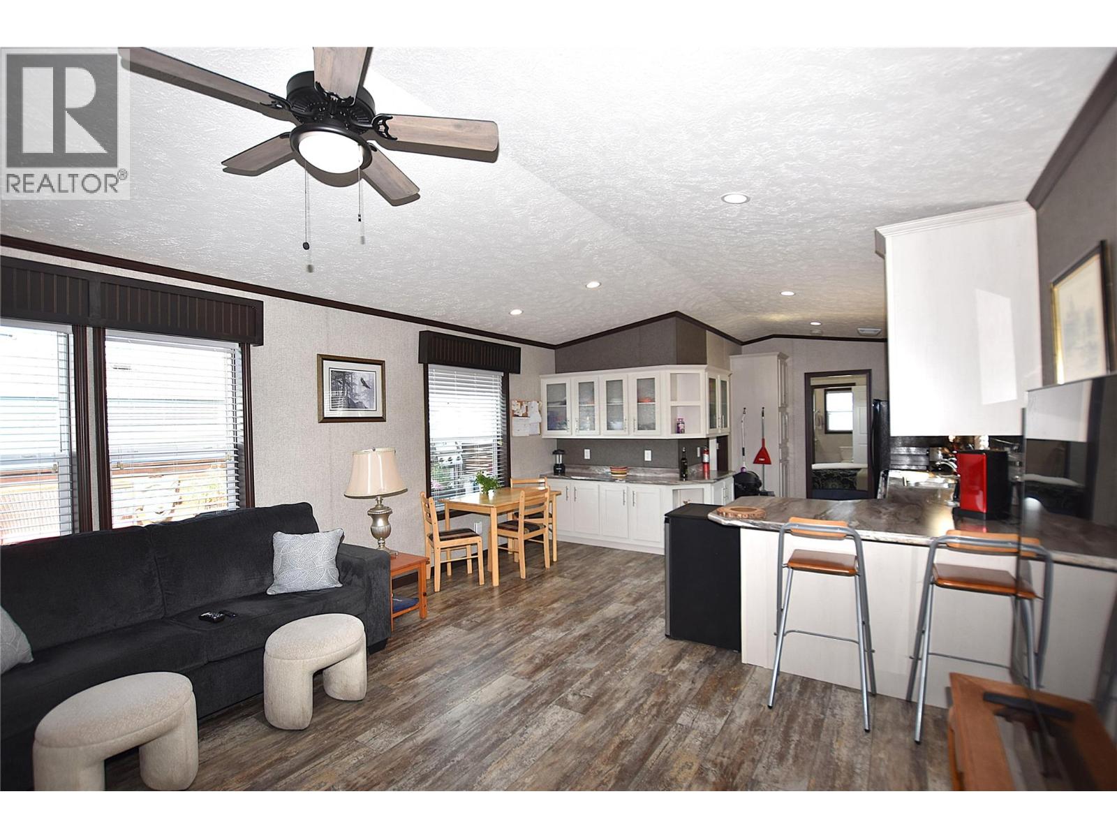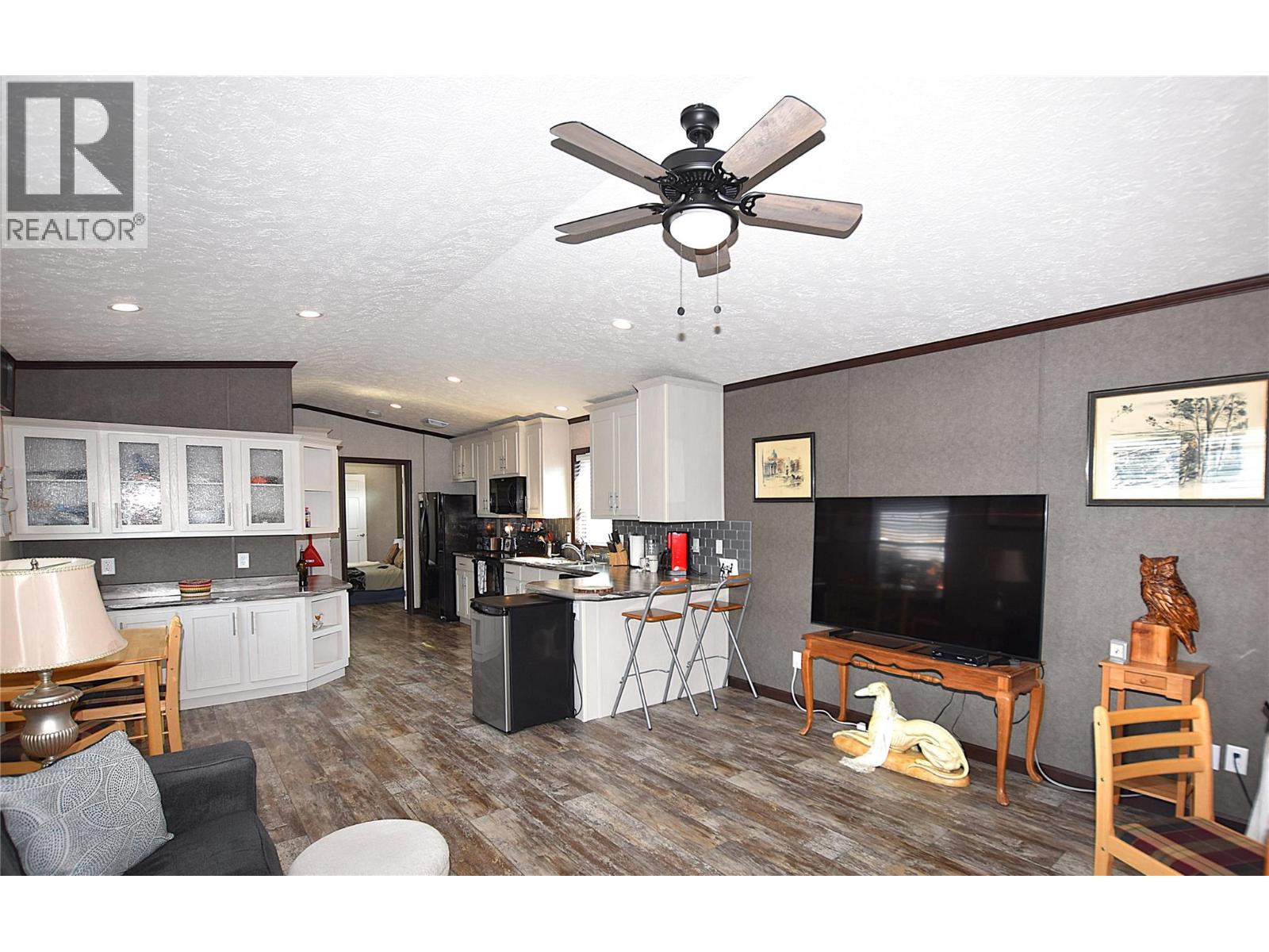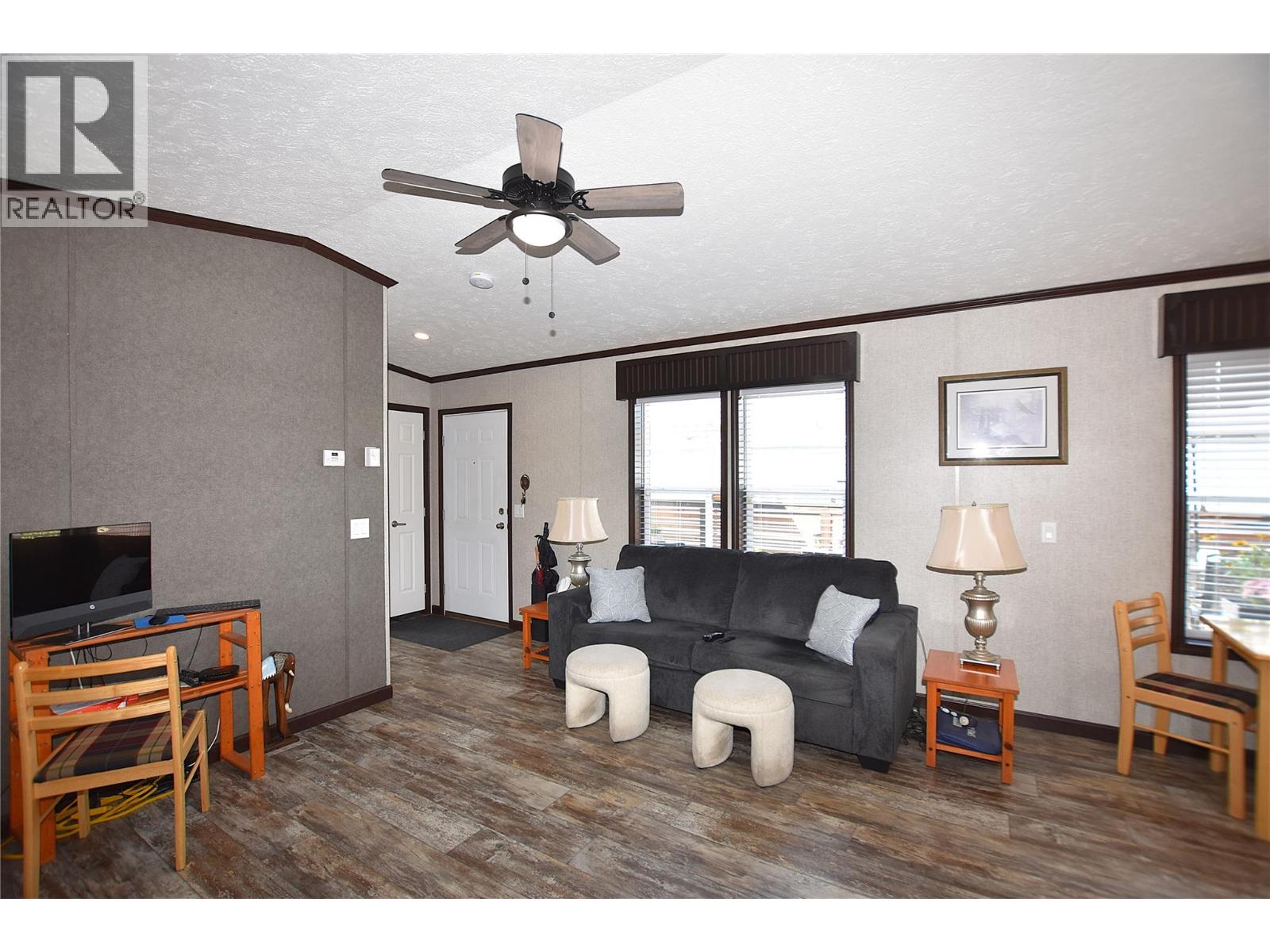 Well-maintained 2-Bedroom, 2-Bathroom 7 year old Modular Home in Louis Brothers Landing Mobile Home Park Discover this beautifully maintained 1056 sq. ft. modular home nestled on a spacious lot in the desirable Louis Brothers Landing Mobile Home Park, located at the scenic Head of the Lake in Vernon. Just a 12-minute drive to town and only 4 minutes to the golf course, this home offers the perfect blend of comfort and convenience. Features include: Open plan design with bedrooms on opposite ends for privacy Kitchen with built-in cabinetry, a pantry and sleek black appliances Spacious master bedroom with a walk-in closet and an en-suite with a double shower Large 35 x 12 partially covered deck, ideal for outdoor entertaining Fenced yard for pets and children Central air conditioning for year-round comfort Water softener and reverse osmosis system for quality water Pet-friendly community with park approval Boat and RV parking available Additional Details: Monthly pad rental of $429, which includes water, weekly garbage pickup, and road maintenance Shared access to beautiful Lake Okanagan Peaceful, country-like setting with quiet surroundings This home combines comfort, functionality, and a fantastic location. Don't miss the opportunity to enjoy lakeside living in a welcoming community! (id:6770)