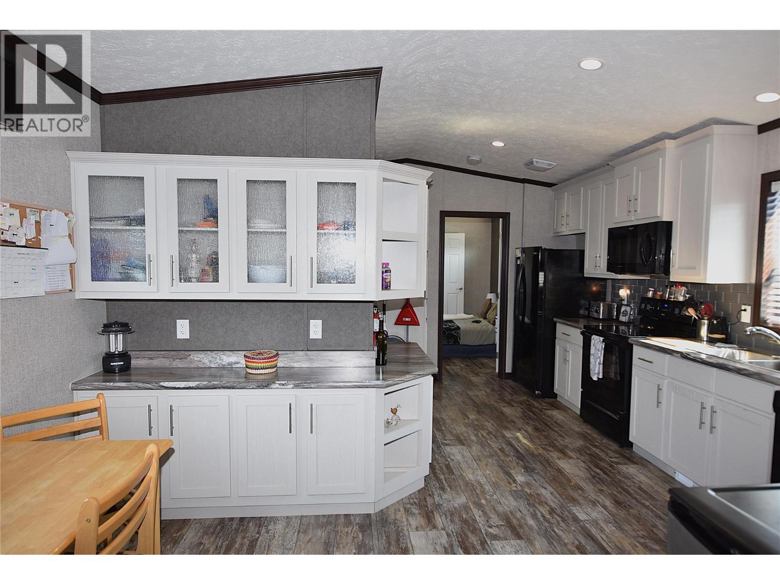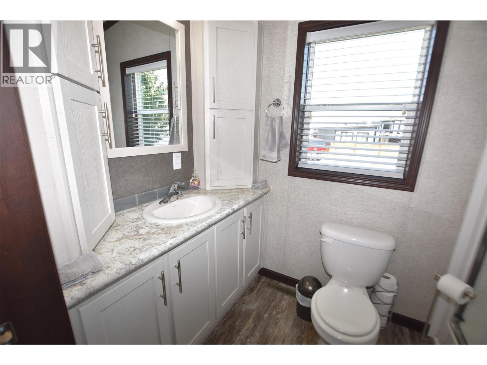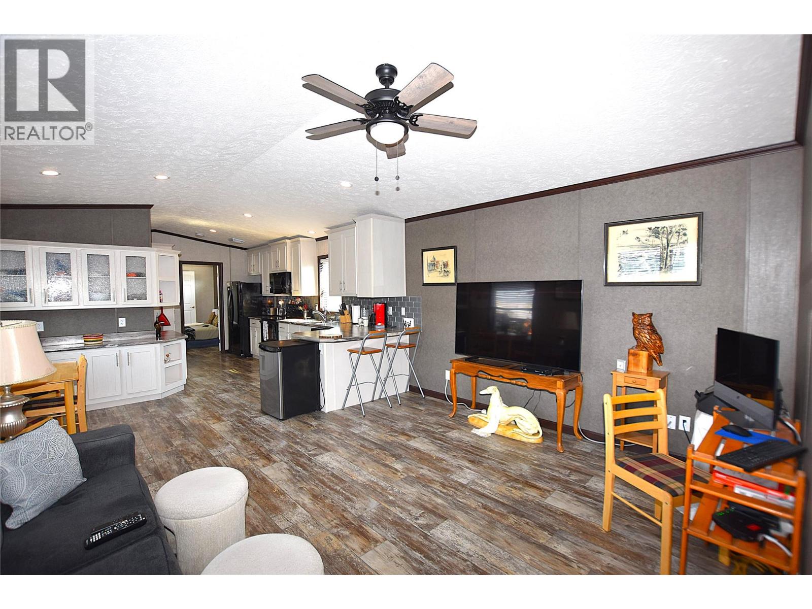 Well-maintained 2-Bedroom, 2-Bathroom 7 year old Modular Home in Louis Brothers Landing Mobile Home Park Discover this beautifully maintained 1056 sq. ft. modular home nestled on a spacious lot in the desirable Louis Brothers Landing Mobile Home Park, located at the scenic Head of the Lake in Vernon. Just a 12-minute drive to town and only 4 minutes to the golf course, this home offers the perfect blend of comfort and convenience. Features include: Open plan design with bedrooms on opposite ends for privacy Kitchen with built-in cabinetry, a pantry and sleek black appliances Spacious master bedroom with a walk-in closet and an en-suite with a double shower Large 35 x 12 partially covered deck, ideal for outdoor entertaining Fenced yard for pets and children Central air conditioning for year-round comfort Water softener and reverse osmosis system for quality water Pet-friendly community with park approval Boat and RV parking available Additional Details: Monthly pad rental of $429, which includes water, weekly garbage pickup, and road maintenance Shared access to beautiful Lake Okanagan Peaceful, country-like setting with quiet surroundings This home combines comfort, functionality, and a fantastic location. Don't miss the opportunity to enjoy lakeside living in a welcoming community! (id:6770)