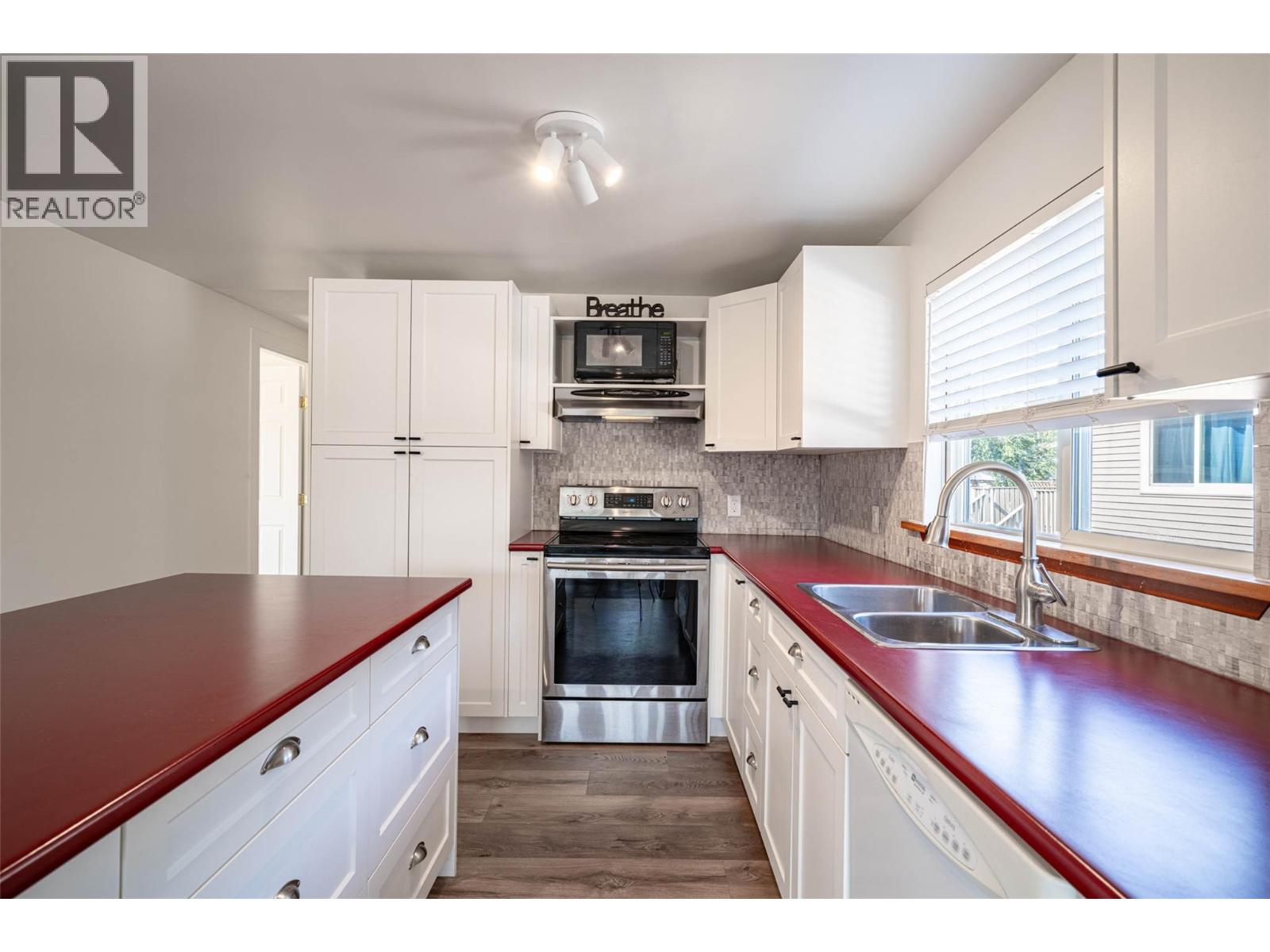 Welcome to Westgate Mobile Home Park! Fully renovated in 2024/2025, this 3 bed + den home is a welcoming space you must experience! Converted from single to double wide, featuring vaulted ceilings throughout, new windows, fully updated electrical Silver Label, vinyl plank flooring, Hardie board siding and new roof. Tons of storage, with a clean space under the full length of the unit. Top of the line Samsung, high efficiency heat pumps. Stainless steel appliances including XL Fridge/Freezer. Spacious master bedroom including a walk in closet, with space for a seating area. French doors open onto your brand new deck. Large, fully powered workshop (insulated), low-maintenance yard, wheelchair accessible. Family-friendly, well-managed park, steps from the lake, fantastic golf courses and wineries. Close to transit, and all amenities! *potential for a second bathroom. (id:6770)