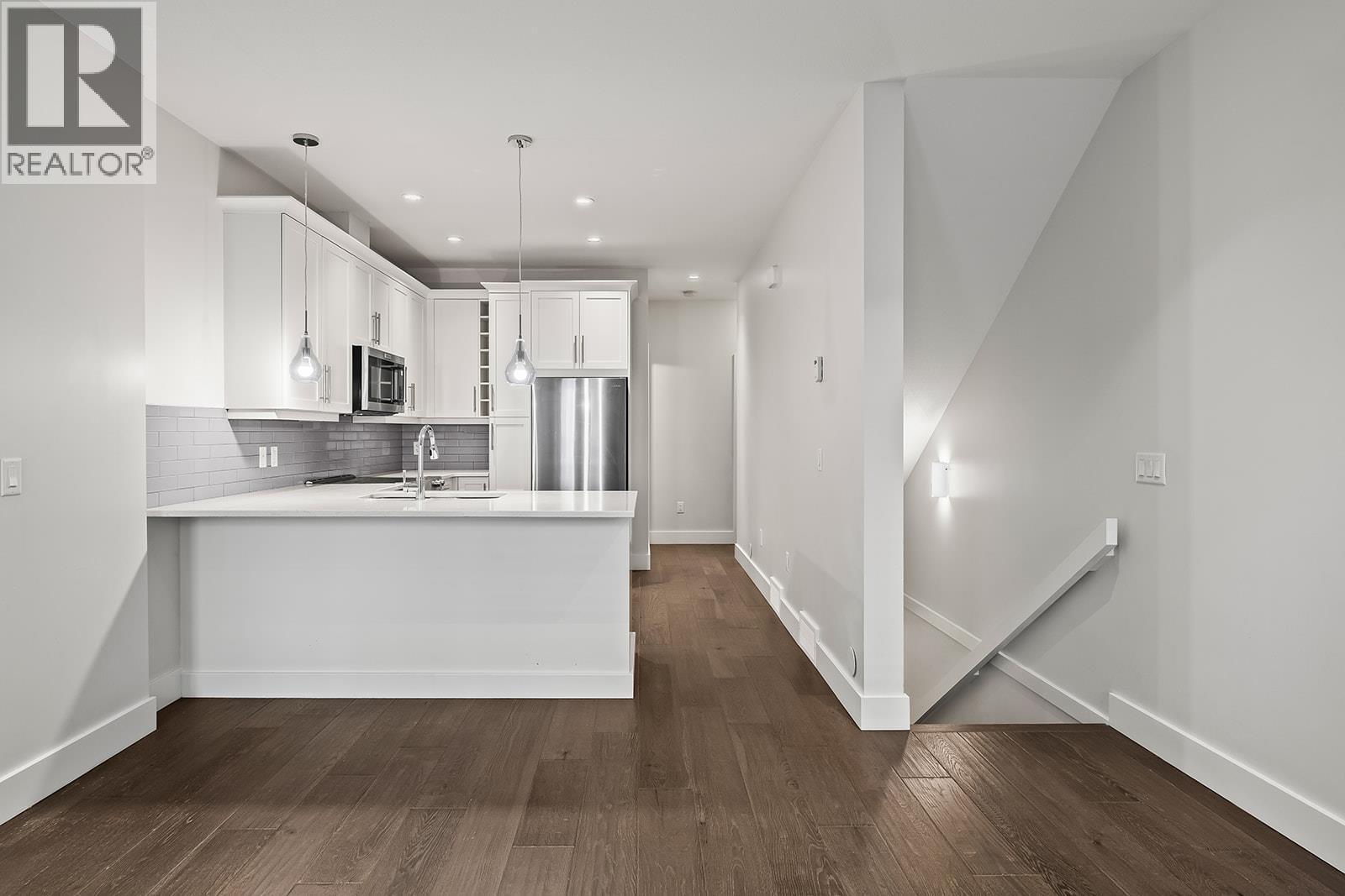 VACANT with Quick Possession Possible! Just one block from Okanagan Lake and minutes from the H2O Centre, sports fields, an ice rink, schools, and parks, this townhouse offers convenient access to everything you need to enjoy the Okanagan lifestyle! Inside, the modern kitchen features quartz countertops with bar style seating, abundant cabinetry, stainless steel appliances, including a brand new fridge, and a stylish tile backsplash. The kitchen opens to the dining and living areas, which lead out to a balcony complete with a gas hookup for your BBQ. A bedroom on the main living level adds even more flexibility to the layout. Upstairs, the primary bedroom has its own private balcony, walk-in closet, and full ensuite, while the third bedroom comes with its own full ensuite, perfect for guests or family. The spacious loft area provides a versatile space for a home office, yoga studio, or additional living space, alongside a convenient laundry area. On the entry level, you’ll find a double-car tandem garage plus hot water on demand for the whole home! The complex is pet-friendly, perfectly situated, and ready for you to enjoy loving where you live! (id:6770)