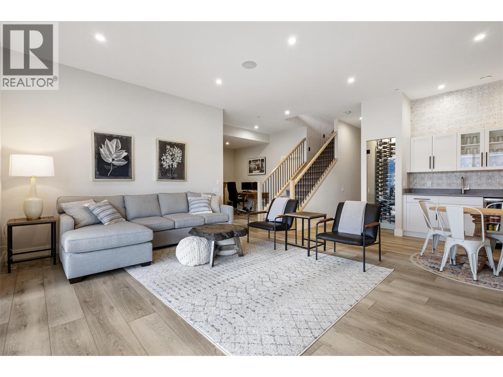 Dream retreat in Lakestone —where elegance, comfort, and nature converge. With over $30,000 in upgrades, this home must be seen to be appreciated! This 3-bed + den, 3-bath walkout townhome comes fully-furnished & decorated for immediate, turn-key occupancy! Chef’s kitchen that inspires culinary creativity, with high-end stainless steel appliances, a gas range, wine fridge, & large island that invites connection and conversation with room for 4 stools. Rich wood flooring adds warmth, while the seamless layout invites you from the kitchen into a bright and airy living space, perfect for entertaining. Floor-to-ceiling gas fireplace with unique tile surround, wallpaper & beamed/vaulted ceilings make this home stand out from the rest. Nano-doors welcome the outside-in & frame peaceful views of the lush landscape, while the upper deck—with its automated sunshades—offers a private escape. Primary suite is haven featuring a spa-style ensuite w/heated floors, dual sinks, deep soaker tub, and walk-in closet. Lower walkout level expands your living space with two generously sized bedrooms that both fit King sized-beds, stylish 5-pce bath, a private office/den, and a rec room ready for movie nights complete with wet bar and wine display! Step outside to a tranquil enclosed patio. Residents enjoy exclusive access to the Centre Club: outdoor pools, a gym, & sports courts. Whether you’re looking for a fulltime residence or a luxurious lock-and-leave option, this home offers refined living. (id:6770)