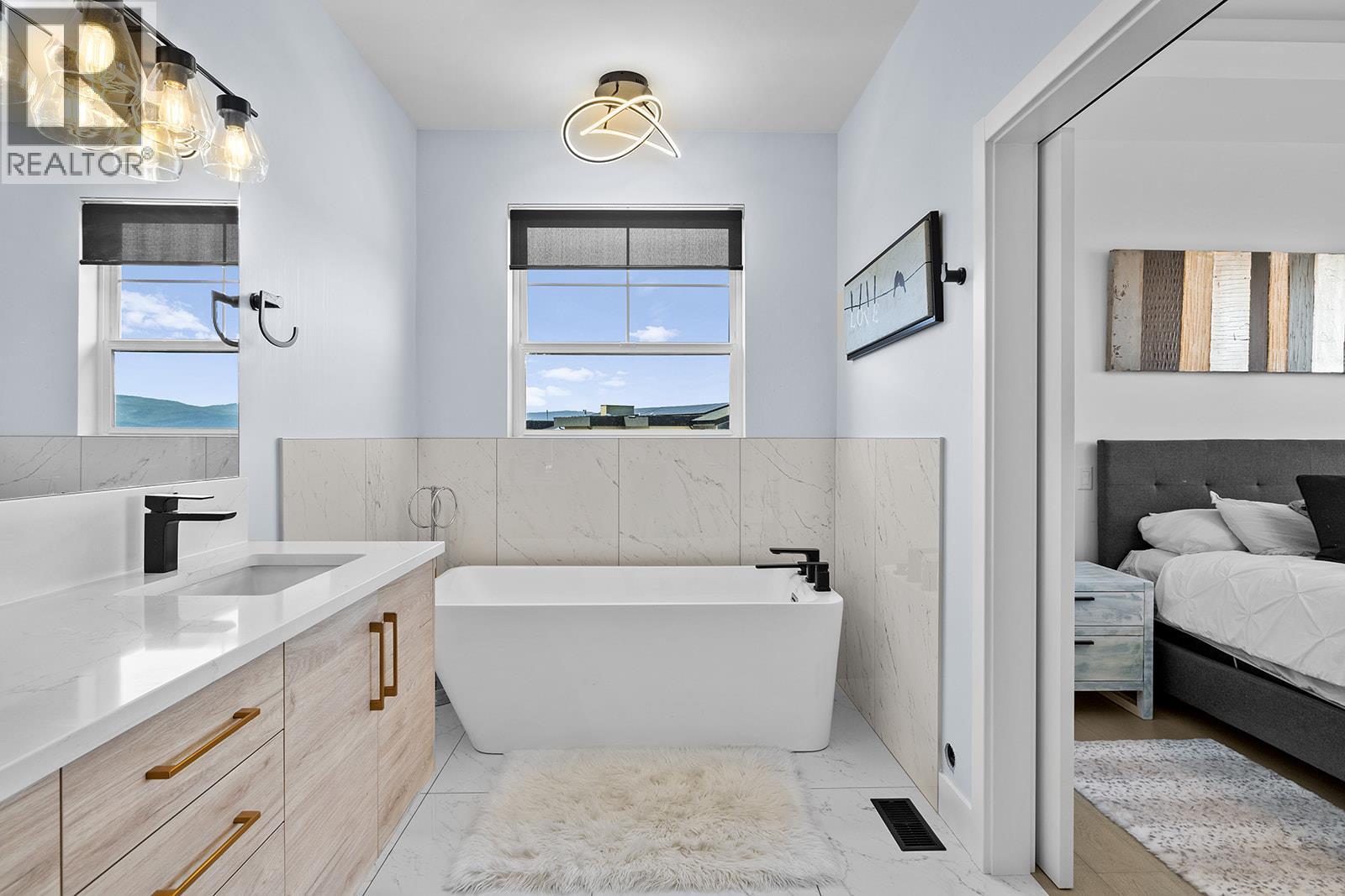 Welcome to this custom single-family lake view home in the heart of Kettle Valley, offering a blend of elegance and functionality. Boasting 4 bedrooms and 4 bathrooms, this newer home is designed for modern living and entertaining. Step inside the open-concept floor plan showcasing a chef’s kitchen outfitted with stainless steel appliances, sleek finishes, and ample space for hosting gatherings. The primary suite is a retreat, with a walk-in closet and spa-inspired ensuite with dual sinks, a makeup vanity, soaker tub, and steam shower. Enjoy lake and city views from the expansive front-facing deck, ideal for sunset entertaining. Or unwind in your landscaped backyard complete with a private hot tub, fit pit, hammock swings, and cook space, perfect for Okanagan summers. This home also features a legal 1 bedroom suite with a separate entrance and laundry, offering flexibility for extended family or passive income. A double attached garage and generous driveway provide ample parking options. Located in park heaven, you’ll find 4 parks and 5 trails within easy walking distance. Families will appreciate the top-tier school catchment: Chute Lake Elementary, Canyon Falls Middle School, and Okanagan Mission Secondary, with a full K–12 French Immersion option only 10 mins away. Conveniently close to transit, local amenities, and the region’s most iconic attractions like Summerhill Winery, this home offers the complete Okanagan lifestyle. Simply move in, and enjoy Kelowna Life. (id:6770)