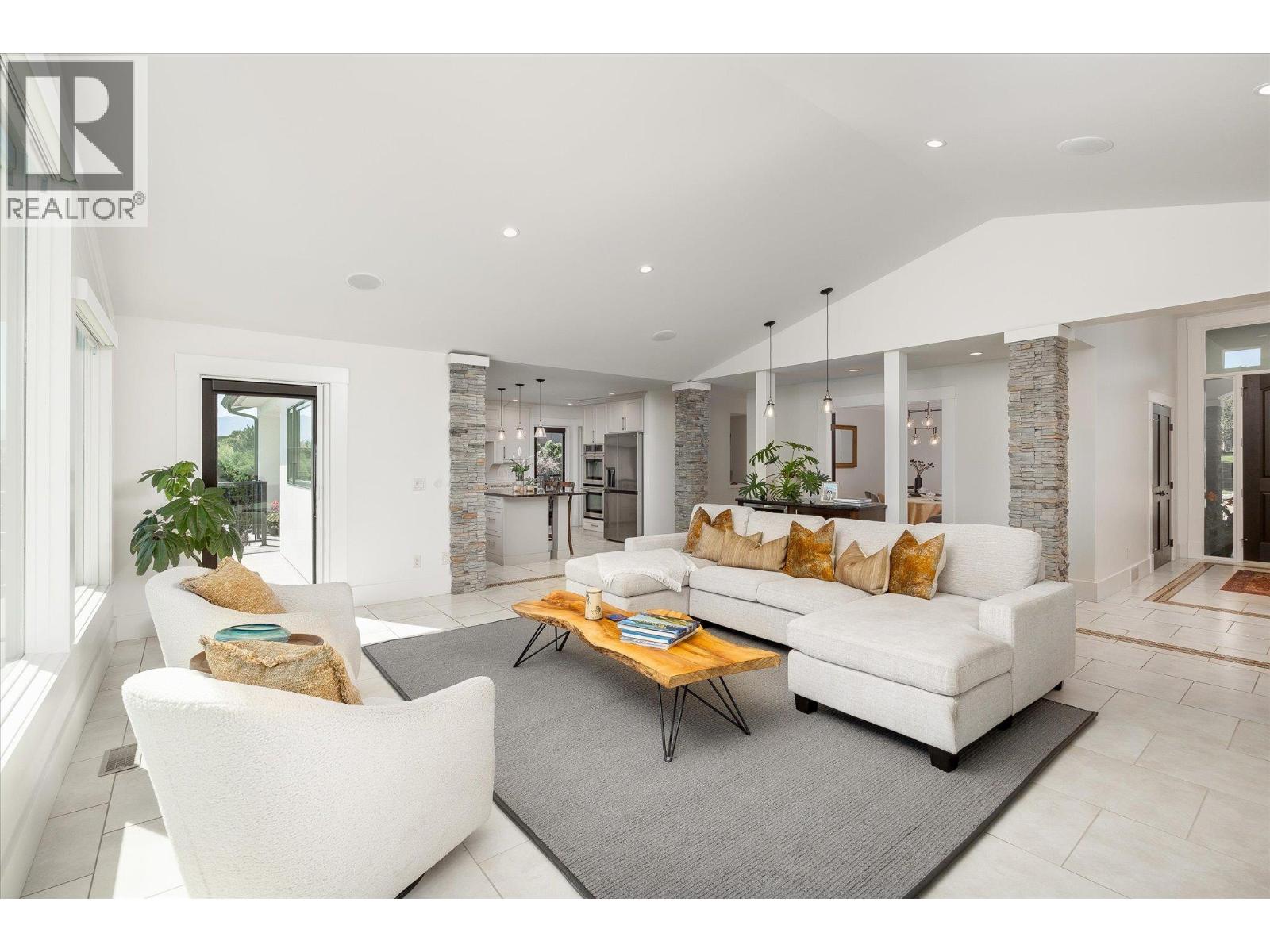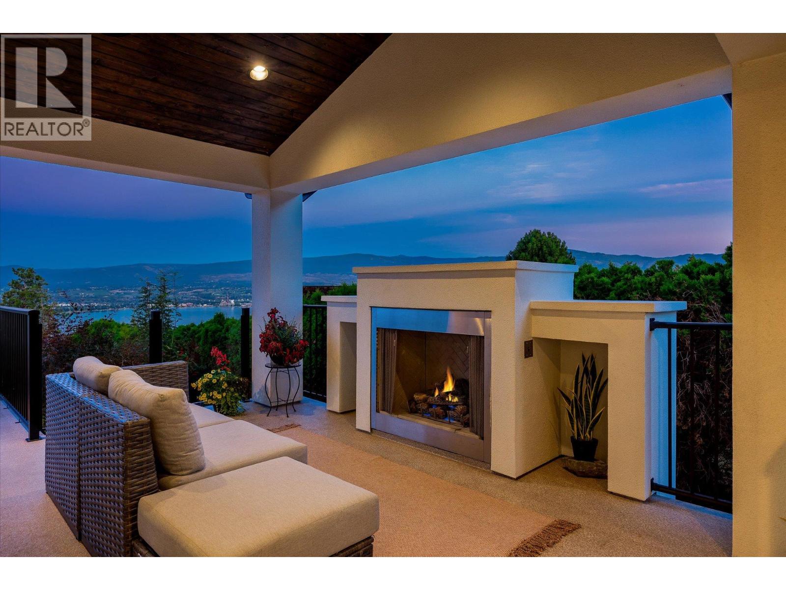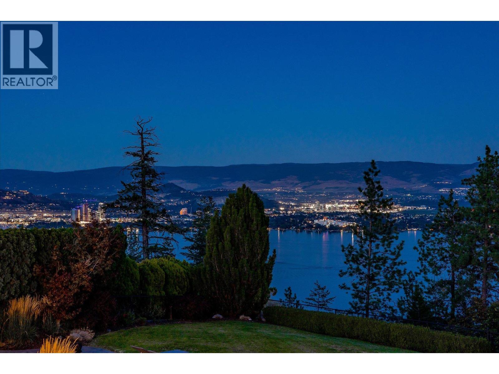 This modern home sits on a gated .75-acre private lot in a quiet, sought-after community in Lakeview Heights. Surrounded by mature, easy-to-maintain gardens and backing onto nature, the property offers stunning panoramic views of the lake, mountains, and city skyline. The expansive, well-established gardens create a tranquil setting perfect for relaxation and outdoor enjoyment. The home boasts numerous recent upgrades, including the addition of a 4th bedroom, a new furnace, a new high-efficiency heat pump, a twelve kilowatt solar panel system, EV charger and a Powerwall 3 energy storage battery. These energy-efficient features significantly reduce utility bills and contribute to a sustainable lifestyle. Inside, enjoy a warm and welcoming ambiance highlighted by an impressive fireplace and floor-to-ceiling windows framing picturesque lake, mountain, and city views. The gourmet kitchen features an oversized granite island, a butler’s pantry, and immediate access to a covered deck ideal for al fresco dining or relaxing around a natural gas fireplace. Outdoor amenities are equally impressive, including a hot tub off the primary suite, a heated 14 foot by 36 foot pool, and a private outdoor cabana bar with fridge, sink, and surround sound. Located just minutes from downtown Kelowna, golf courses, schools, and city parks, this home is ideally situated for outdoor enthusiasts with nearby hiking and biking trails in Kalamoir Park. Short walks lead to wineries, shops, pubs, cafes, and the new community centre with recreational facilities - such as tennis, pickleball, basketball courts, and a playground. Additional features include a new fourth bedroom with lakeview, private entrance lower level one-bedroom Airbnb, ideal for generating extra income, and room for a potential carriage house, perfect for multi-generational living or additional rental opportunities. (id:6770)