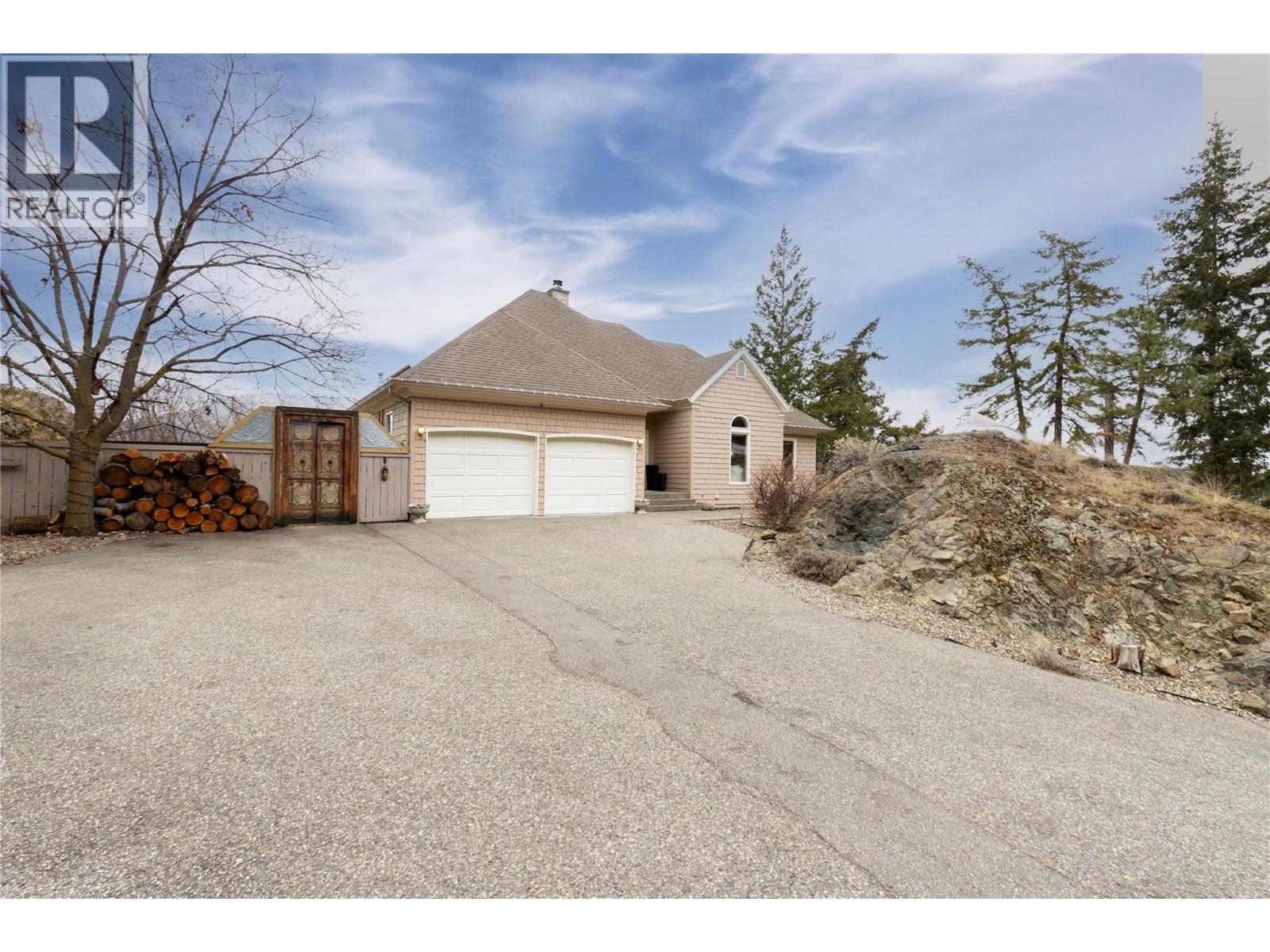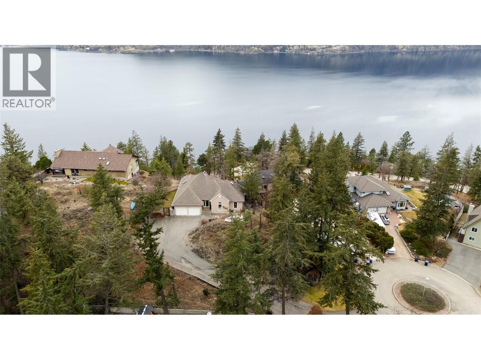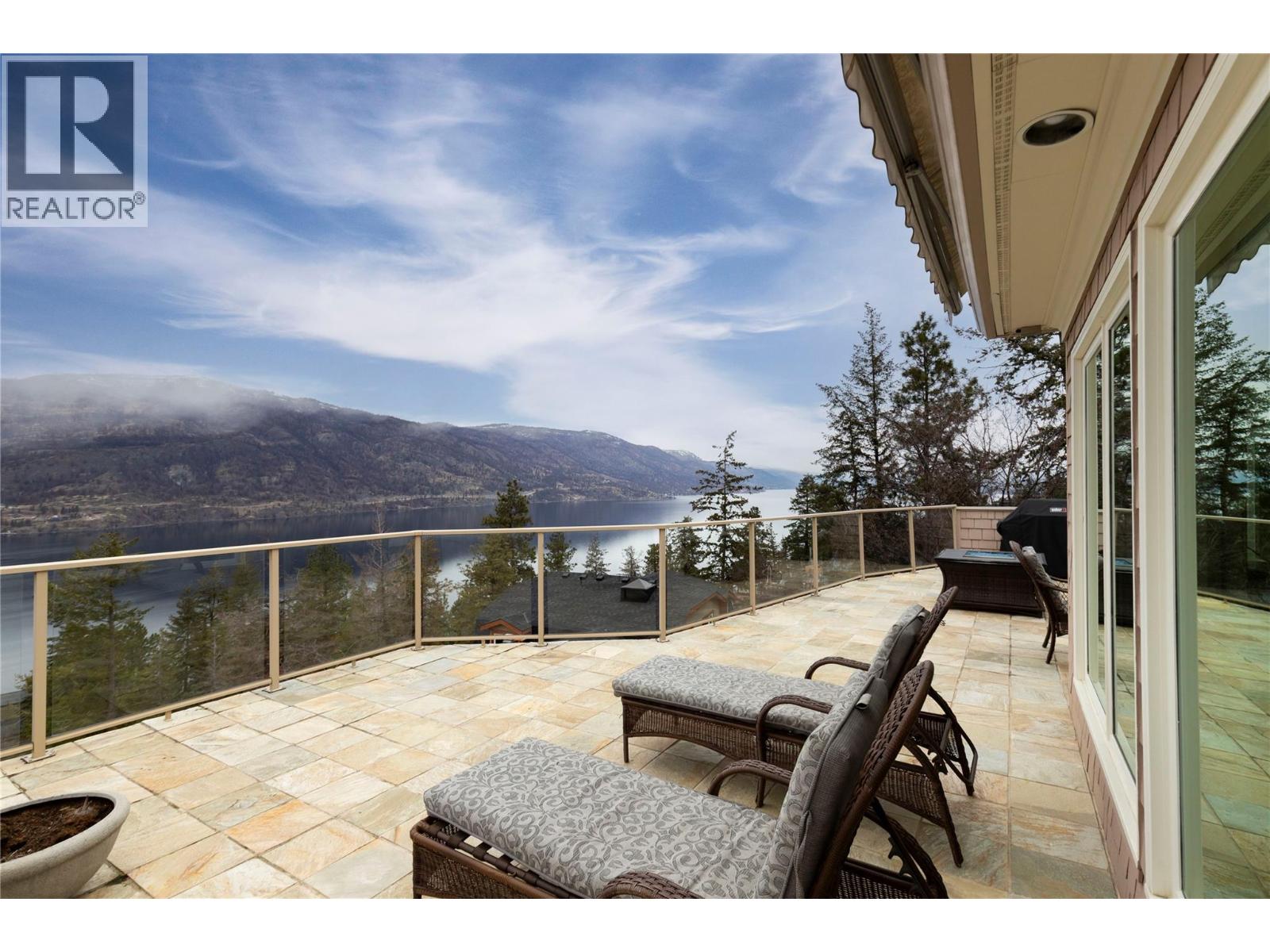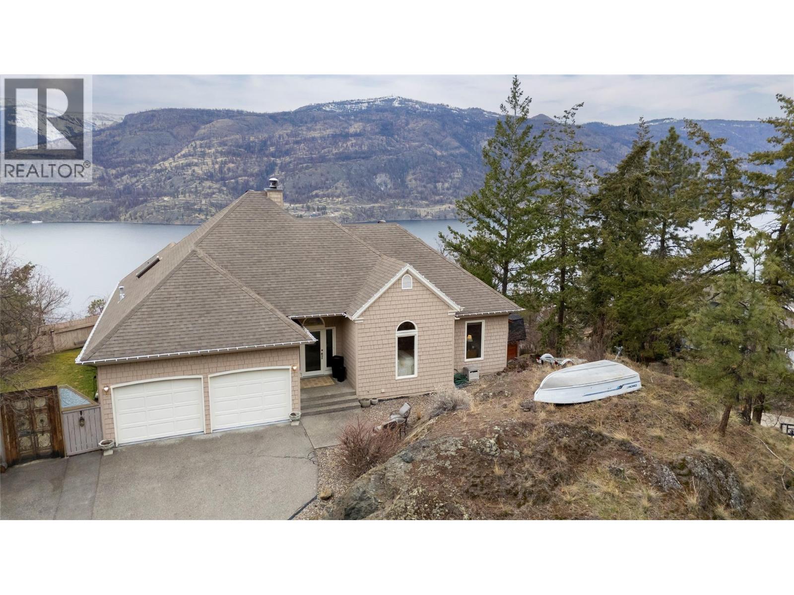 Private Bluff Retreat with Panoramic Lake Views Set high on a quiet, private lane, this 3-bedroom, 2-bath walkout rancher offers stunning, unobstructed views of Okanagan Lake from its perch on a dramatic rock bluff. If you're after privacy, natural beauty, and big views—this is it. Vaulted ceilings, skylights, and oversized new windows bring in natural light and frame the lake and mountain vistas from nearly every angle. The kitchen features granite countertops, stainless steel appliances, and a sleek tile backsplash. A wood-burning fireplace with exposed brick adds character and warmth to the open-concept living space. The primary suite offers front-row views, a walk-in closet, and ensuite bath. Two additional bedrooms are tucked into a private wing; ideal for guests or home office setups. Step outside to a massive tiled sundeck with powered awnings, perfect for entertaining or unwinding. The secluded, tree-lined yard has room for a garden, pool, or lounge area, all with that lake view front and center. Just 10 minutes to downtown Kelowna, this is a rare mix of total privacy and urban convenience. Book your private showing today and prepare to be wowed by the show stopping views! (id:6770)