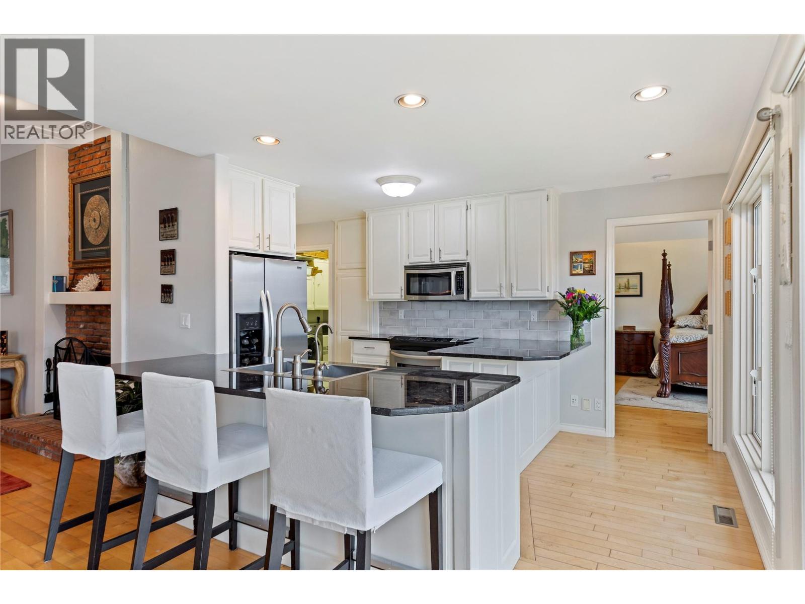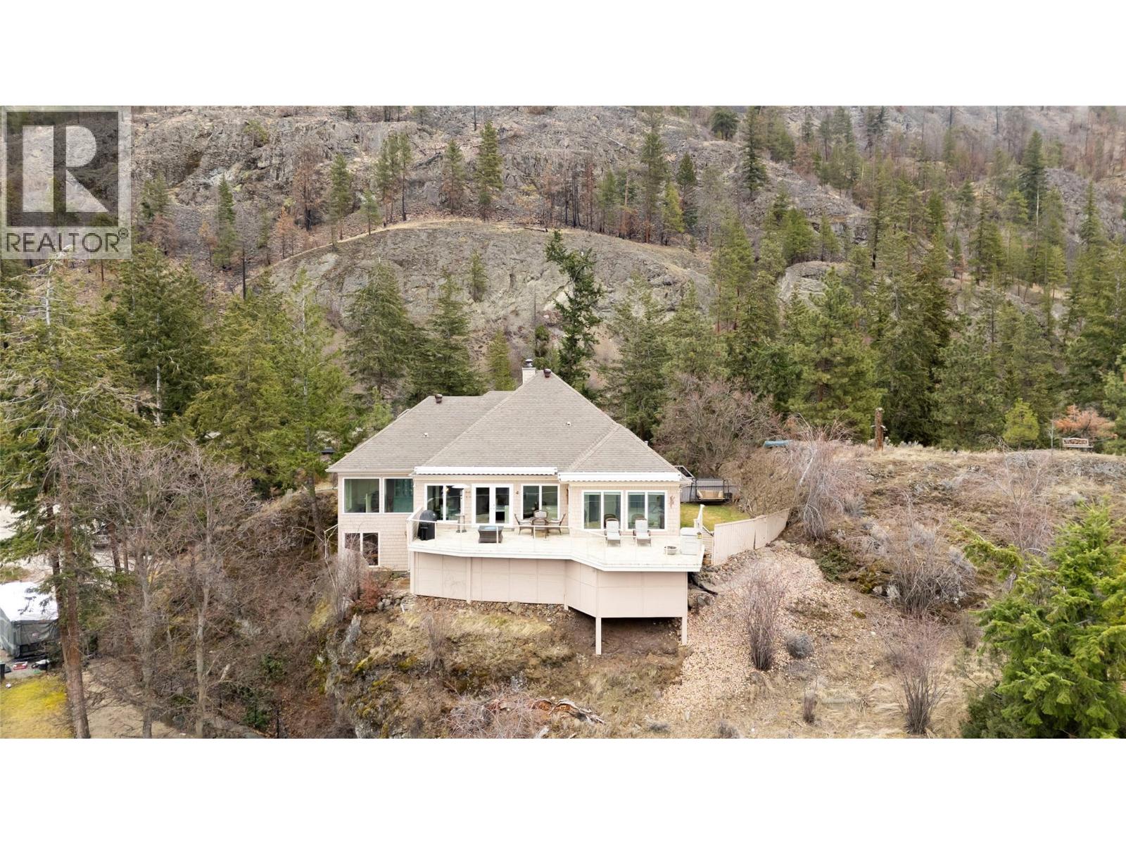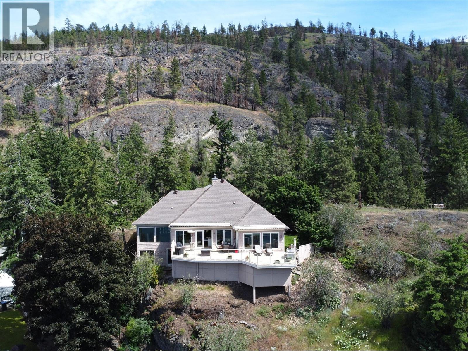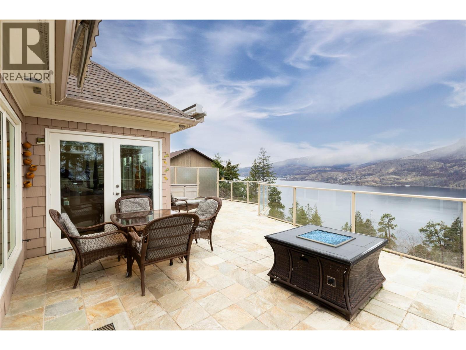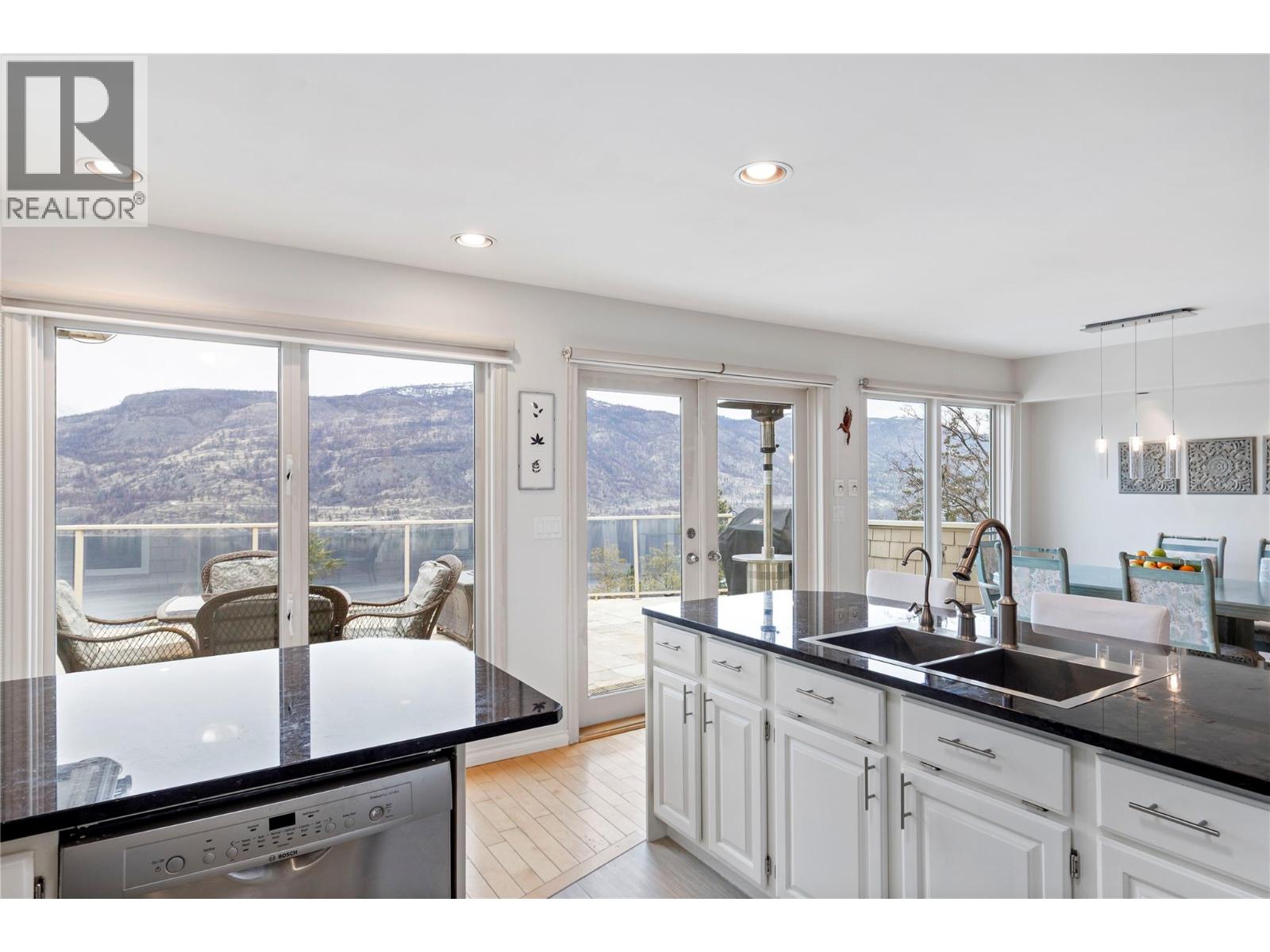 Private Bluff Retreat with Panoramic Lake Views Set high on a quiet, private lane, this 3-bedroom, 2-bath walkout rancher offers stunning, unobstructed views of Okanagan Lake from its perch on a dramatic rock bluff. If you're after privacy, natural beauty, and big views—this is it. Vaulted ceilings, skylights, and oversized new windows bring in natural light and frame the lake and mountain vistas from nearly every angle. The kitchen features granite countertops, stainless steel appliances, and a sleek tile backsplash. A wood-burning fireplace with exposed brick adds character and warmth to the open-concept living space. The primary suite offers front-row views, a walk-in closet, and ensuite bath. Two additional bedrooms are tucked into a private wing; ideal for guests or home office setups. Step outside to a massive tiled sundeck with powered awnings, perfect for entertaining or unwinding. The secluded, tree-lined yard has room for a garden, pool, or lounge area, all with that lake view front and center. Just 10 minutes to downtown Kelowna, this is a rare mix of total privacy and urban convenience. Book your private showing today and prepare to be wowed by the show stopping views! (id:6770)