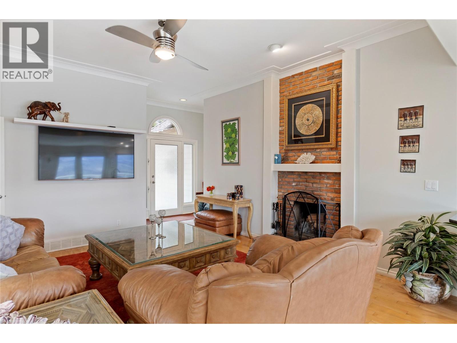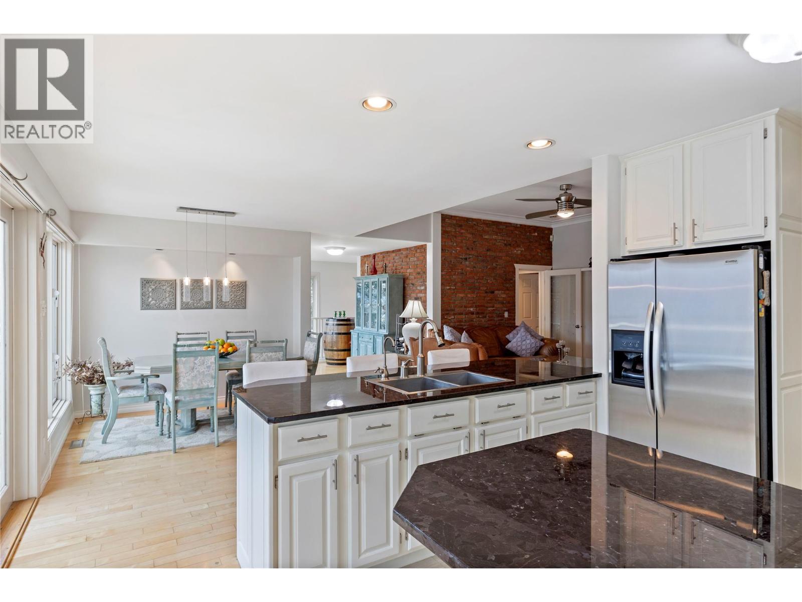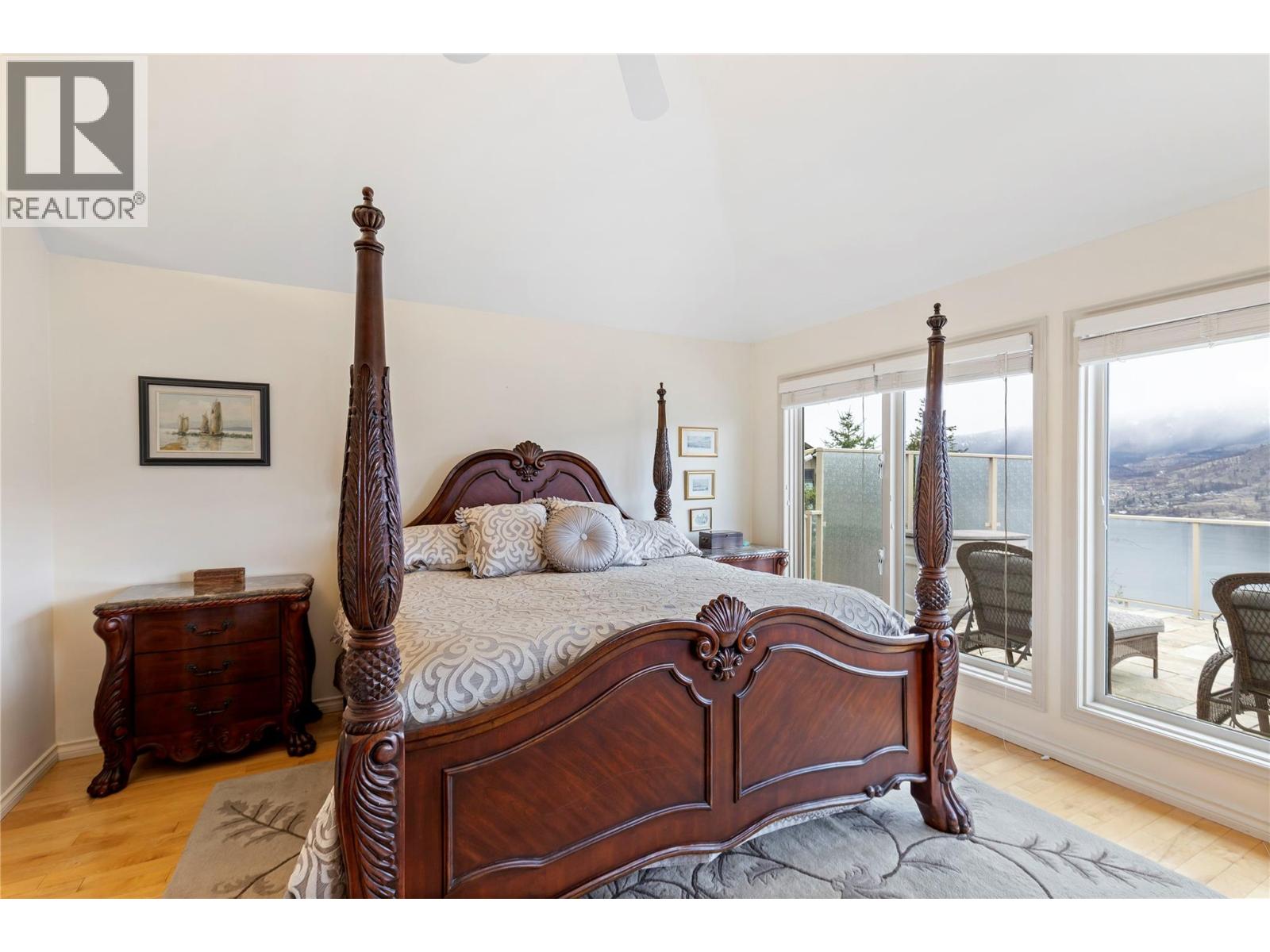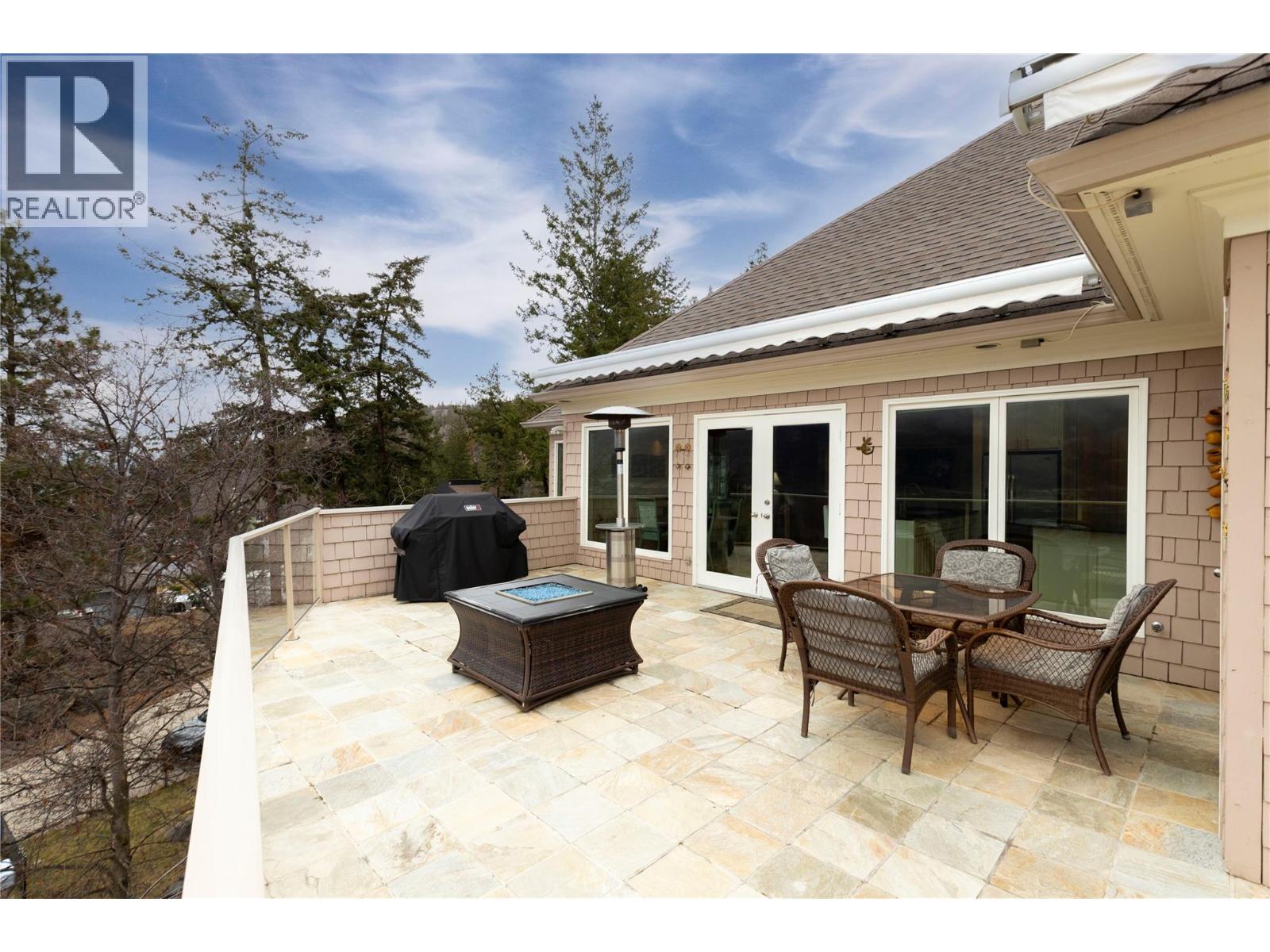 Private Bluff Retreat with Panoramic Lake Views Set high on a quiet, private lane, this 3-bedroom, 2-bath walkout rancher offers stunning, unobstructed views of Okanagan Lake from its perch on a dramatic rock bluff. If you're after privacy, natural beauty, and big views—this is it. Vaulted ceilings, skylights, and oversized new windows bring in natural light and frame the lake and mountain vistas from nearly every angle. The kitchen features granite countertops, stainless steel appliances, and a sleek tile backsplash. A wood-burning fireplace with exposed brick adds character and warmth to the open-concept living space. The primary suite offers front-row views, a walk-in closet, and ensuite bath. Two additional bedrooms are tucked into a private wing; ideal for guests or home office setups. Step outside to a massive tiled sundeck with powered awnings, perfect for entertaining or unwinding. The secluded, tree-lined yard has room for a garden, pool, or lounge area, all with that lake view front and center. Just 10 minutes to downtown Kelowna, this is a rare mix of total privacy and urban convenience. Book your private showing today and prepare to be wowed by the show stopping views! (id:6770)
