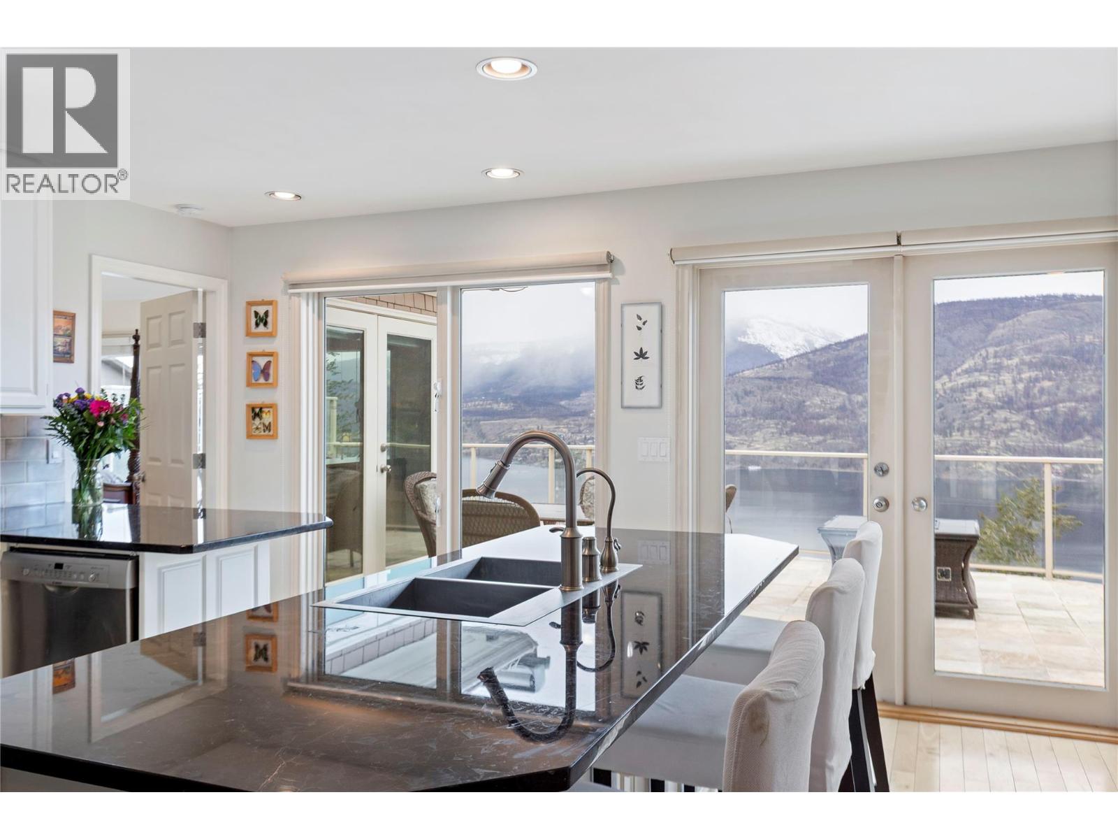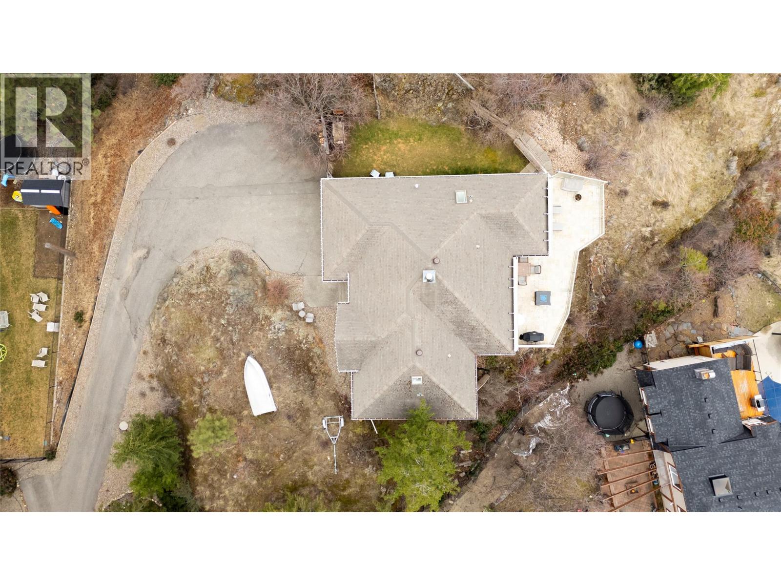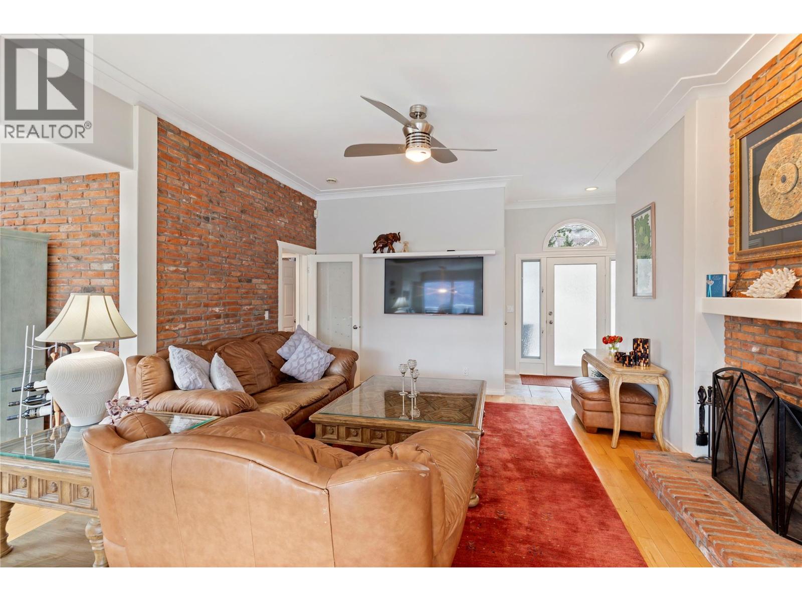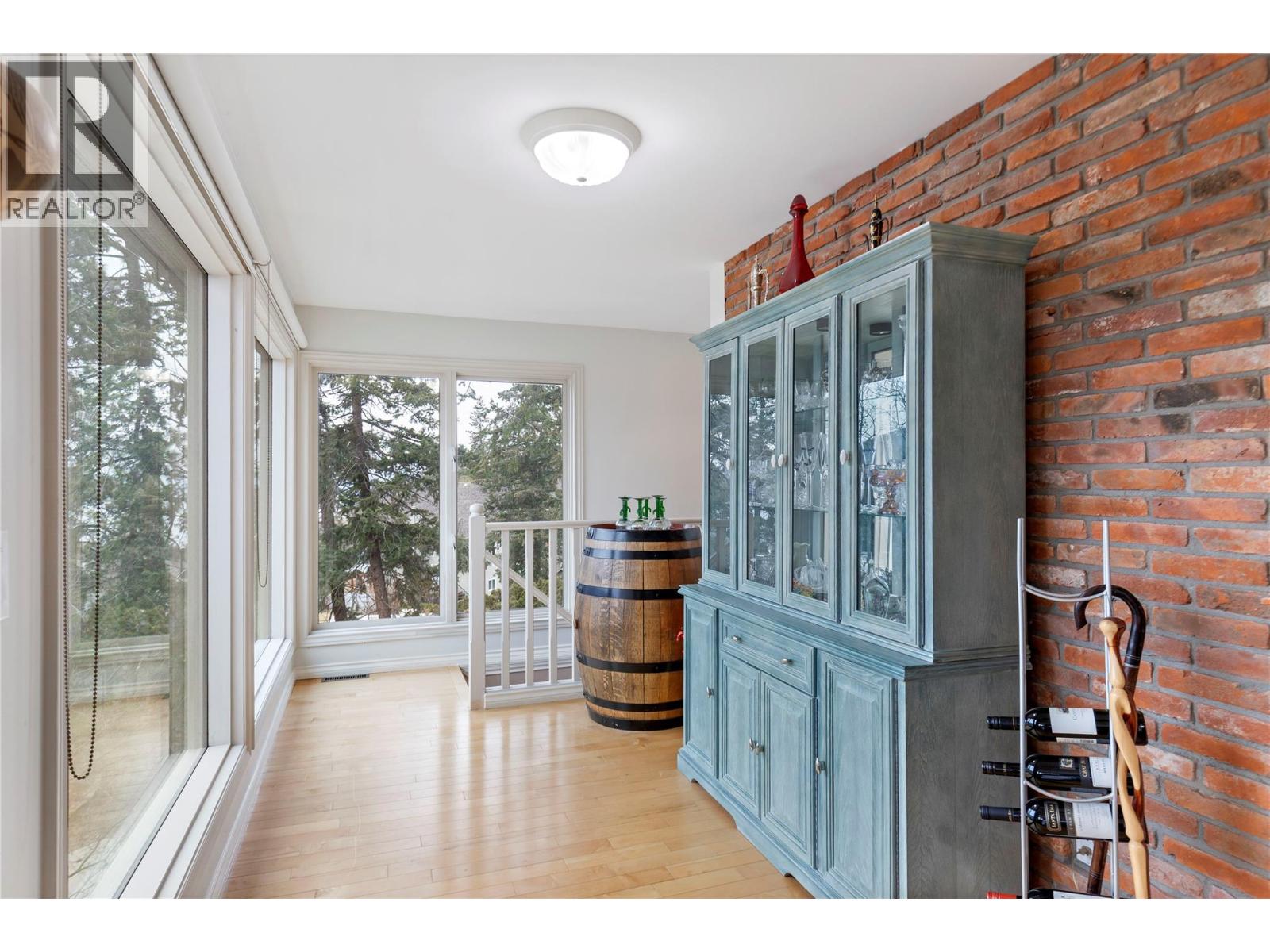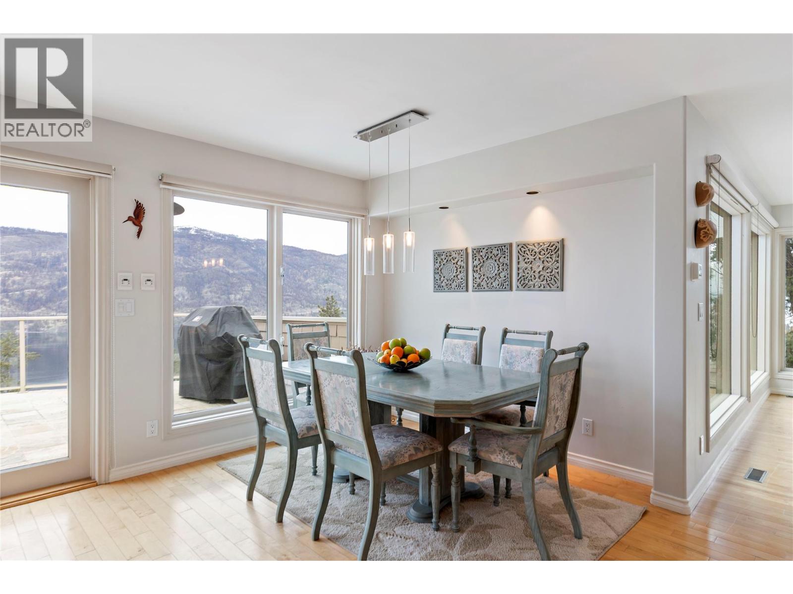 Private Bluff Retreat with Panoramic Lake Views Set high on a quiet, private lane, this 3-bedroom, 2-bath walkout rancher offers stunning, unobstructed views of Okanagan Lake from its perch on a dramatic rock bluff. If you're after privacy, natural beauty, and big views—this is it. Vaulted ceilings, skylights, and oversized new windows bring in natural light and frame the lake and mountain vistas from nearly every angle. The kitchen features granite countertops, stainless steel appliances, and a sleek tile backsplash. A wood-burning fireplace with exposed brick adds character and warmth to the open-concept living space. The primary suite offers front-row views, a walk-in closet, and ensuite bath. Two additional bedrooms are tucked into a private wing; ideal for guests or home office setups. Step outside to a massive tiled sundeck with powered awnings, perfect for entertaining or unwinding. The secluded, tree-lined yard has room for a garden, pool, or lounge area, all with that lake view front and center. Just 10 minutes to downtown Kelowna, this is a rare mix of total privacy and urban convenience. Book your private showing today and prepare to be wowed by the show stopping views! (id:6770)